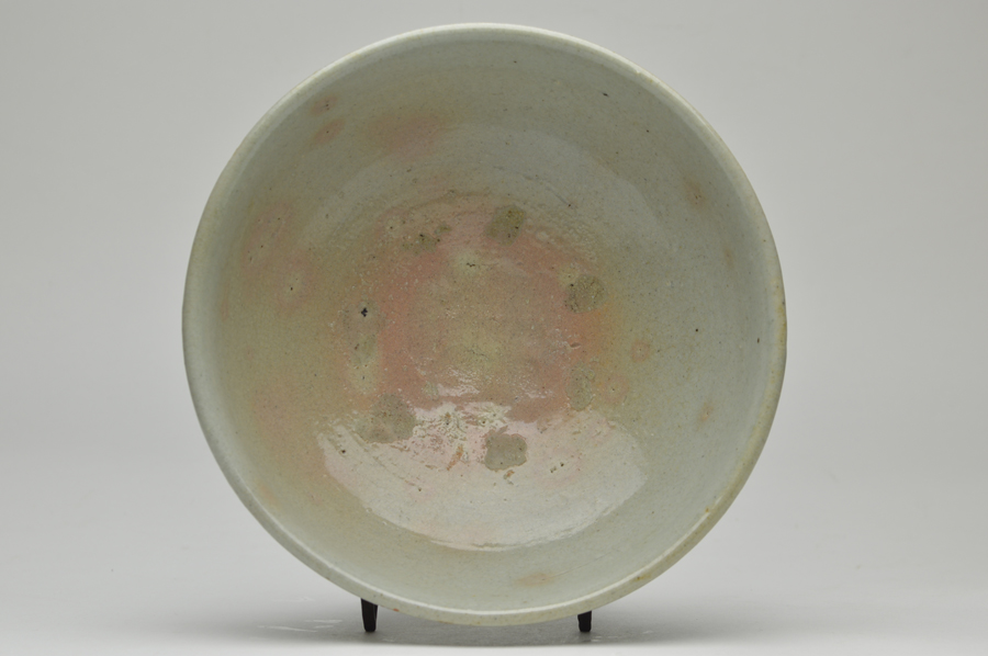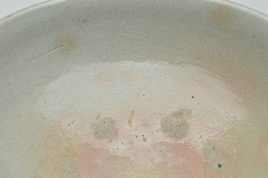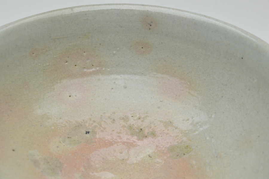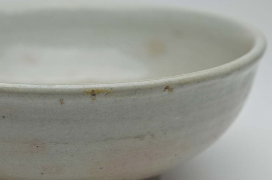 李朝の白磁鉢。やや甘めですが、その分柔らかな印象で見込み、そこの部分はほのかにピンク色をしており、穏やかな表情。お茶には大きすぎますが、料理などには非常に重宝するでしょう。うどんやラーメンに最適。細いニュウが数本ありますが、現状で止まっており、ご使用も問題ないと思います。李朝時代