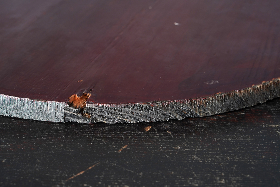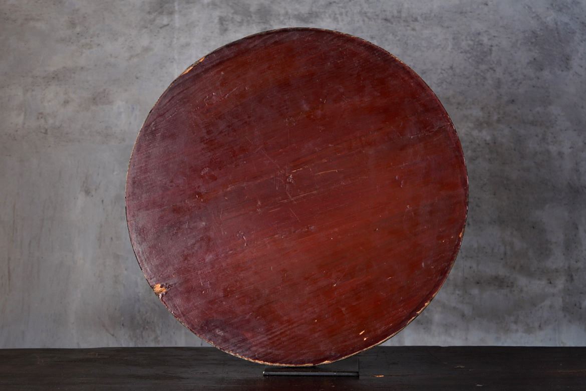 一瞬見るとまるで練行衆盤みたいでハッとしますが、盥の底板です。かなり痛みのある盥でしたが、なかなか味の良かったので、立ち上がりの部分を外しましたら、予想以上に良い感じです。日の丸盆より、日の丸らしく、垂迹美術や金工品の小品を飾っても良いです。金具を付けて掛けても愉しめそうです。江戸時代