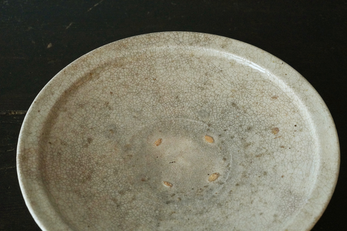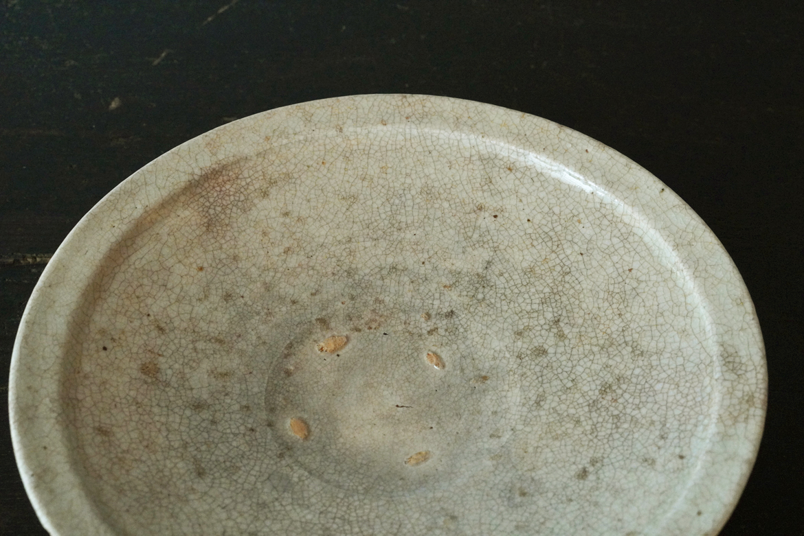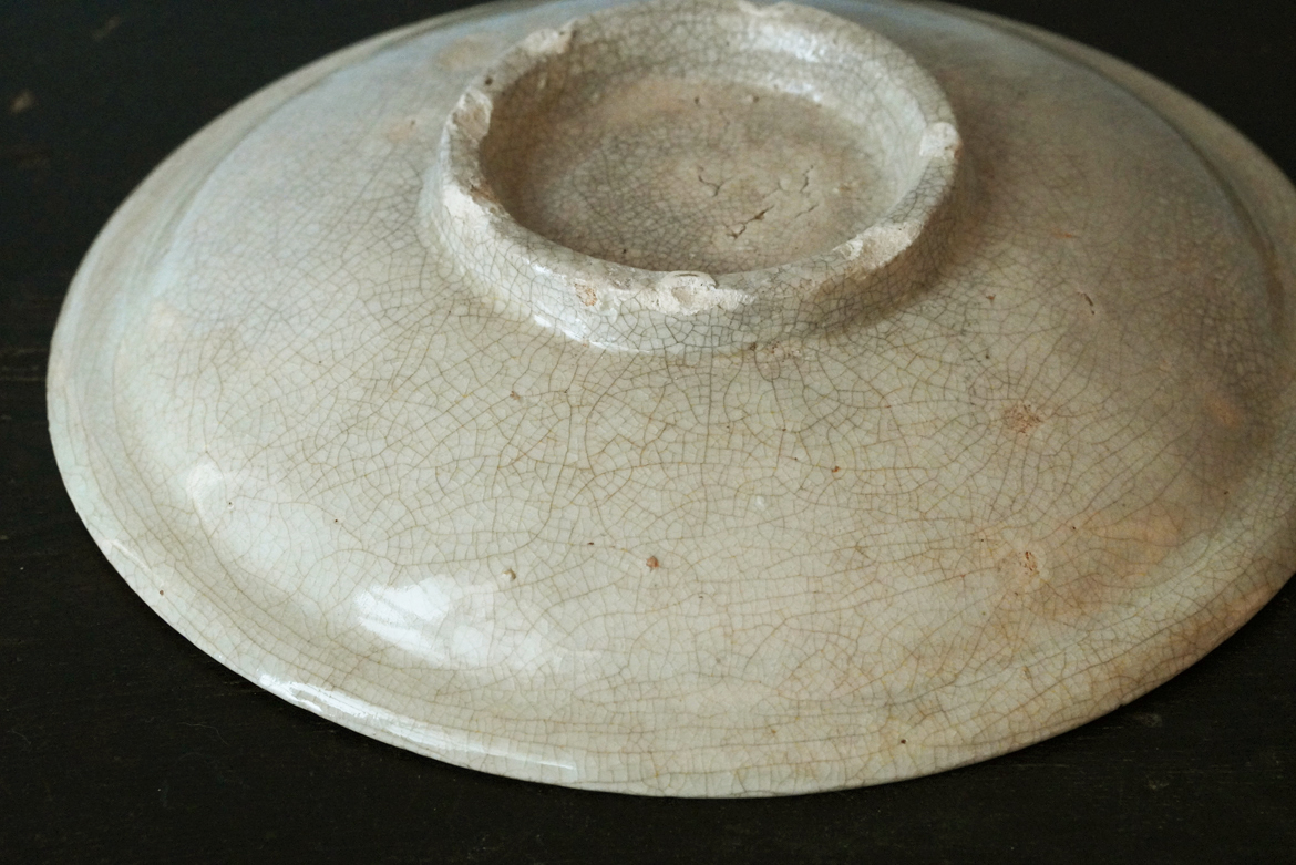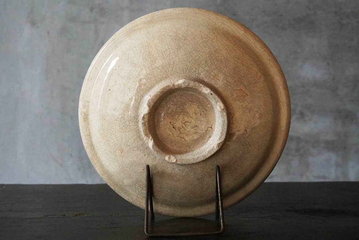 格式のある姿形でありながら、目跡が残る味わいある表情の白磁皿。真っ白ではないですが、使い易い形状、サイズで、御菓子、料理も映える器です。伝世ではなく、堀りの手で、高台に窯疵はあり、縁の裏にチップがありますので画像にてご確認下さい。共直しなどの修理などはありません。しかしながら、このタイプですのでお好きな方には気にならない範疇かと思います。このシンプルでありながらも、小さな縁がピリッとした感じはきっと飽きずに永く付き合っていけると思います。李朝時代。箱はございません。