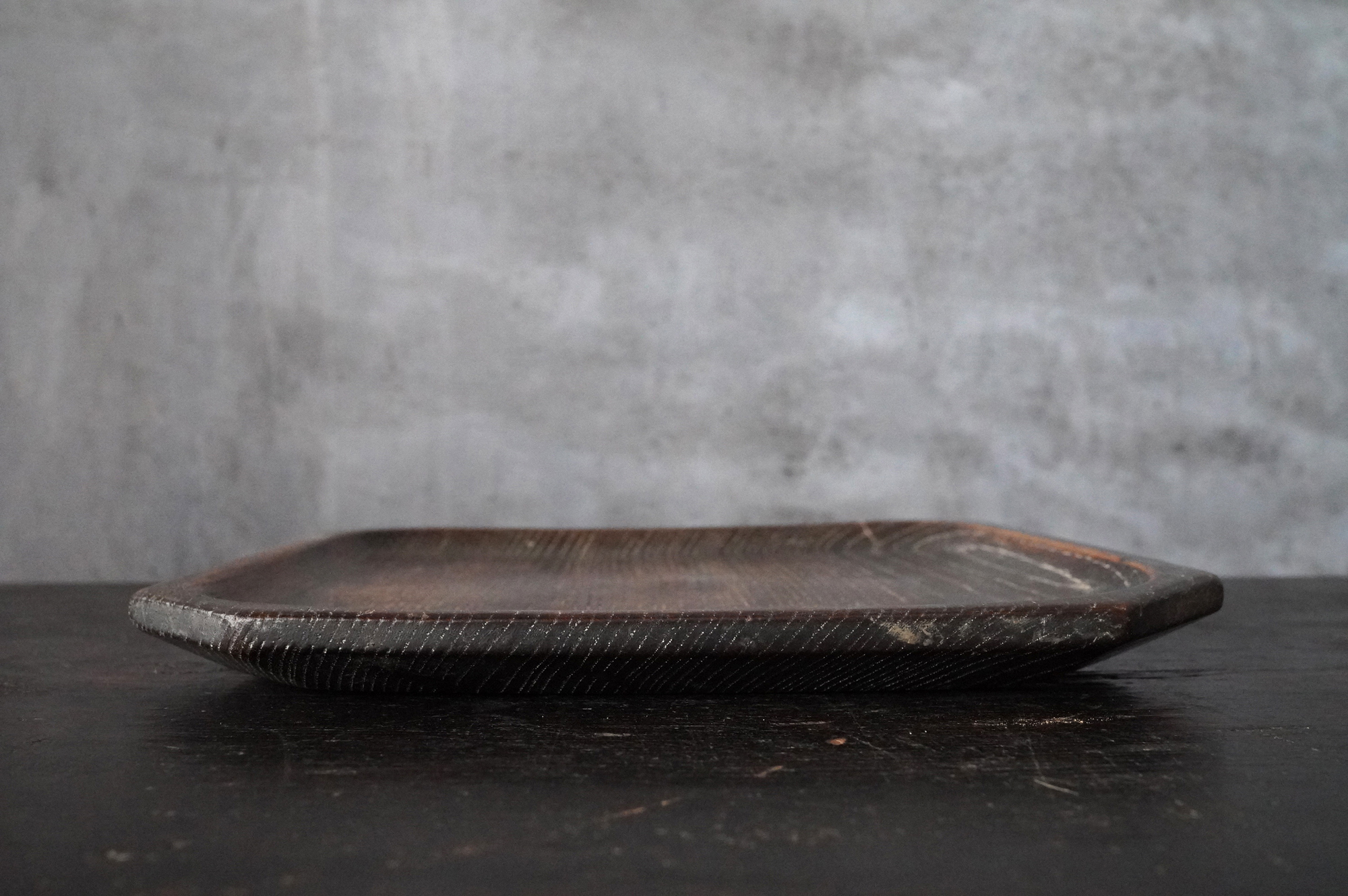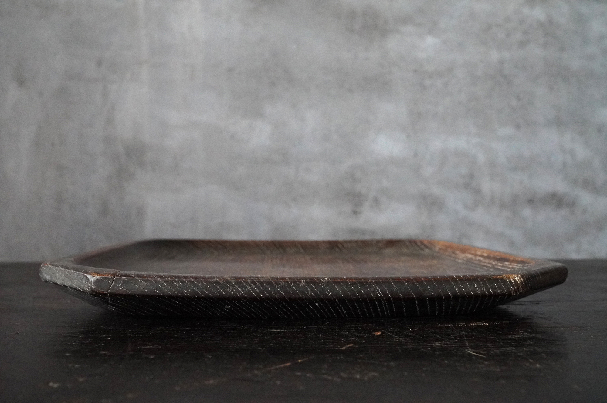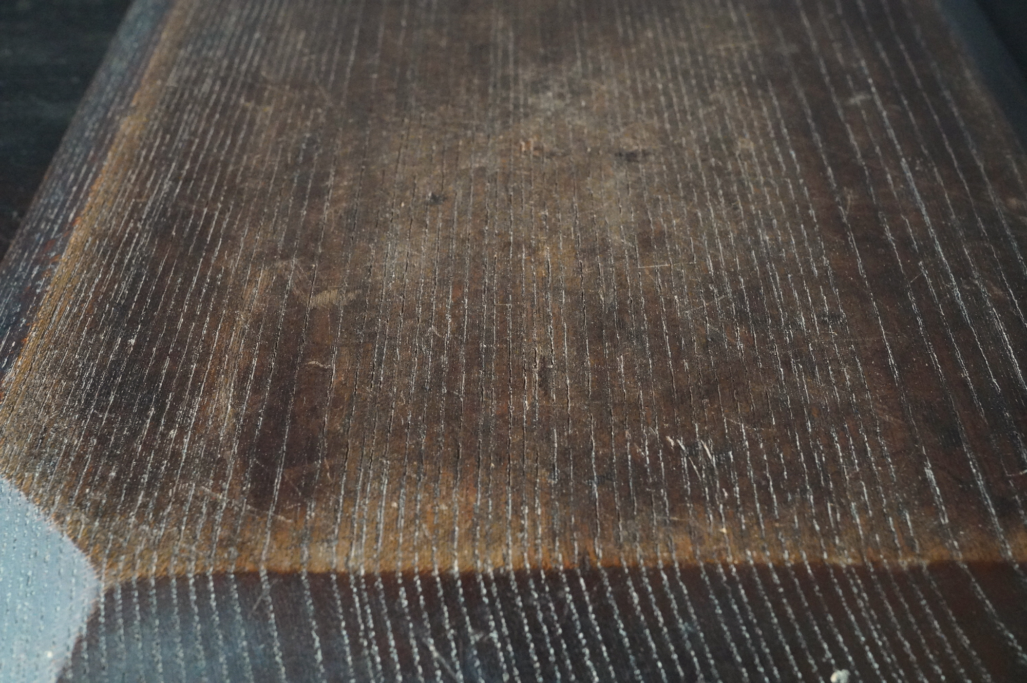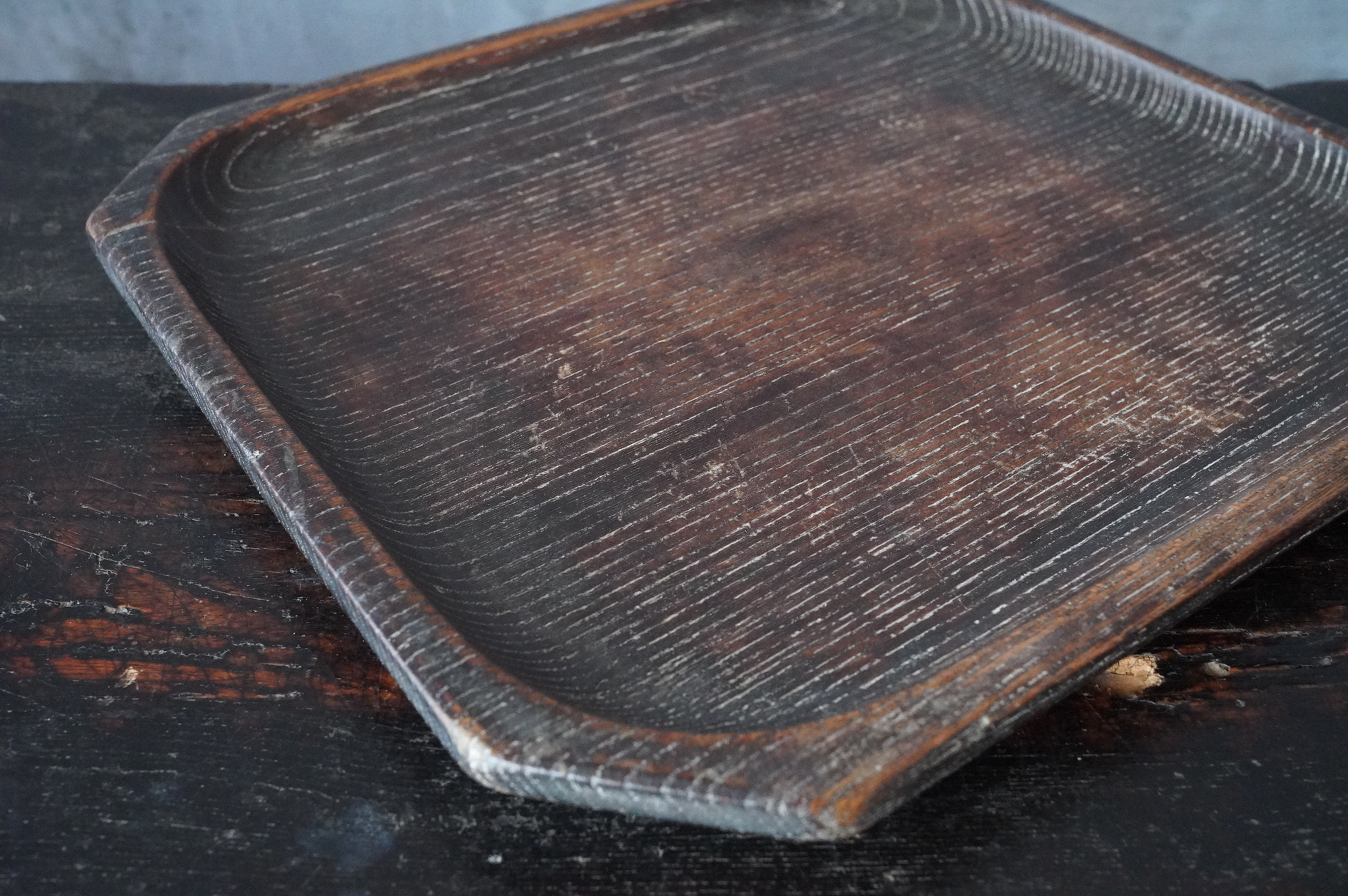 味わいが抜群の栗製の木地盆。塗などの施していない素地ですので、かなりの長い間、使用しないとここまでの味わいにはなりません。小ぶりな盆ですので、一人でのお茶や独酒に最適かと思います。一箇所ほんの少しヒビが生じていますが全く問題ないものです。大正~昭和期。