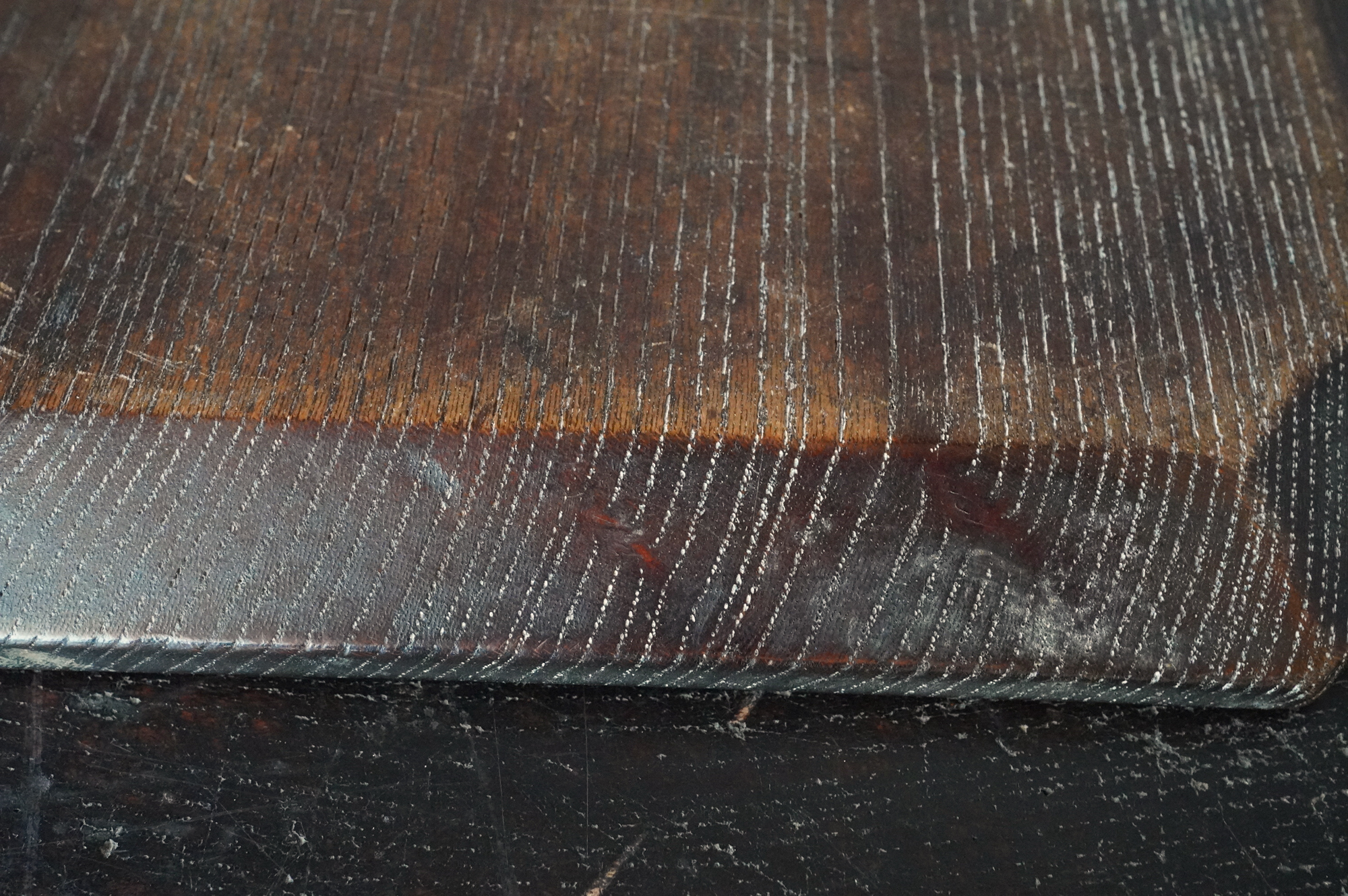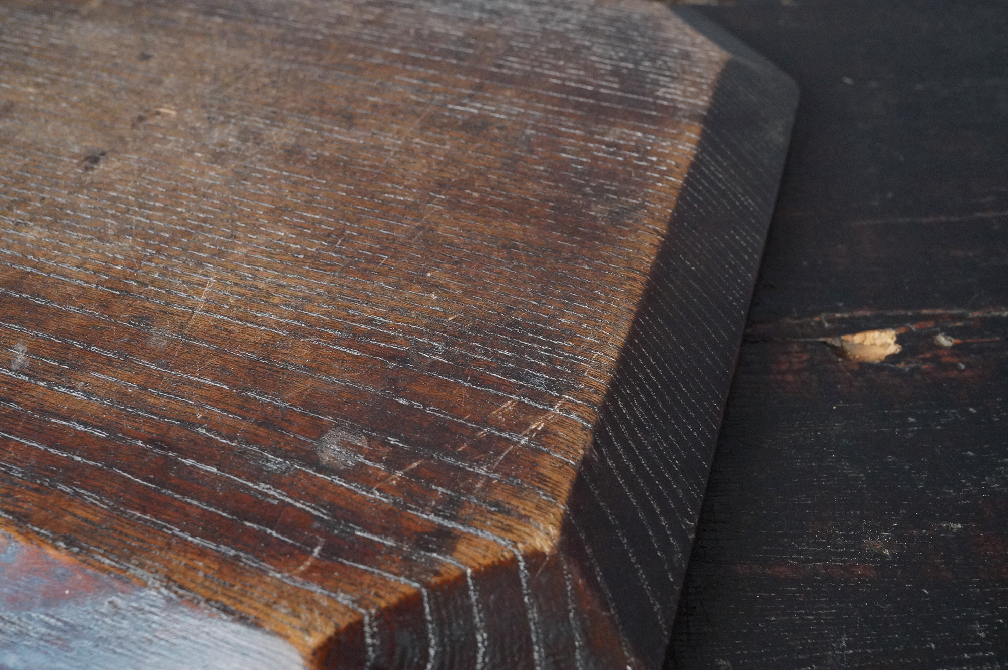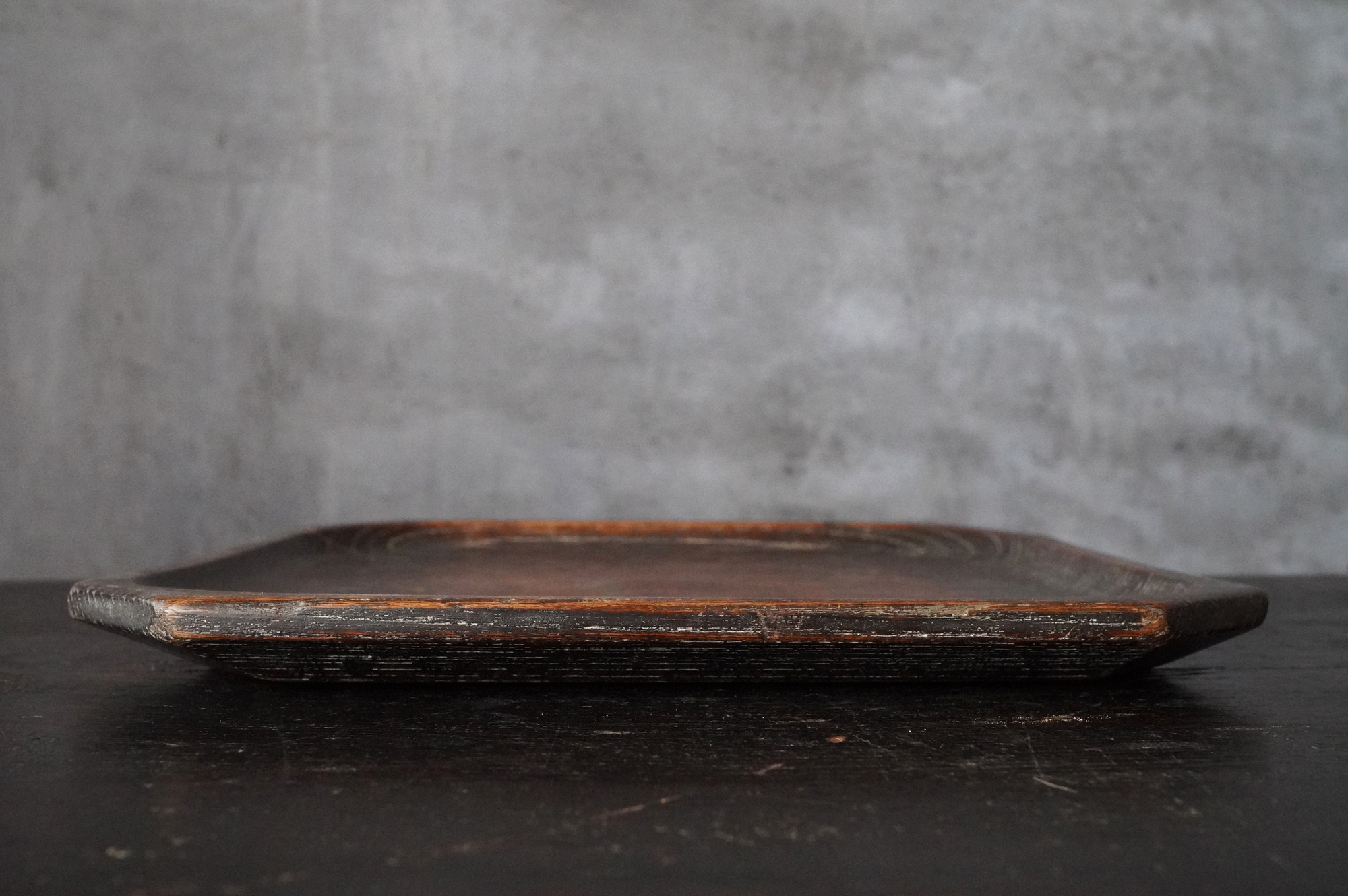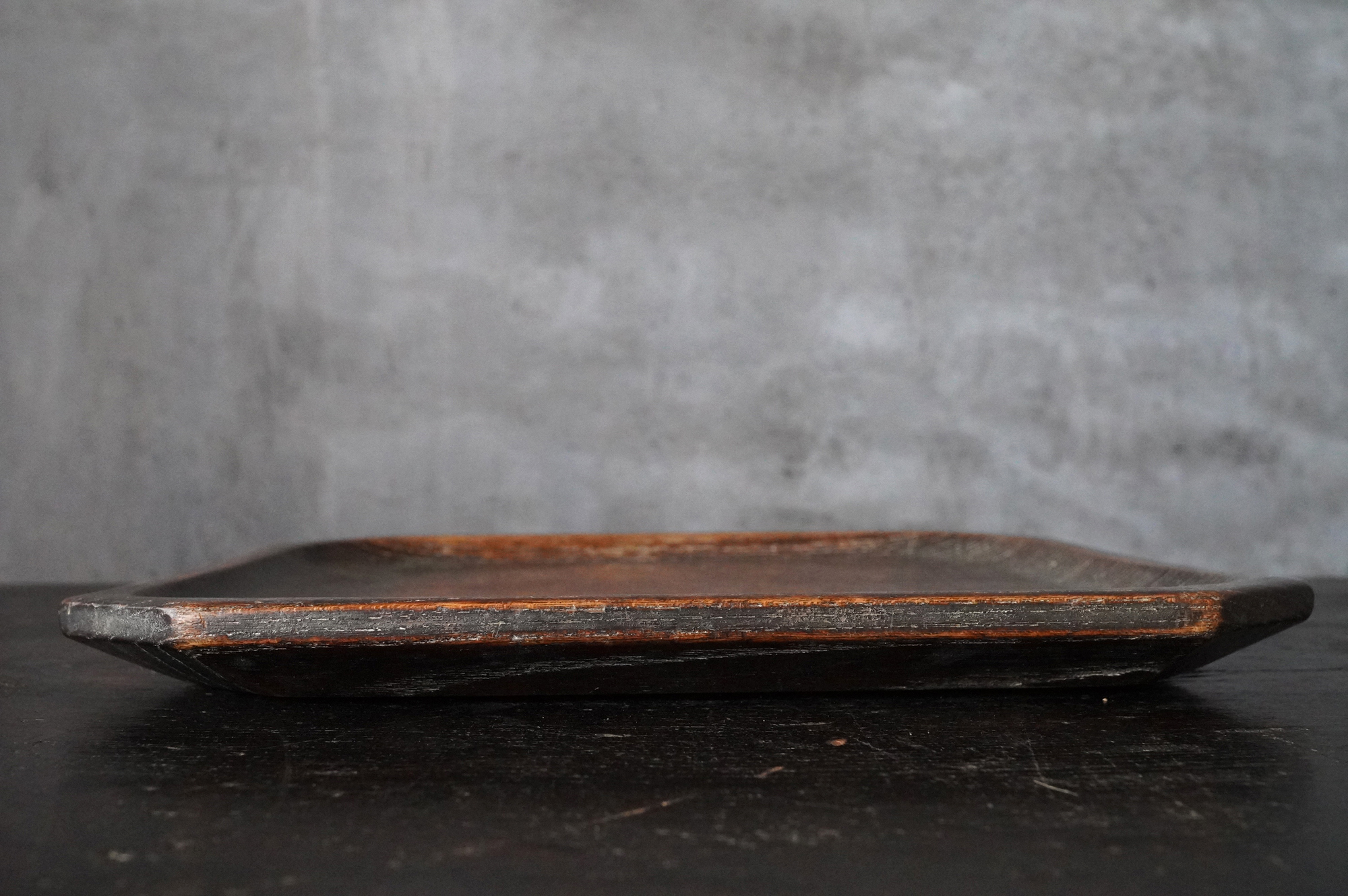 味わいが抜群の栗製の木地盆。塗などの施していない素地ですので、かなりの長い間、使用しないとここまでの味わいにはなりません。小ぶりな盆ですので、一人でのお茶や独酒に最適かと思います。一箇所ほんの少しヒビが生じていますが全く問題ないものです。大正~昭和期。
