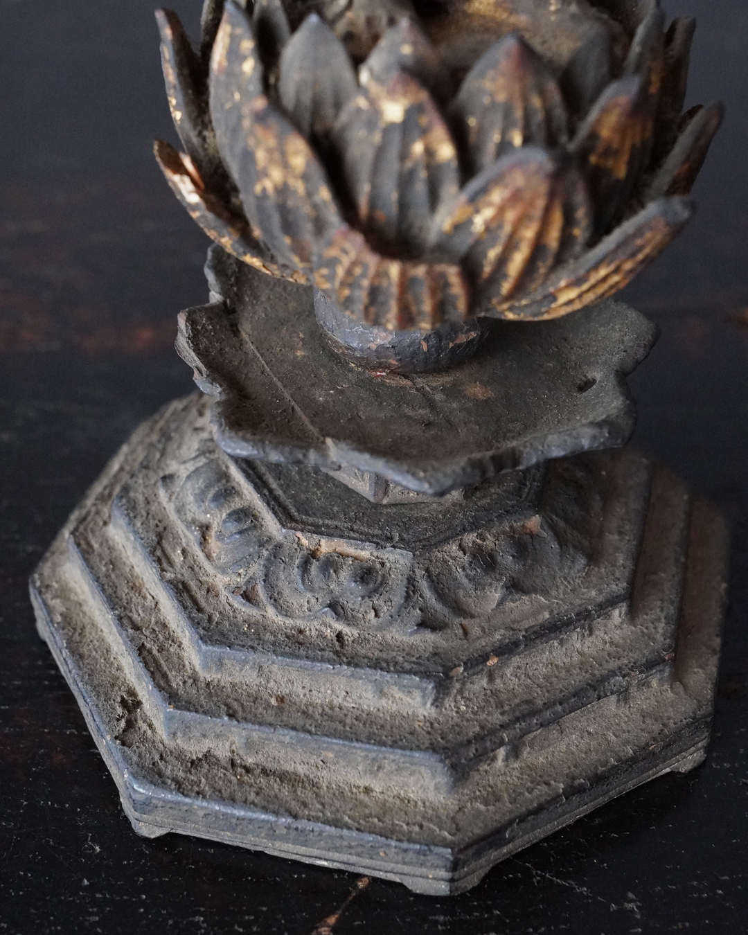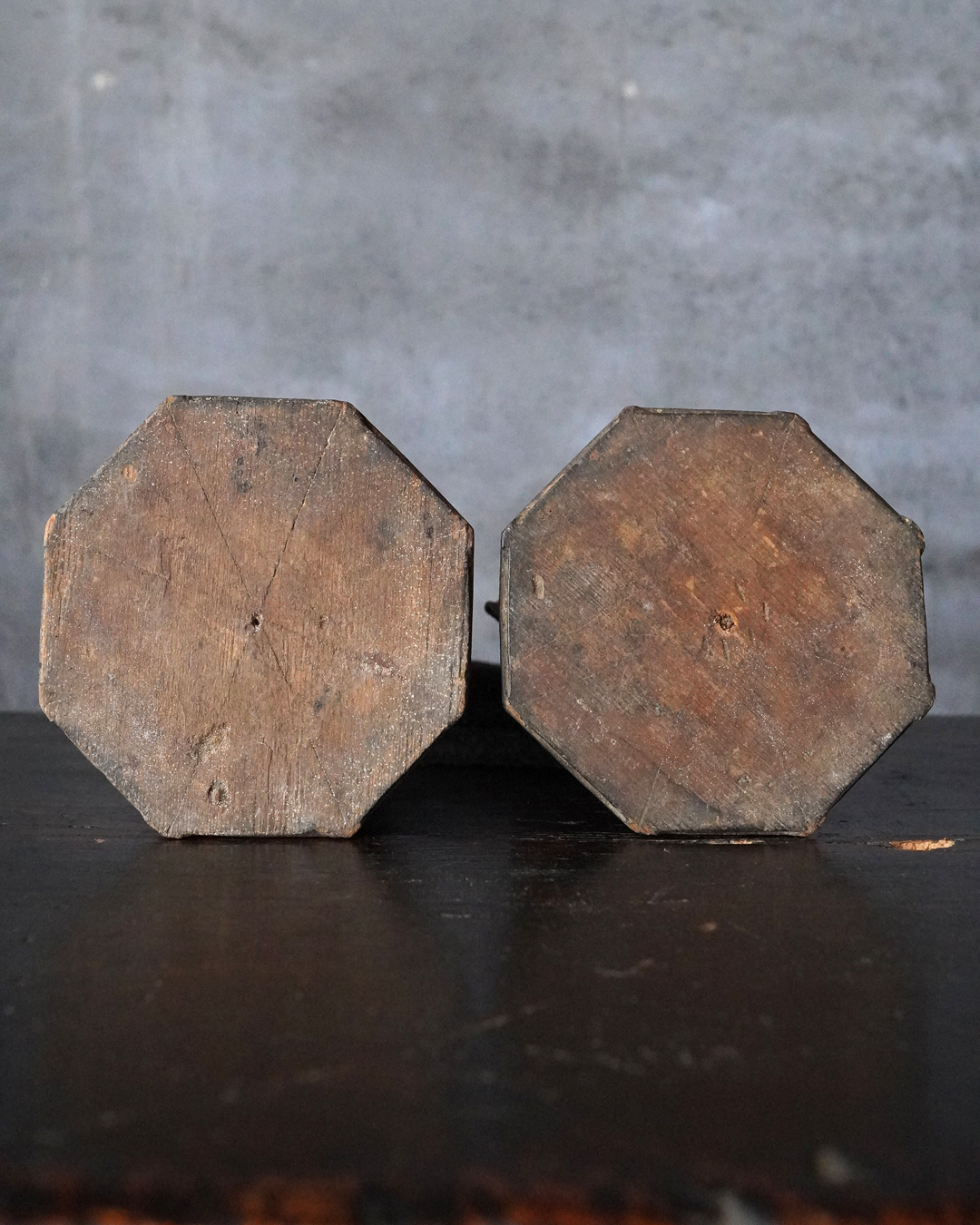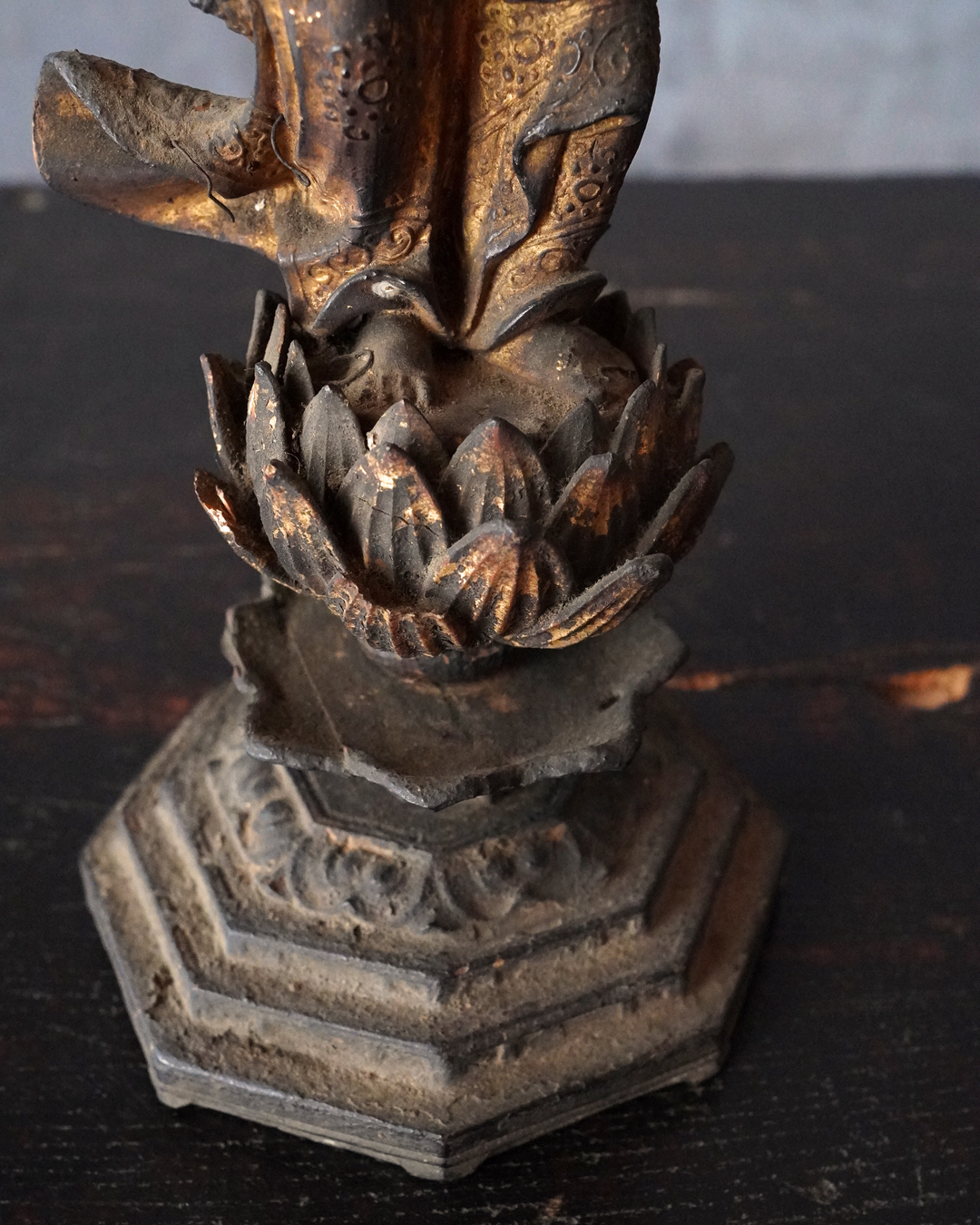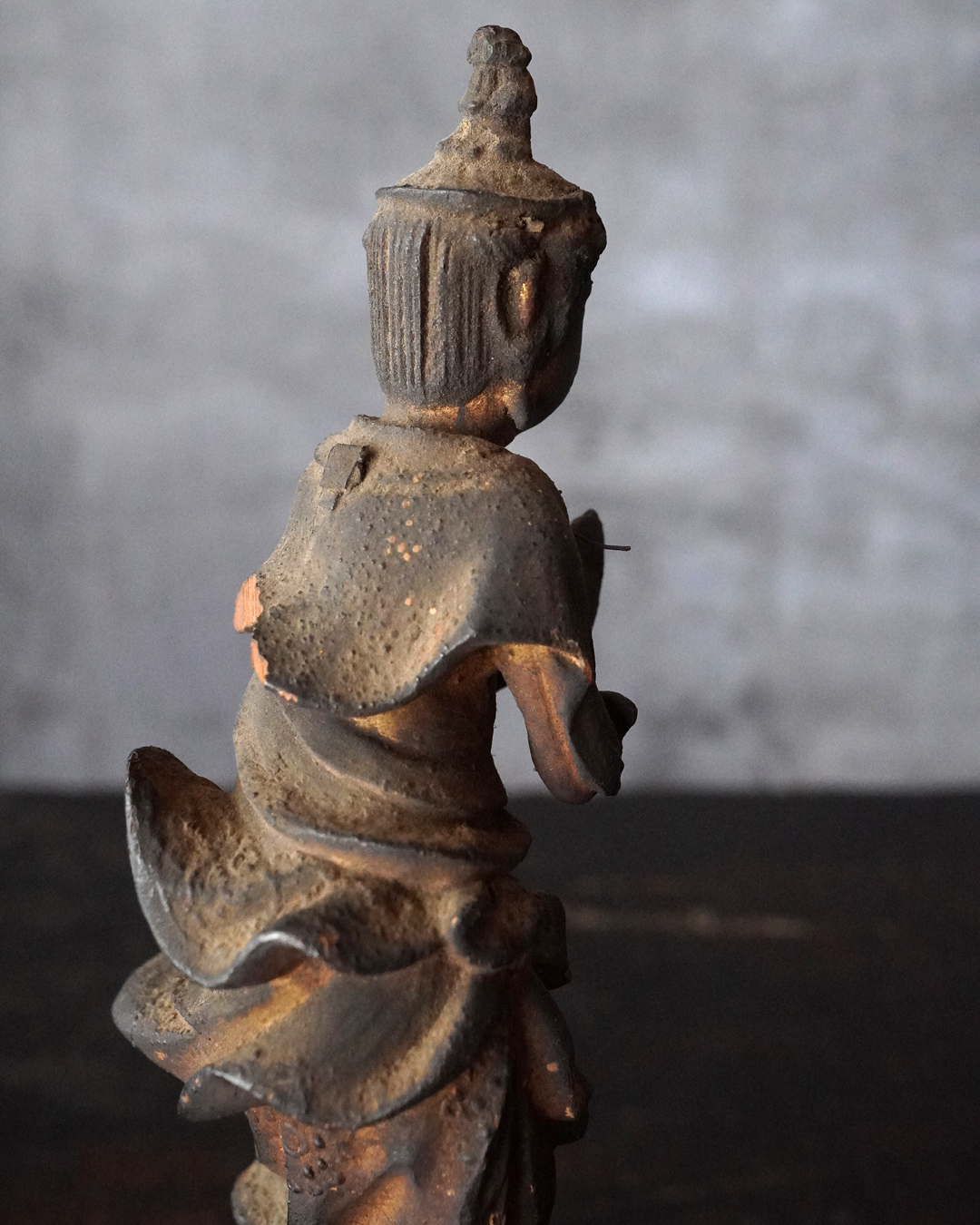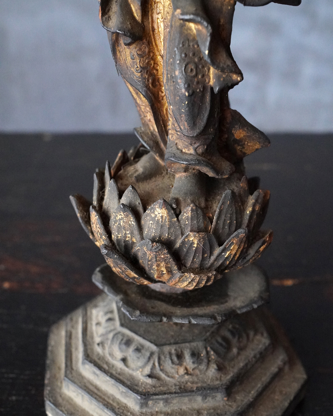 阿弥陀如来像の脇侍であった観音菩薩と勢至菩薩。阿弥陀如来から離れてしまいましたが、二躯揃っても数は多くないでしょう。なんと言っても優しい表情に魅了され、品格もあり、少し屈んで、腰を捻った姿が印象深く、表情、衣文なども丁寧に彫られており彫刻としても魅力あります。煤汚れや少しの破損、また台座は組んでありますが足りない部品もありますがこの類のものでは状態は決して悪くなく良好な部類と言っても差し支えない状態。時代相応の経年による変化がございますので十分画像をご確認の上ご注文下さい。