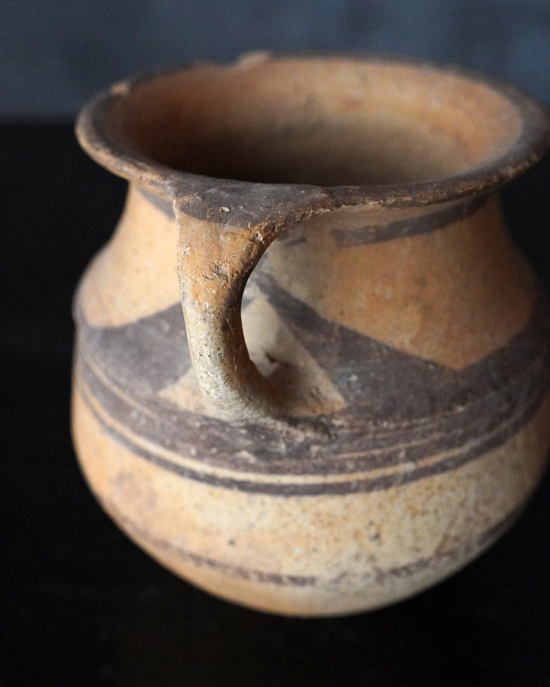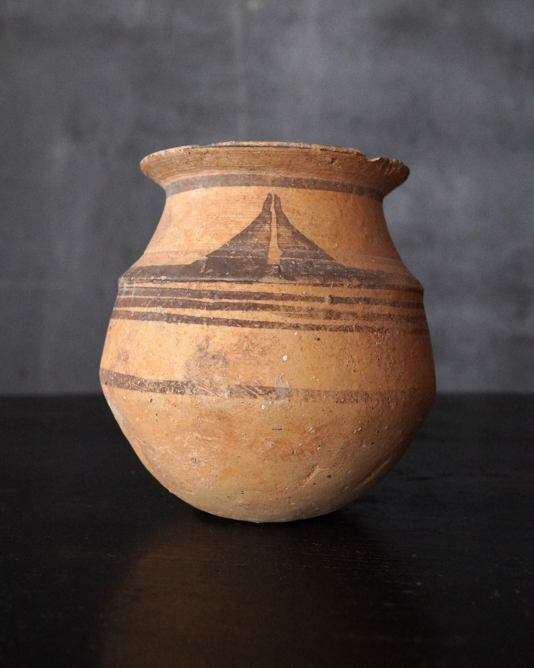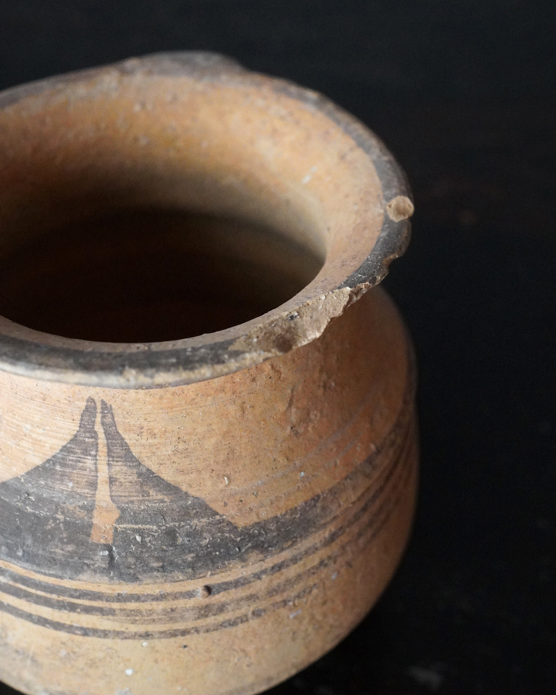 イラン、nihawnad(ニハナド)出土の彩文土器は紀元前3000年頃のもの。プリミティブな印象も受けますが、薄く、シャープな作り、青銅器時代のものですので金属器の影響が出ているのかも知れません。縁に小さなチップはありますが修理などはなく状態は良好。
