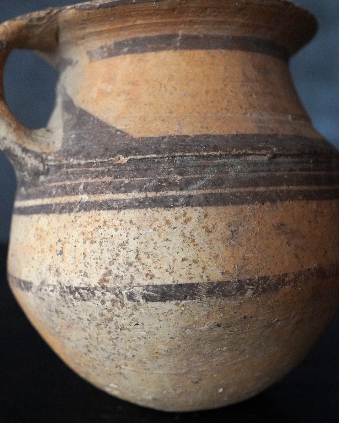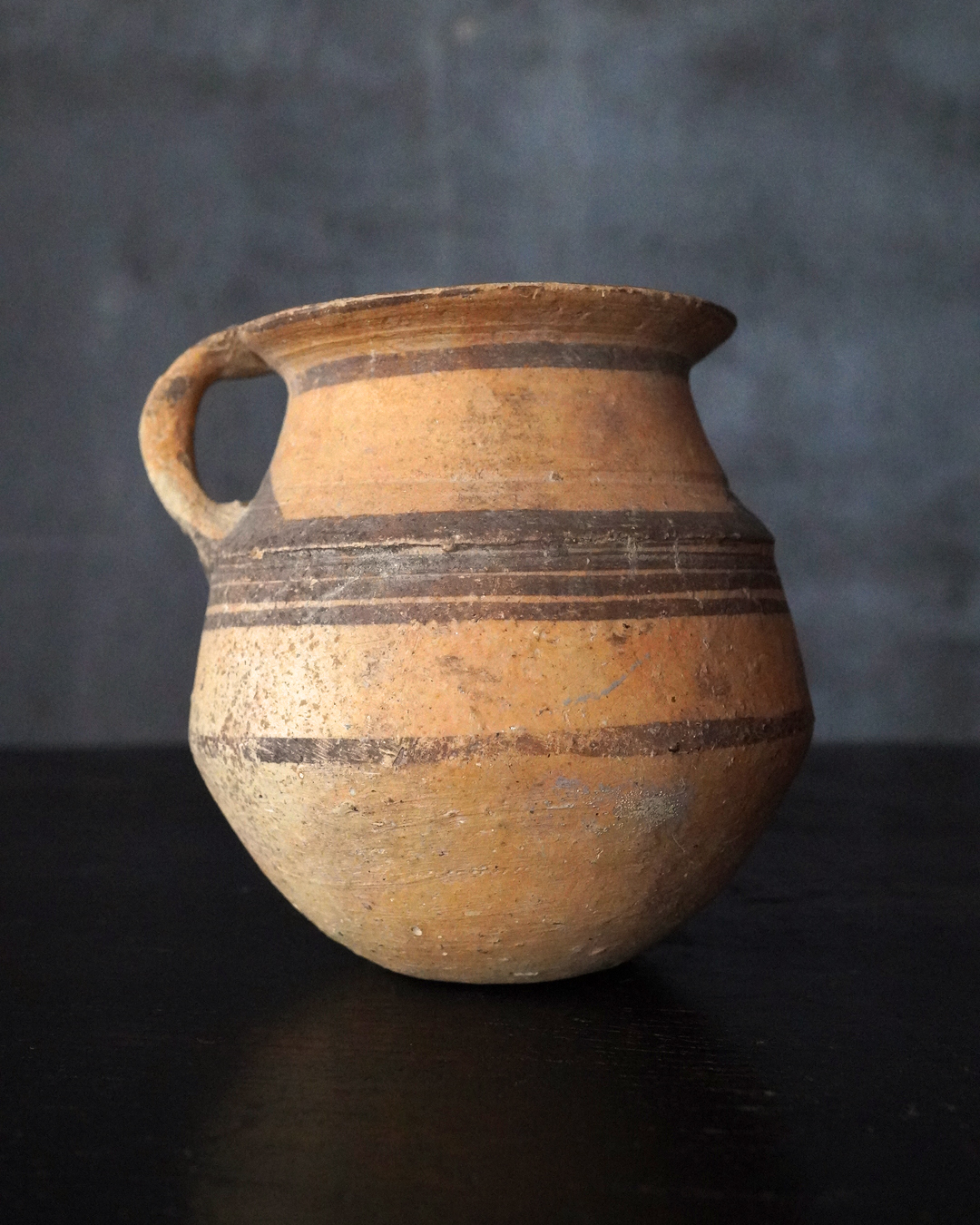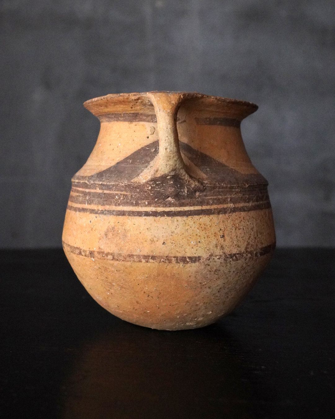 イラン、nihawnad(ニハナド)出土の彩文土器は紀元前3000年頃のもの。プリミティブな印象も受けますが、薄く、シャープな作り、青銅器時代のものですので金属器の影響が出ているのかも知れません。縁に小さなチップはありますが修理などはなく状態は良好。