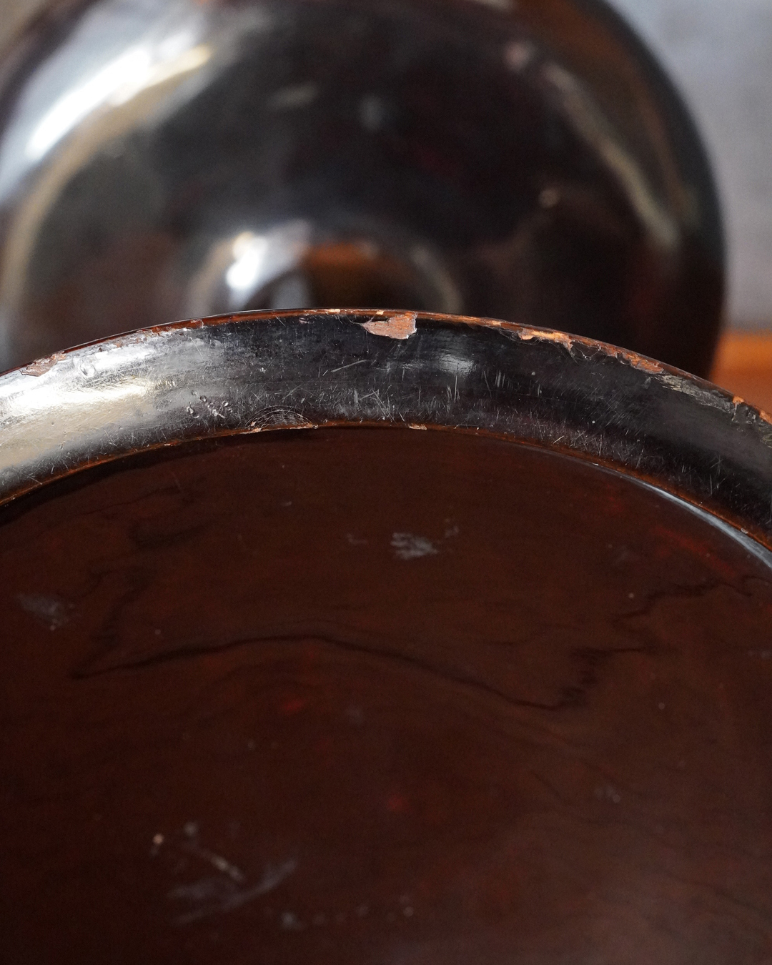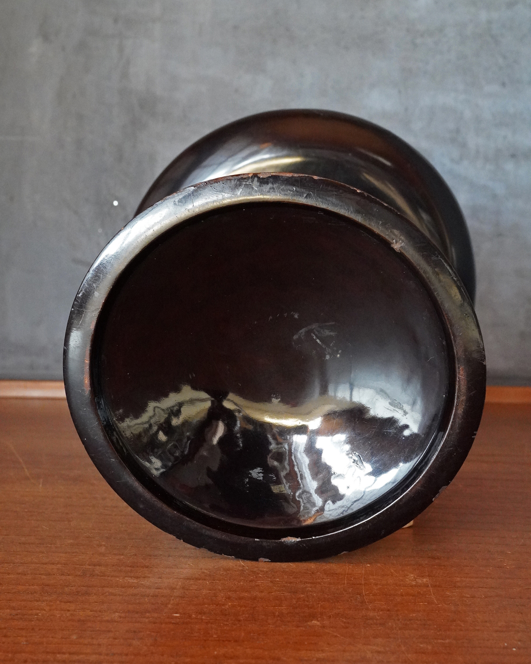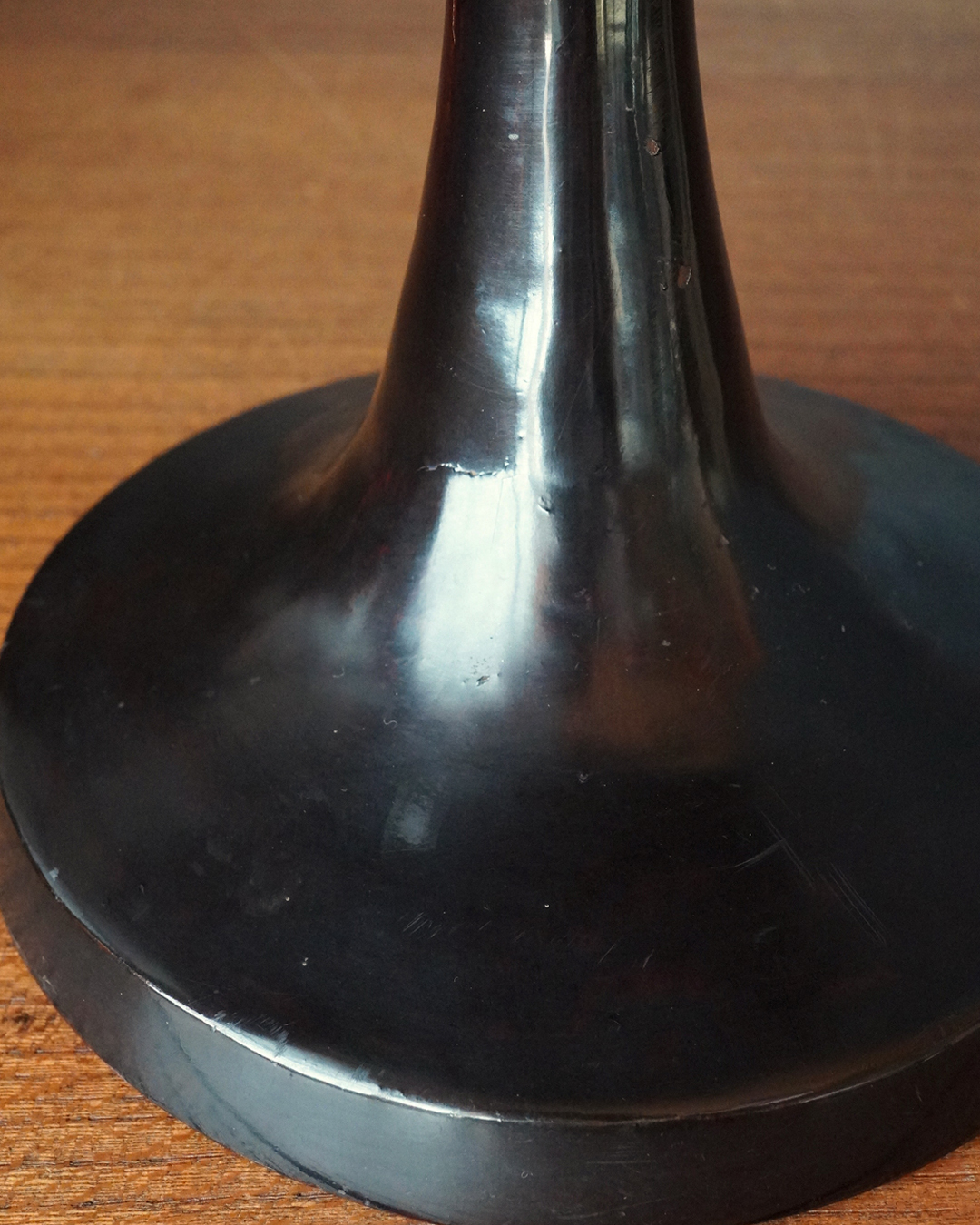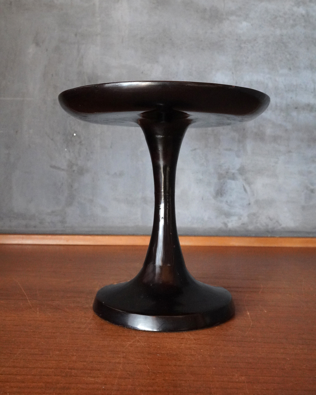 スラリとした品の良い姿の高杯。上部の天板の朱の塗りは堅牢で時代を経た深みのある色。下部は経年で接合部に塗りの剥がれ、塗り直しなどございますが古漆器好きであれば気にならないかと思います。古格あるスタイルで経年で落ち着きある色合いも魅力。時代相応の変化、個人的にはあまり気にならない程度ですが少しガタツキがあります、欠点とは考えておりませんが予めご了承ください。問題なくご使用可能です(気になる際は何かを咬ませれば安定します)。江戸時代。