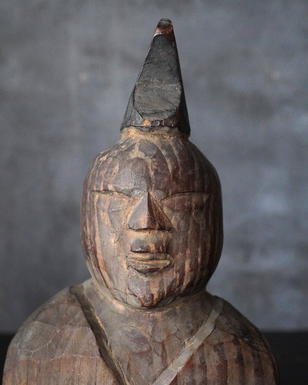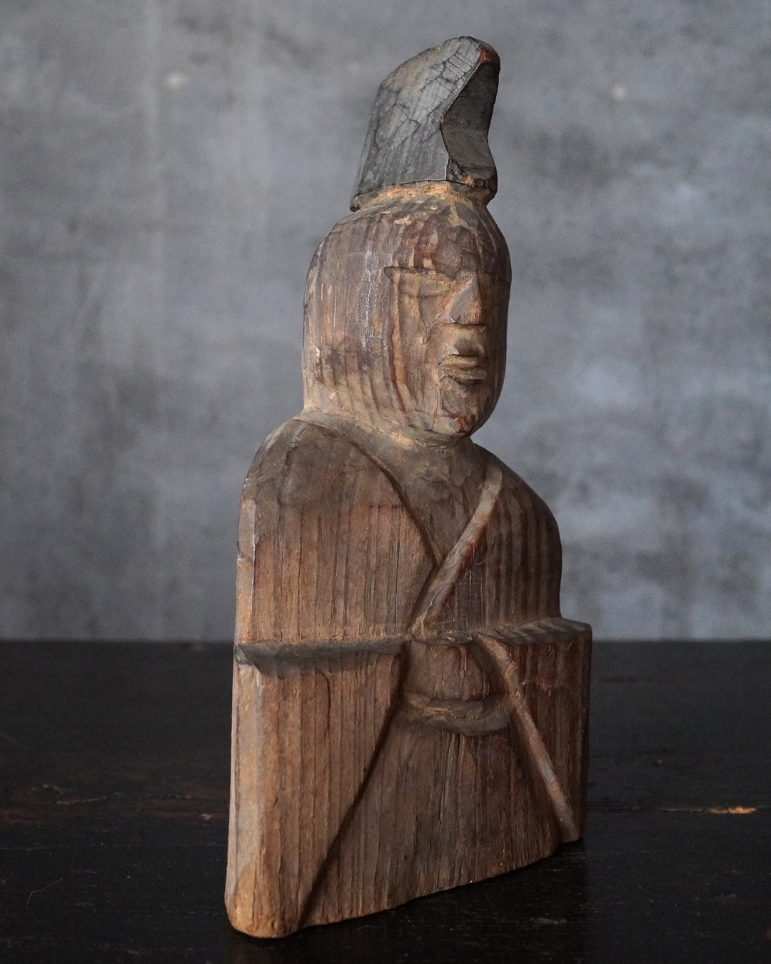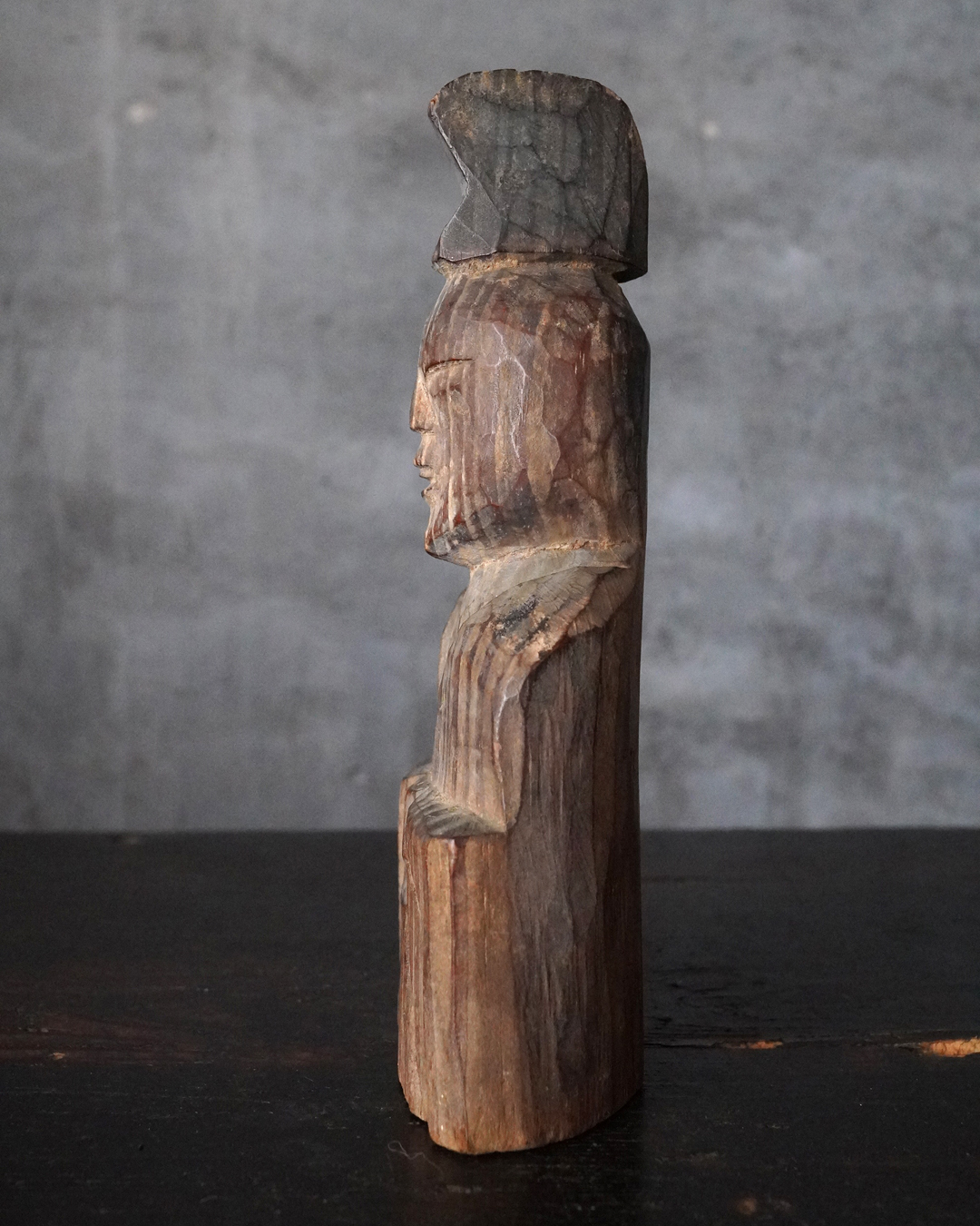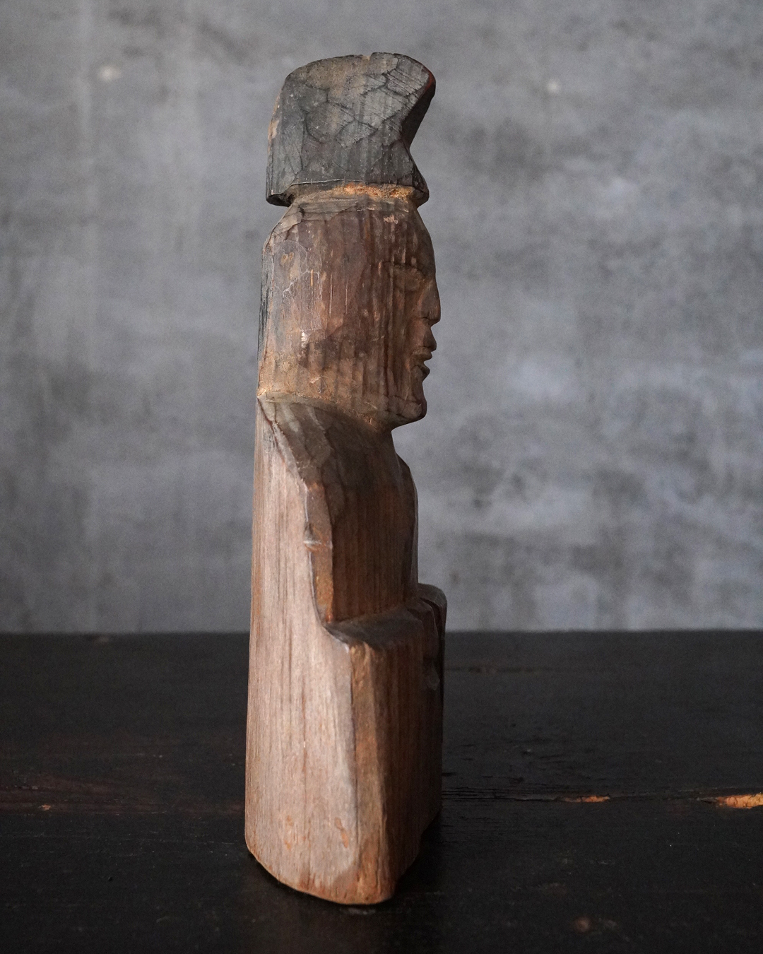 素朴で簡素、拙い彫りではありますが庶民の生活に密接な祈りから生まれた造形はなんとも言えない魅力があります。出自などの詳細は分かりませんが山ノ神などを感じる造形です。時代相応の経年変化はございますので画像にてご確認の上ご注文下さい。江戸時代。