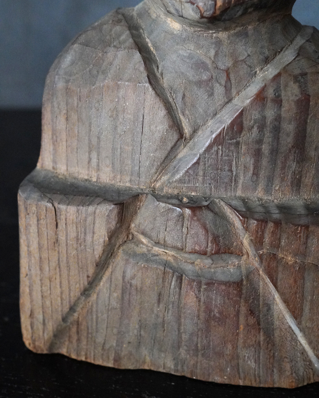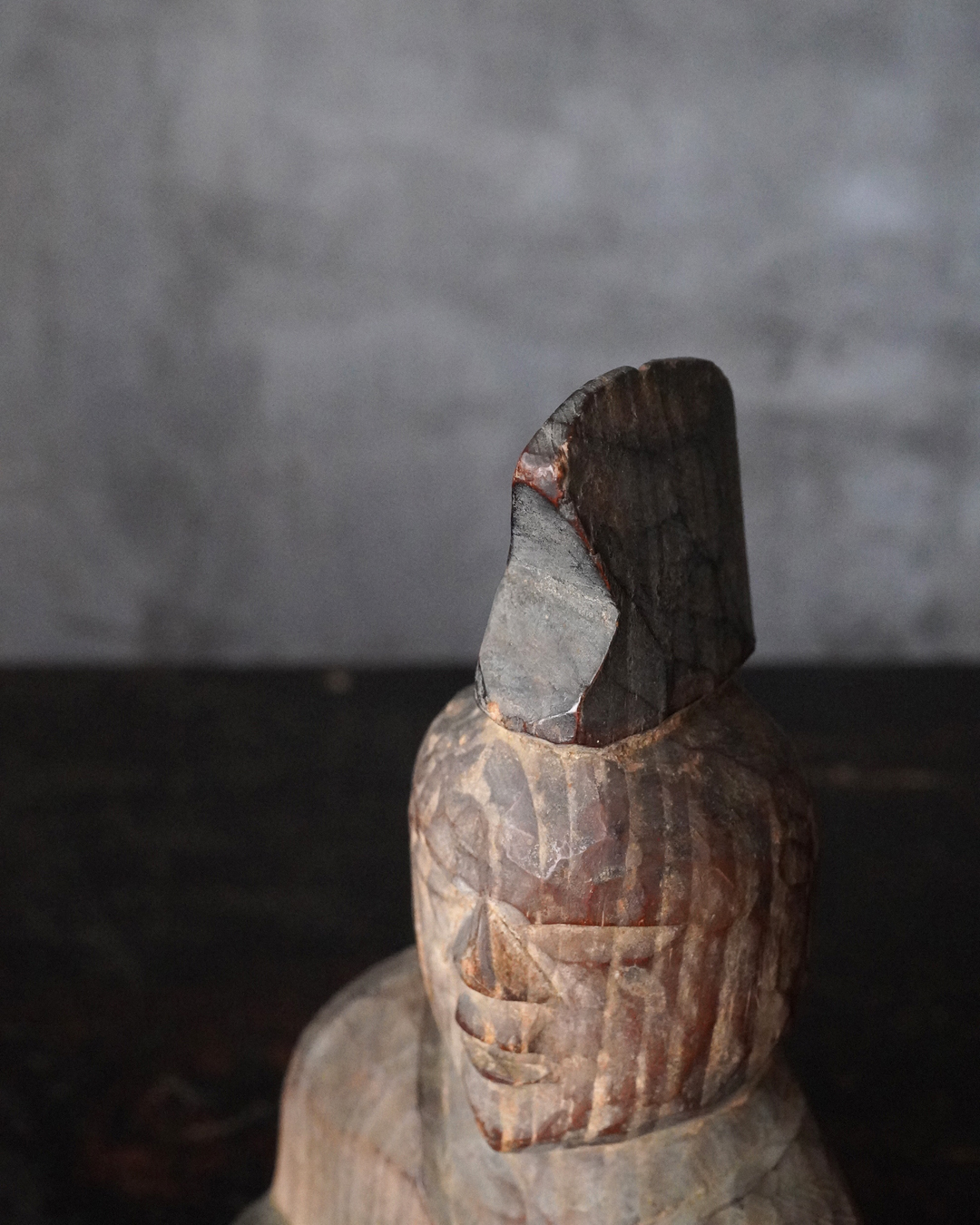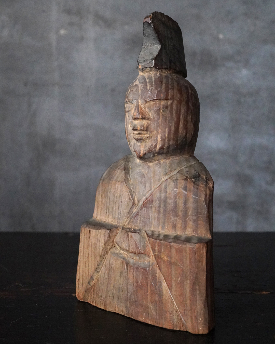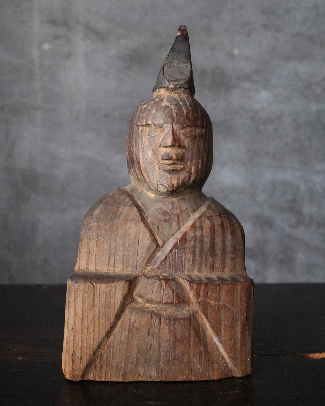 素朴で簡素、拙い彫りではありますが庶民の生活に密接な祈りから生まれた造形はなんとも言えない魅力があります。出自などの詳細は分かりませんが山ノ神などを感じる造形です。時代相応の経年変化はございますので画像にてご確認の上ご注文下さい。江戸時代。