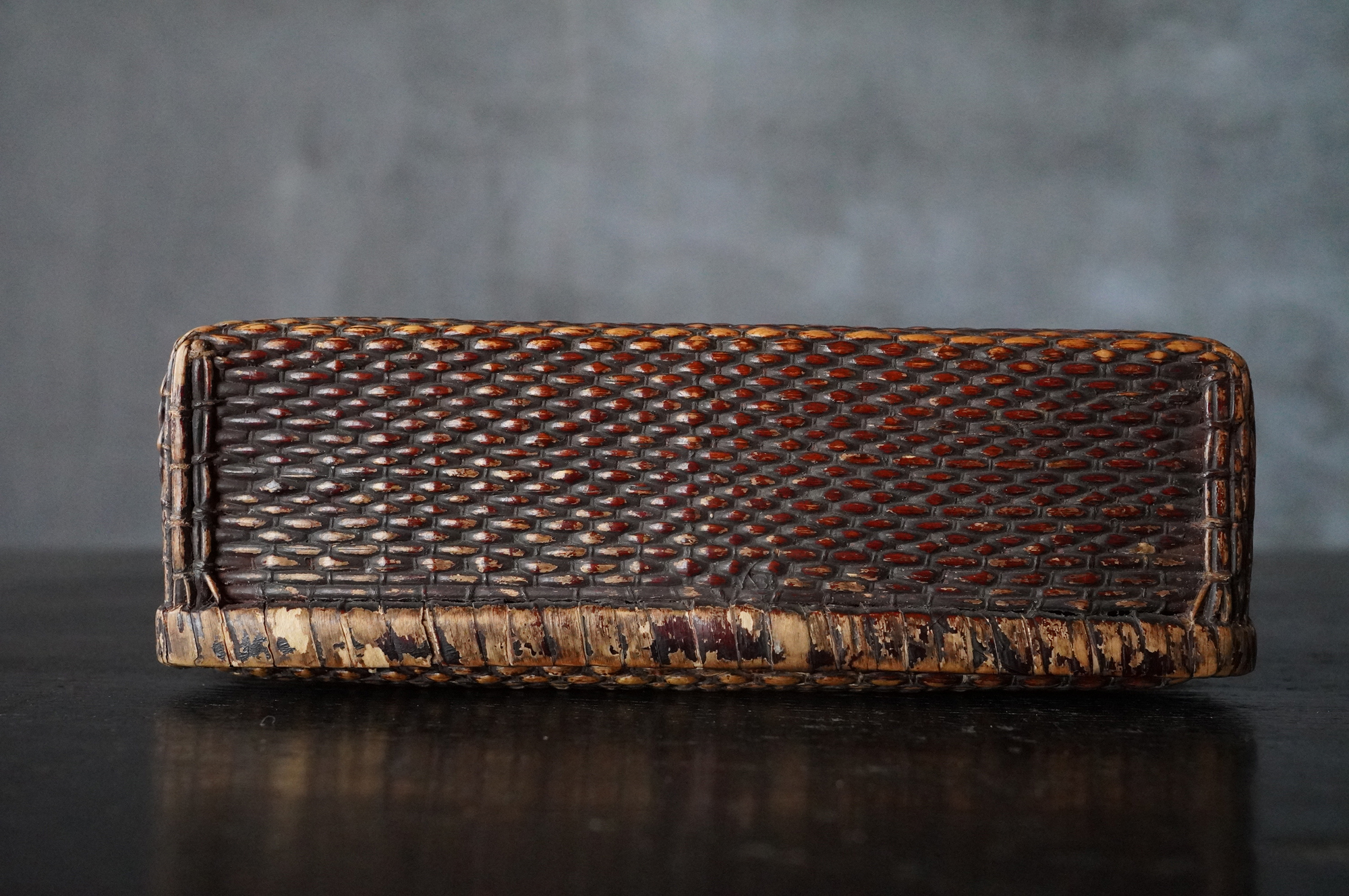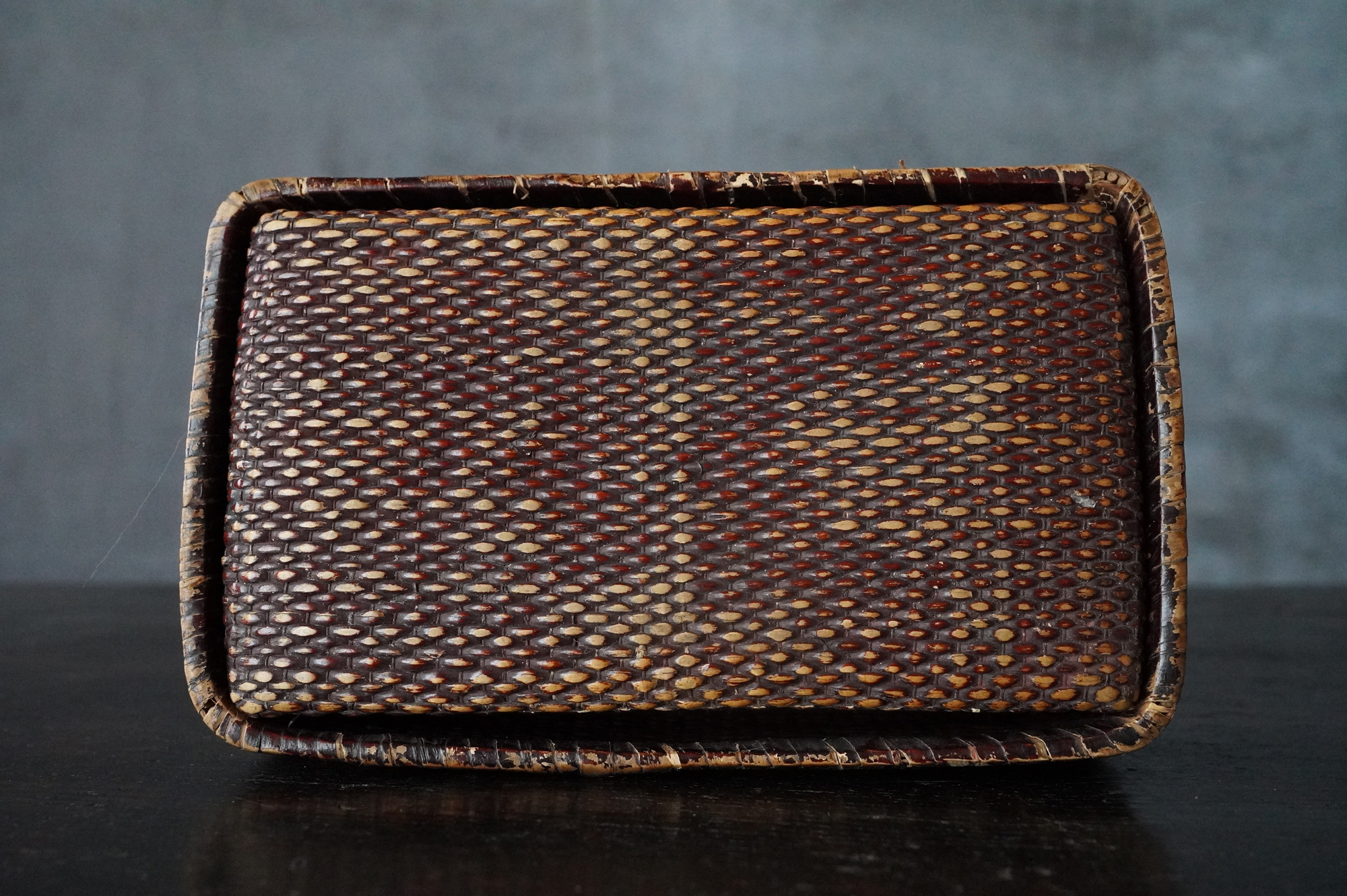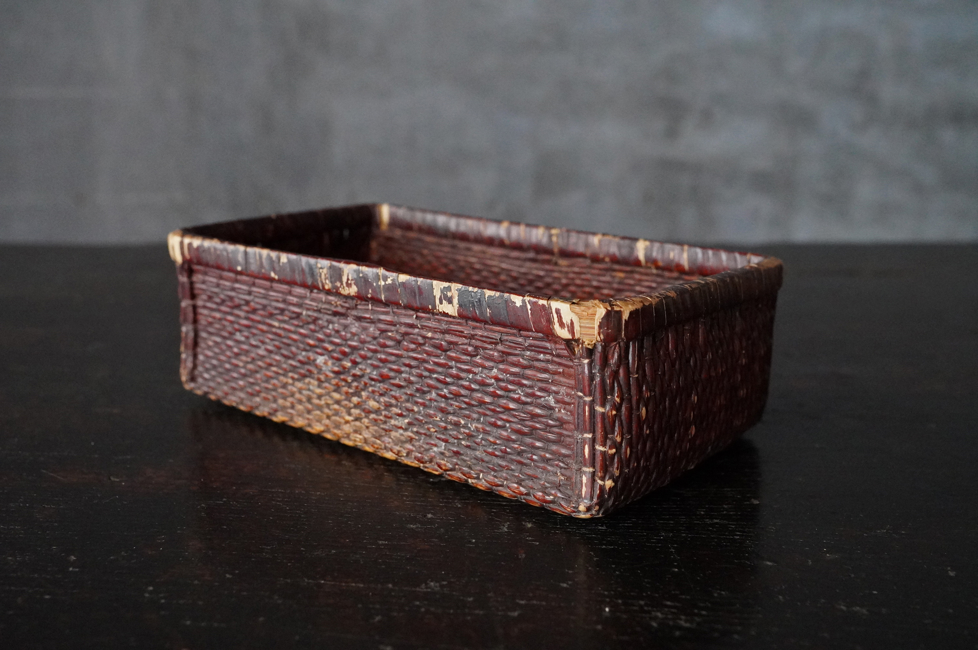 漆が塗られている上手の小さな柳行李。擦れや使用感など時代相応の経年変化はございますが個人的には味わいの範疇かと思います。状態は概ね良好。特別なものではなく、日々使われていた道具ですがどこか品の良さがあります。江戸〜明治。