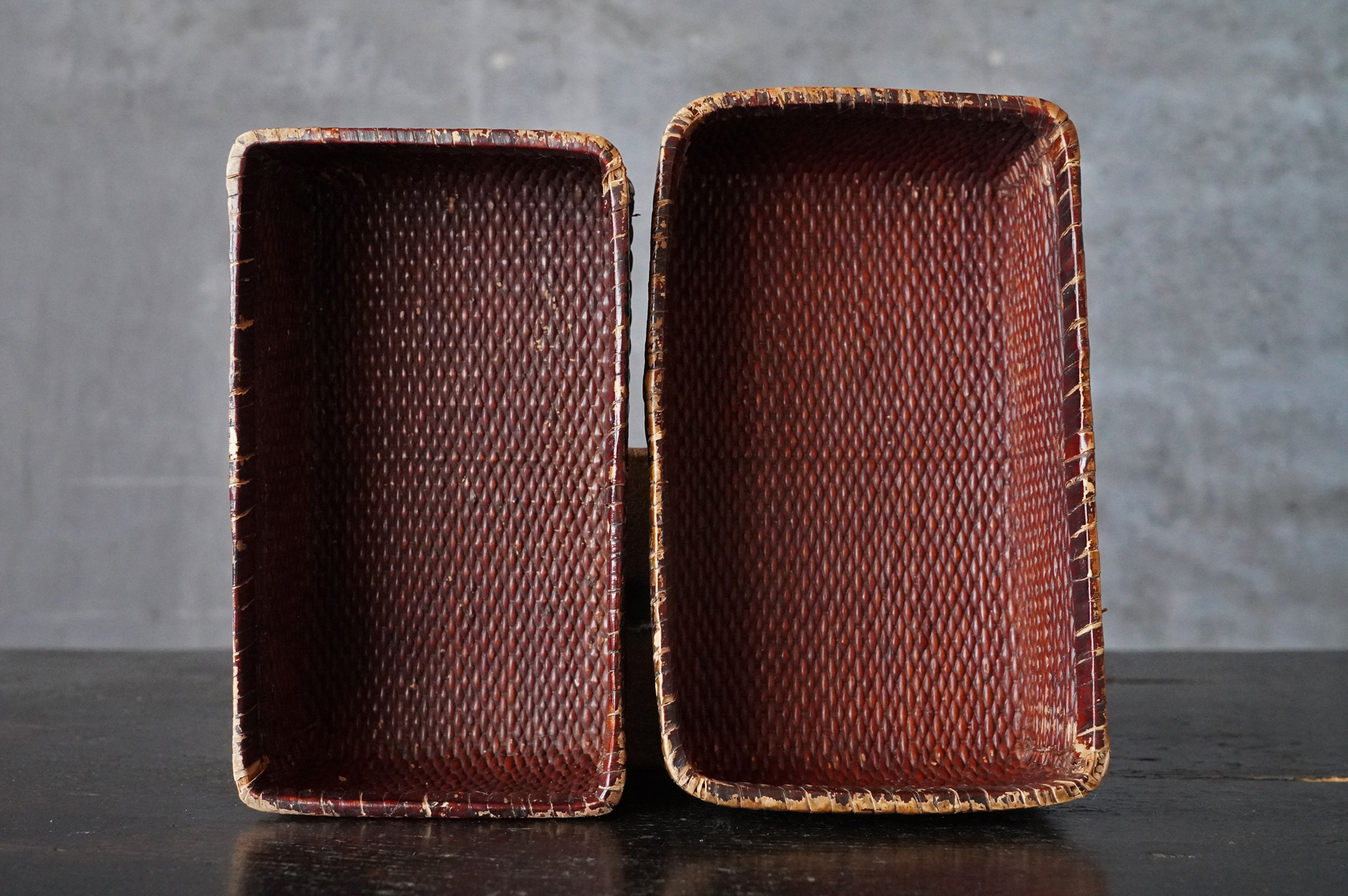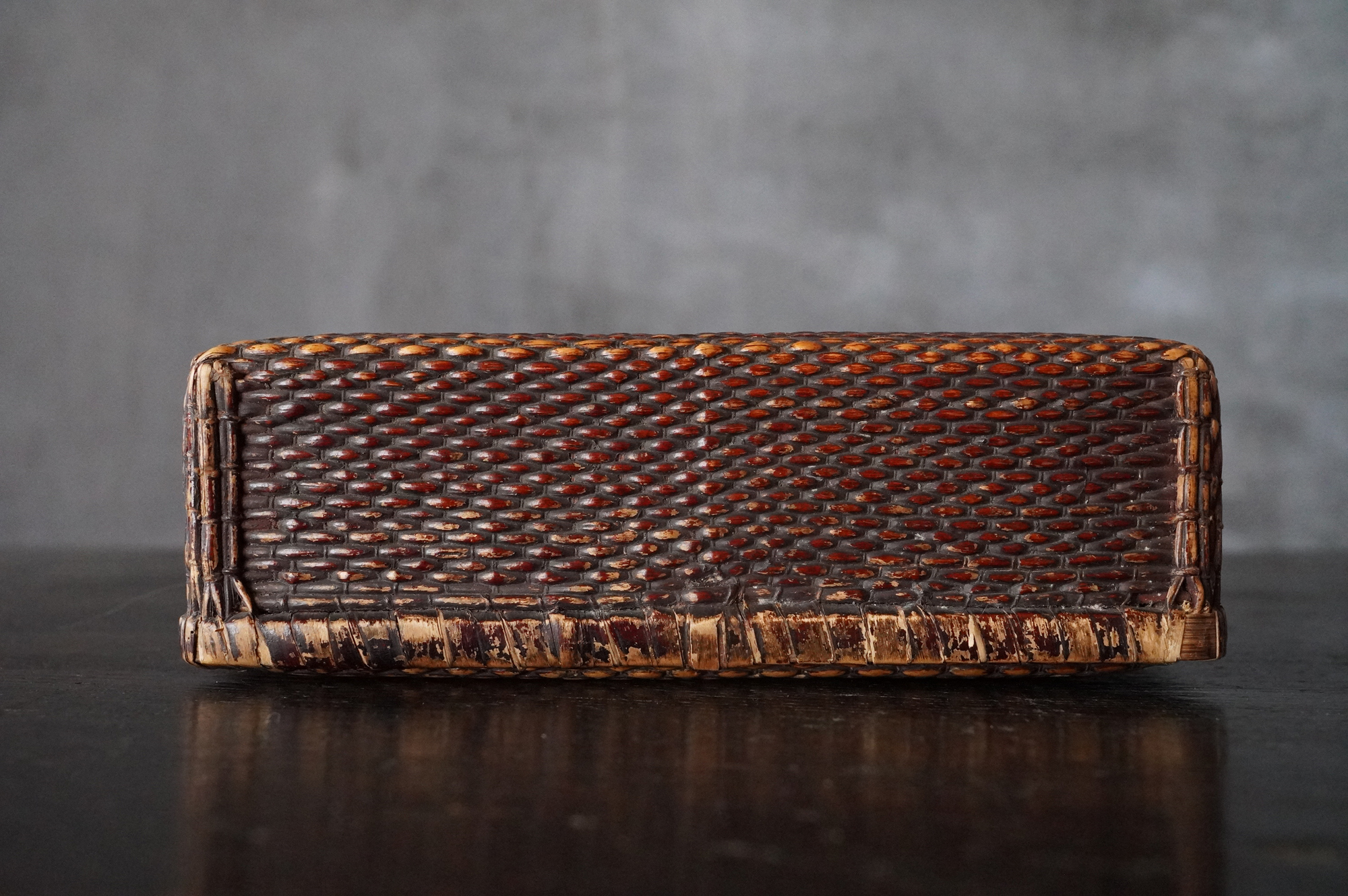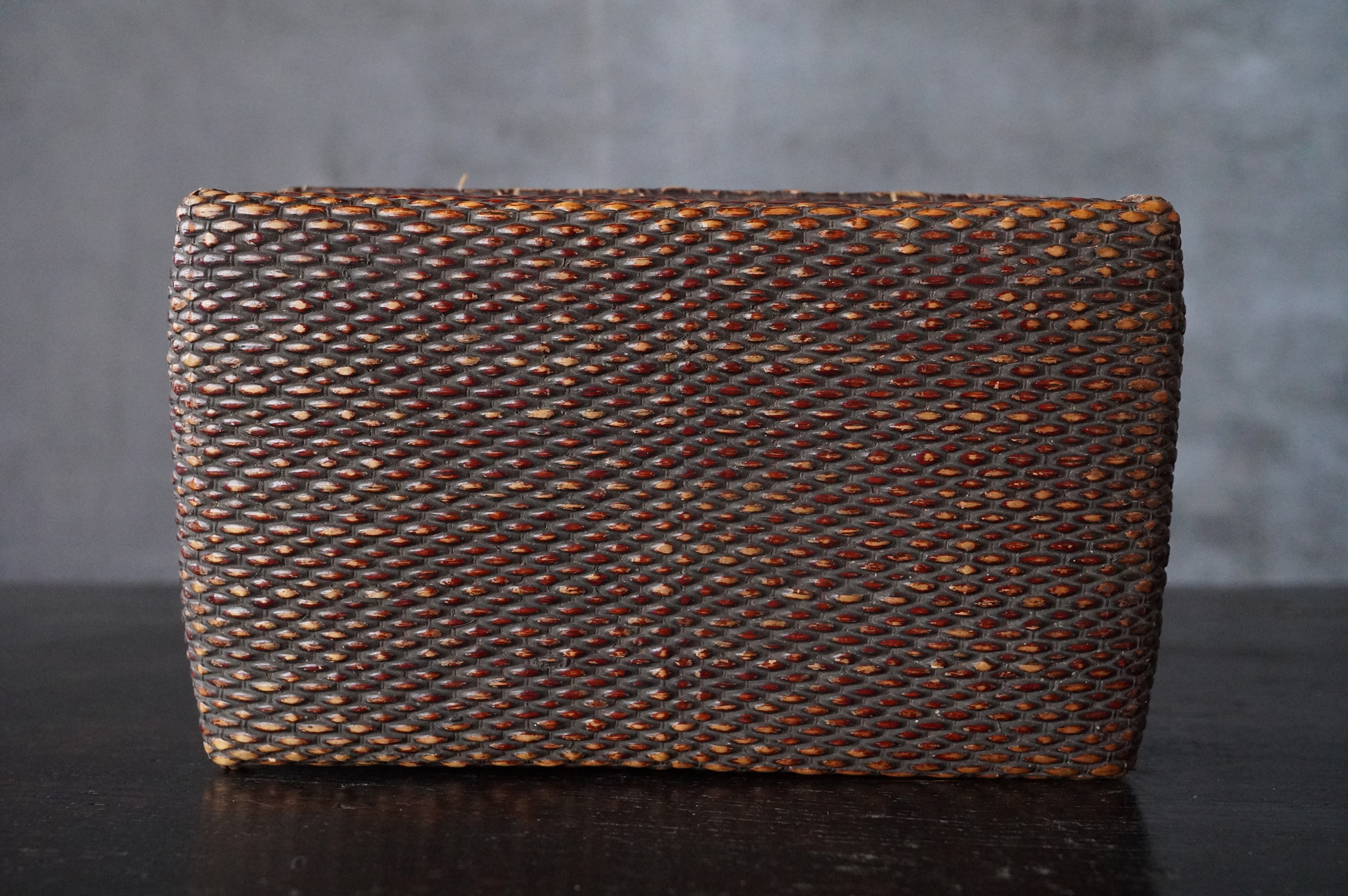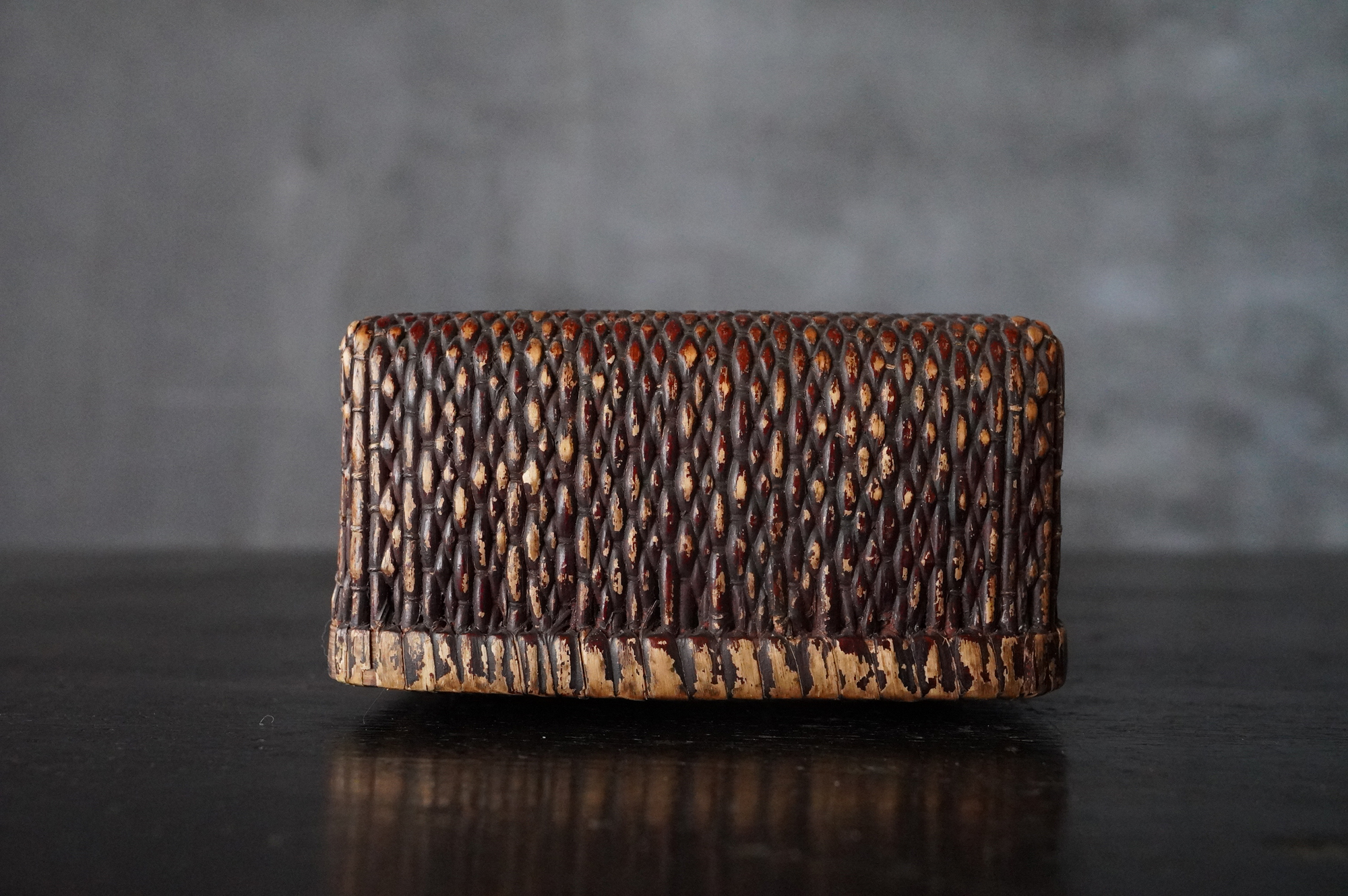 漆が塗られている上手の小さな柳行李。擦れや使用感など時代相応の経年変化はございますが個人的には味わいの範疇かと思います。状態は概ね良好。特別なものではなく、日々使われていた道具ですがどこか品の良さがあります。江戸〜明治。
