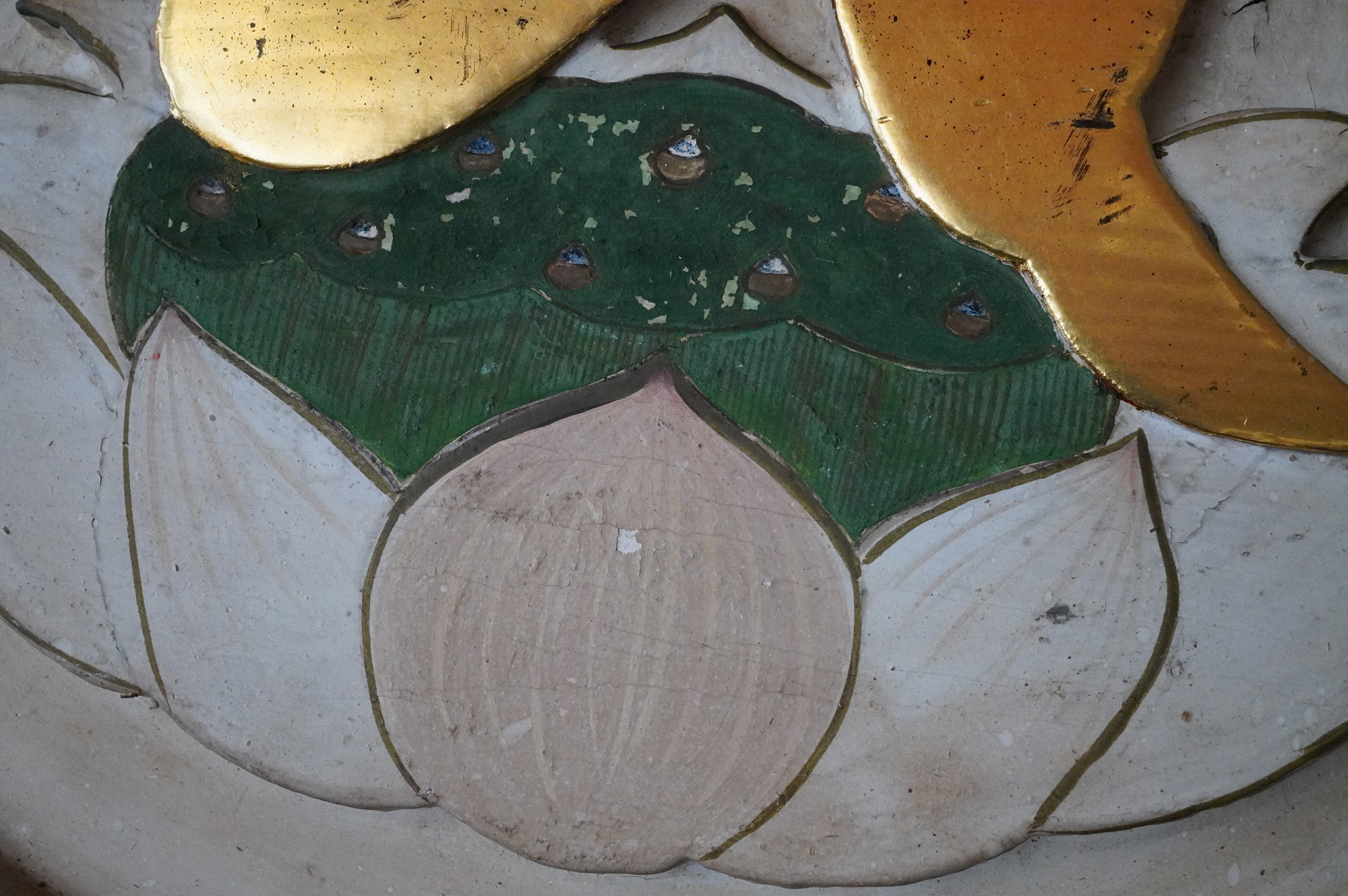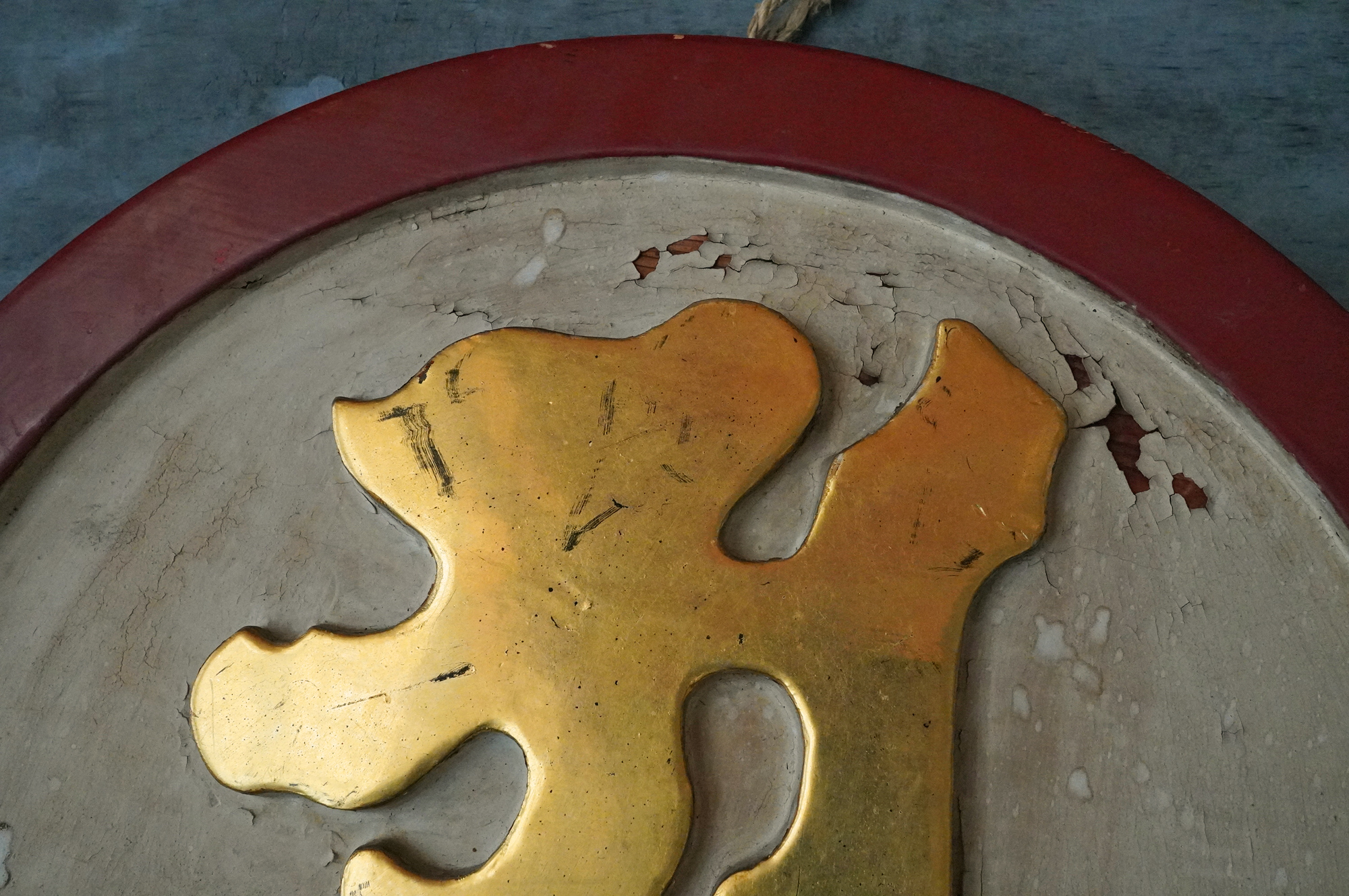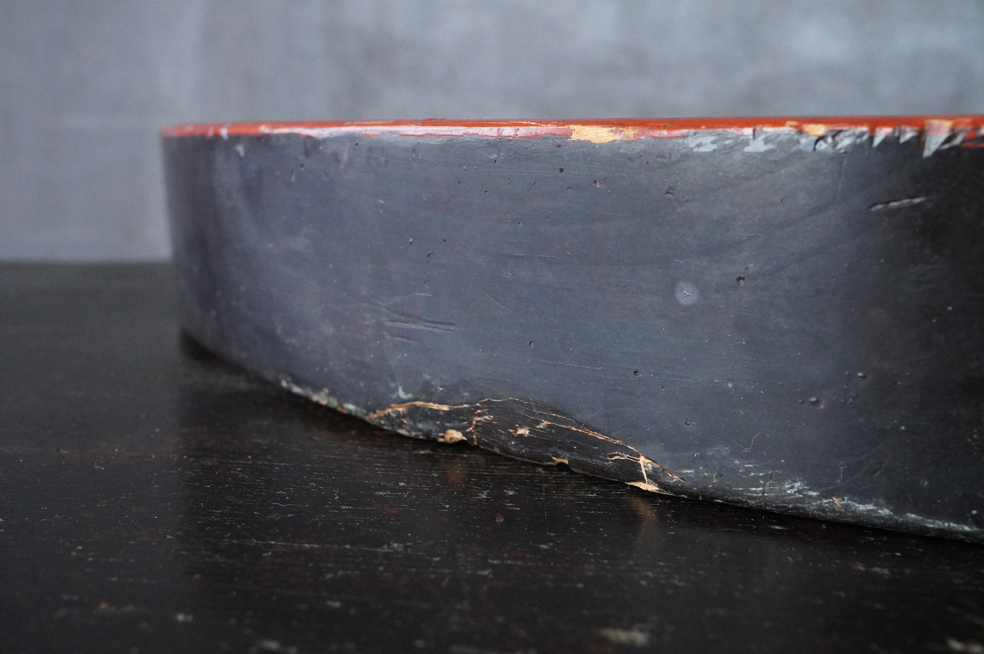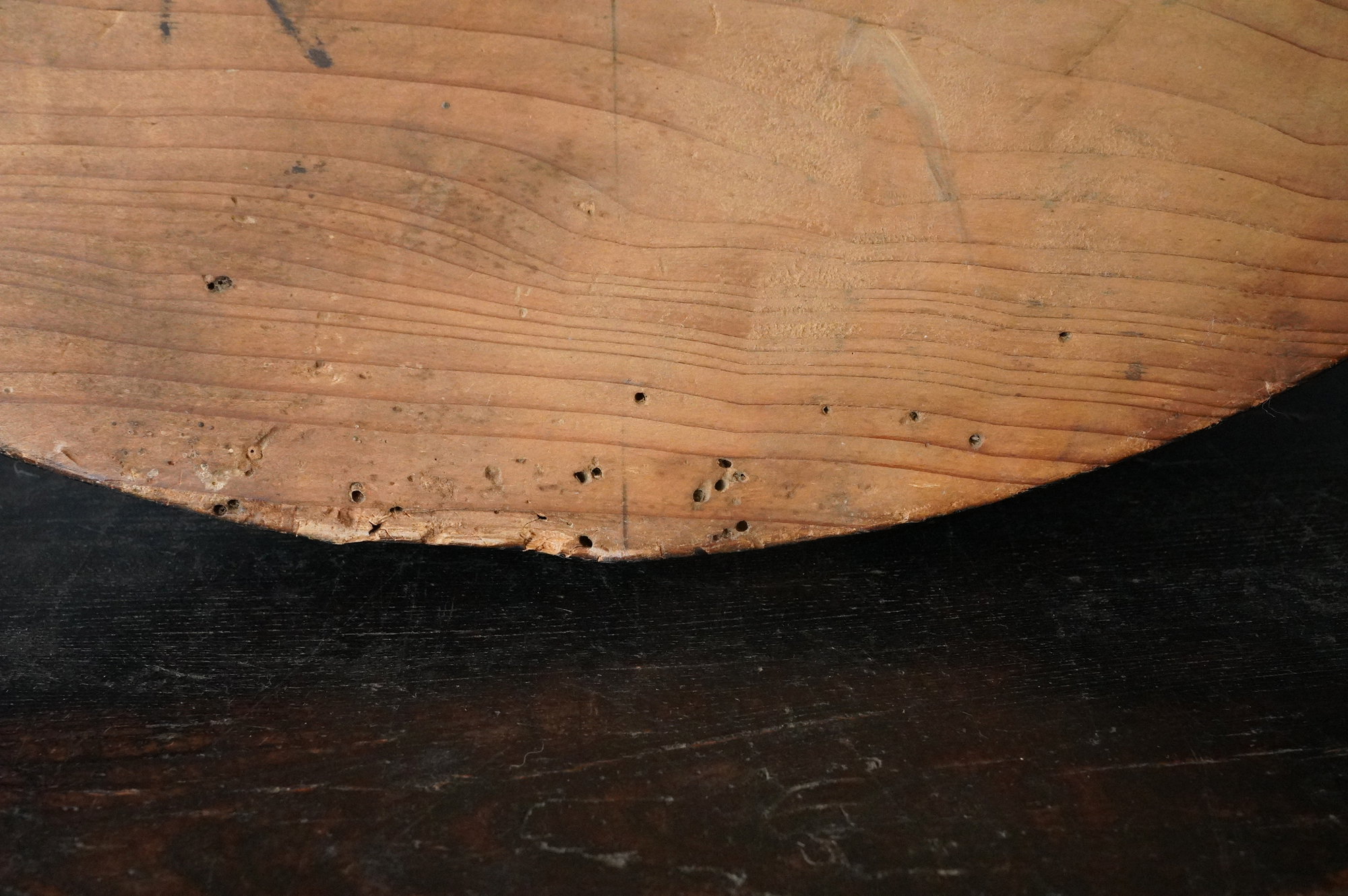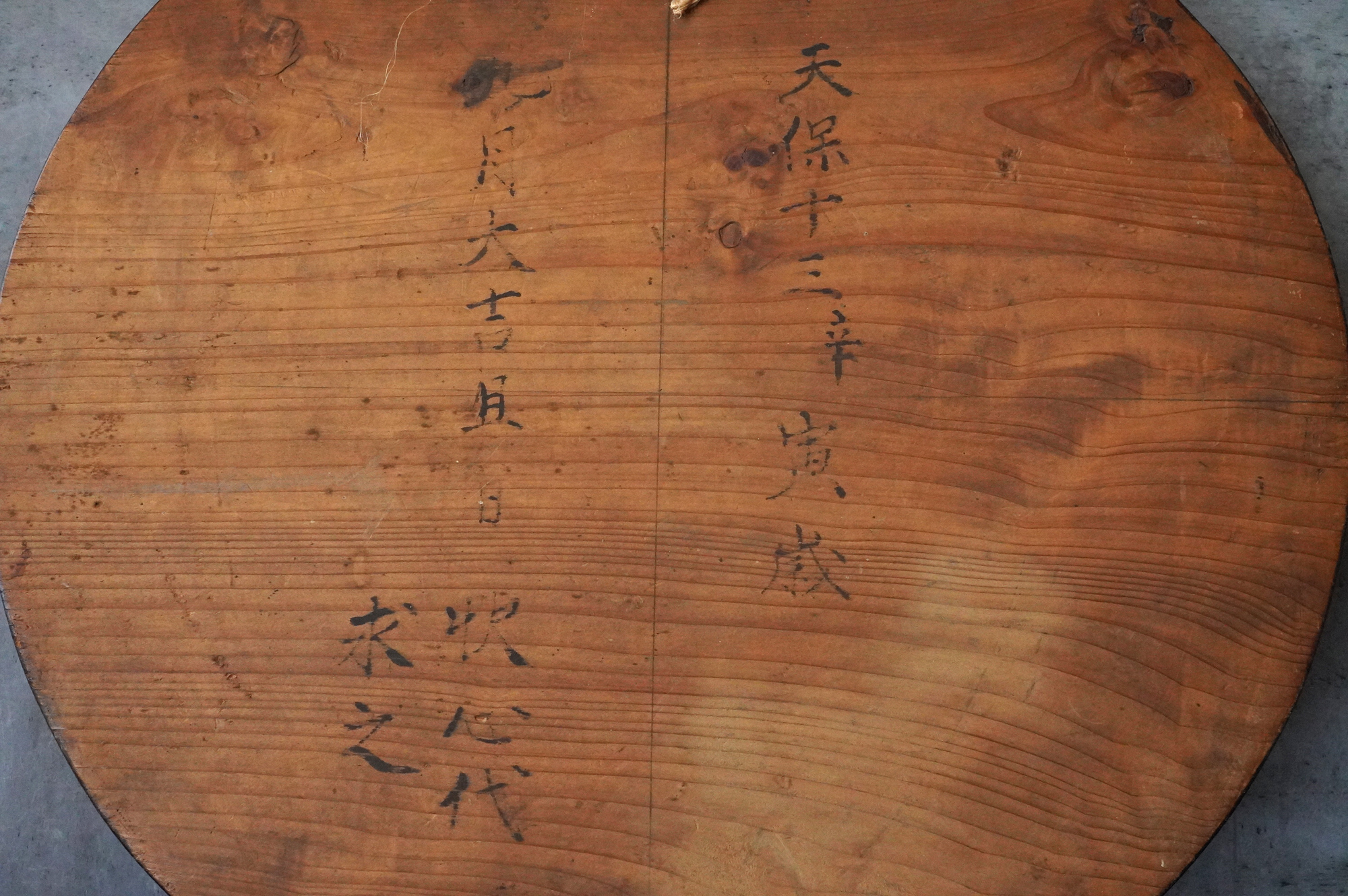 木彫で彩色された阿字観像。阿字観とは真言密教の経典「大日経」の瞑想法でその際に使用するもの。梵字は「阿」で大日如来で本品のように木彫で大型のものは初見です。裏に天保十三年・・・・と墨書あり。汚れ、胡粉の剥がれなどの時代相応の経年変化はございますが状態は時代を考慮しても概ね良好と考えます。金彩の部分が状態がよく光が当たると輝きます。壁に掛けるとインテリアとして素直にかっこいいですし、本来の目的の瞑想に使用しても良いでしょう。