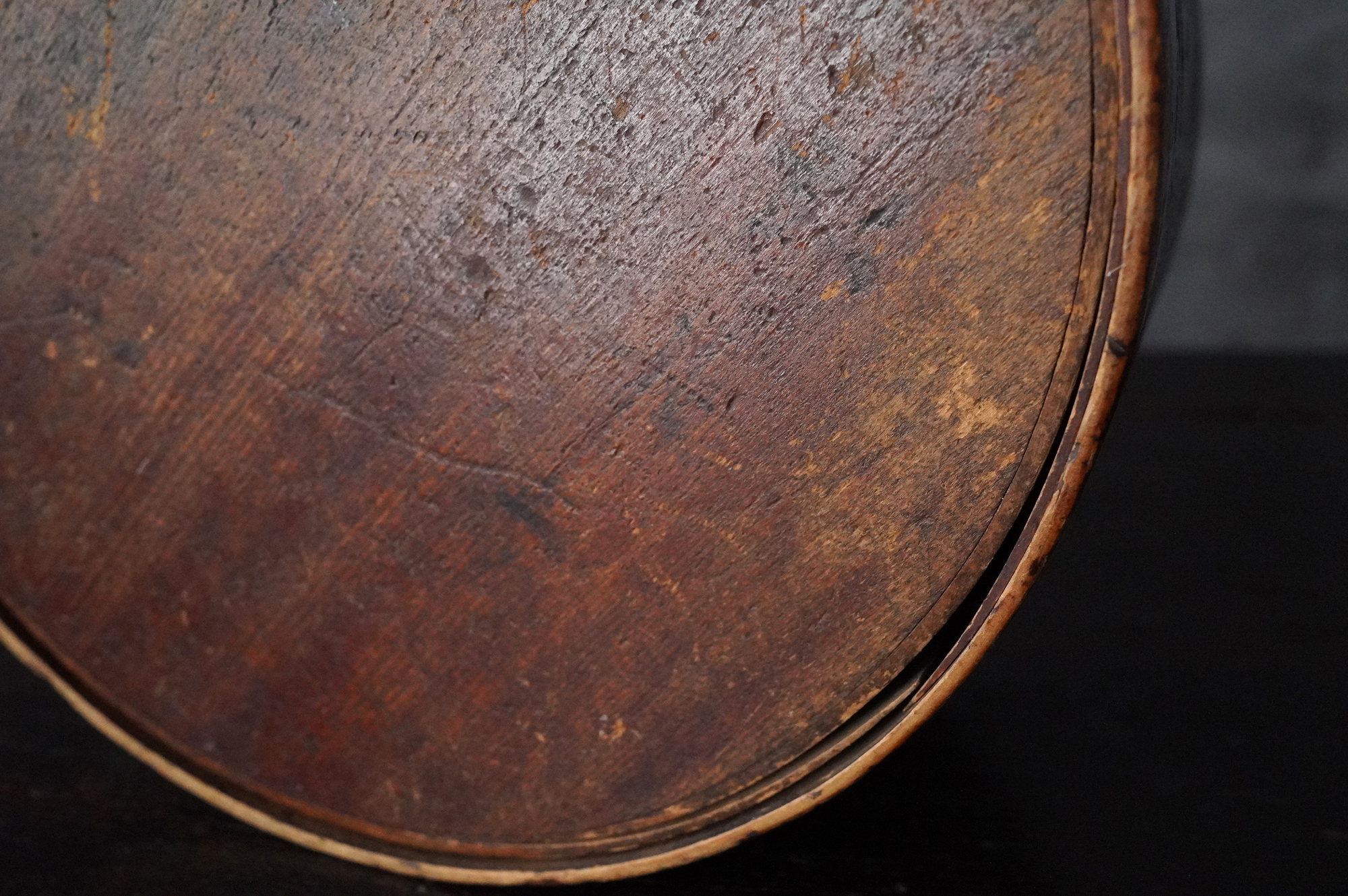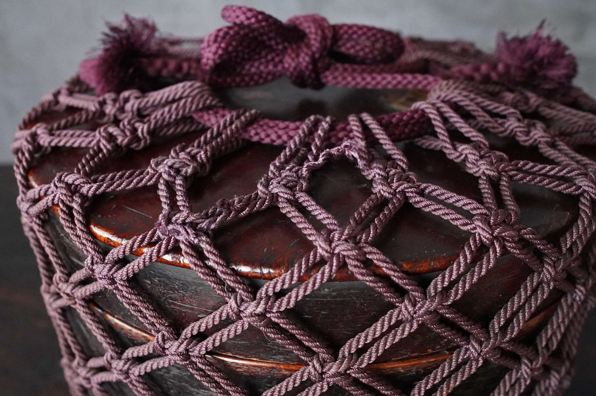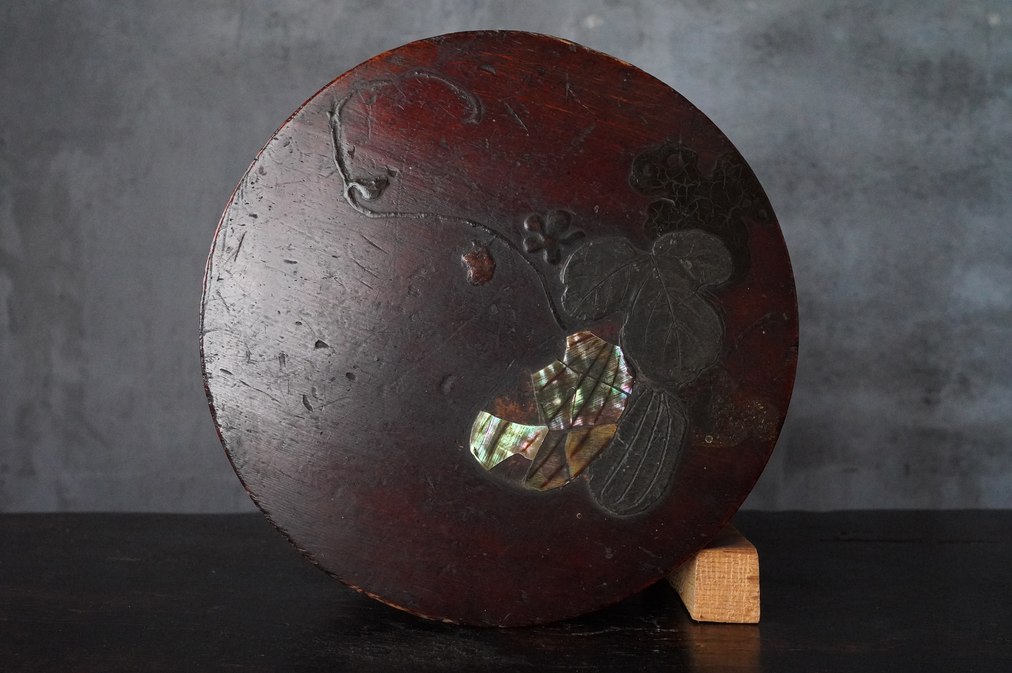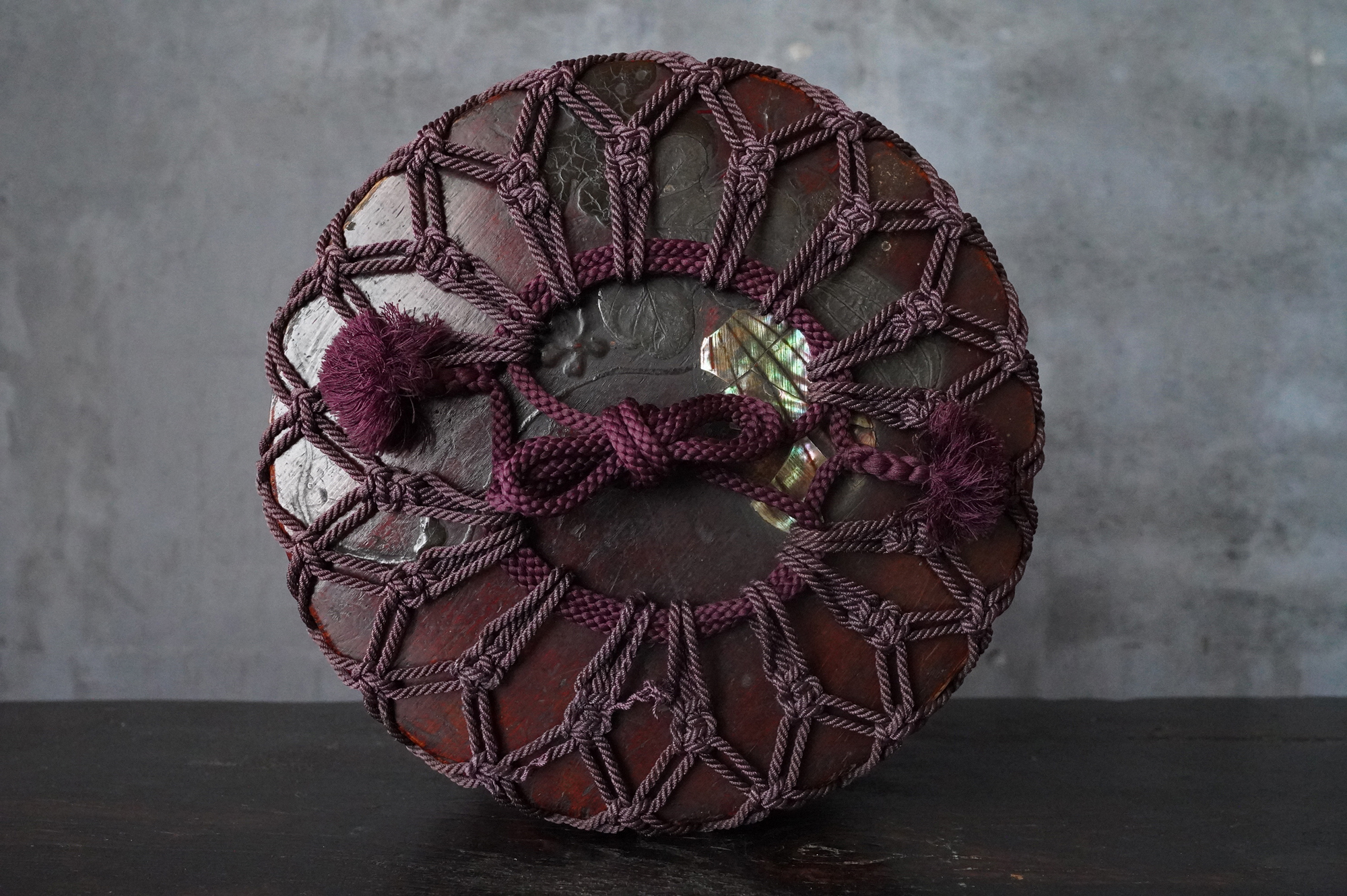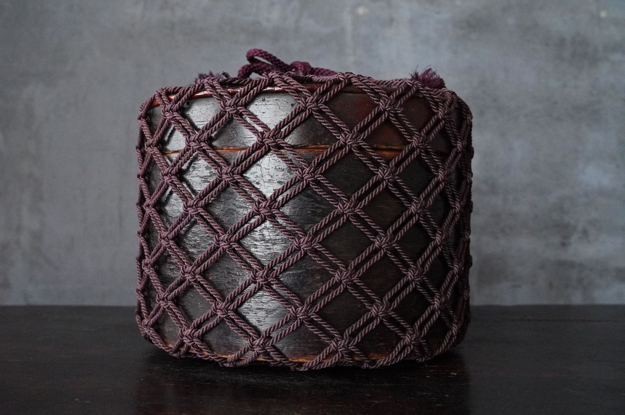 蒔絵、青貝が施された味の良い曲げわっぱに、前所有者が網袋まで誂えております。素朴なものでありますが、非常に品の良いものです。茶碗を入れる箱などコレクションを収納しても良いですし、箱、誂えも含め、そのままでも魅力あるものです。青貝の剥がれ、使用感、網袋のほつれが少々など時代相応の経年変化はございますが、状態は概ね良好、問題なくお使いいただけます。江戸時代。*網袋は昭和に新調されたものでしょう。