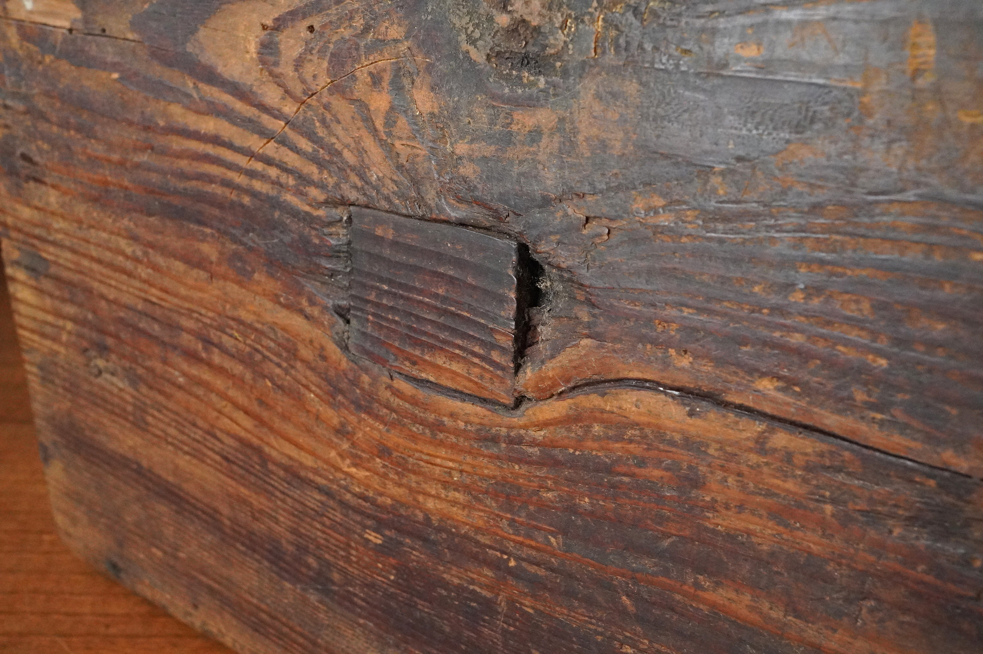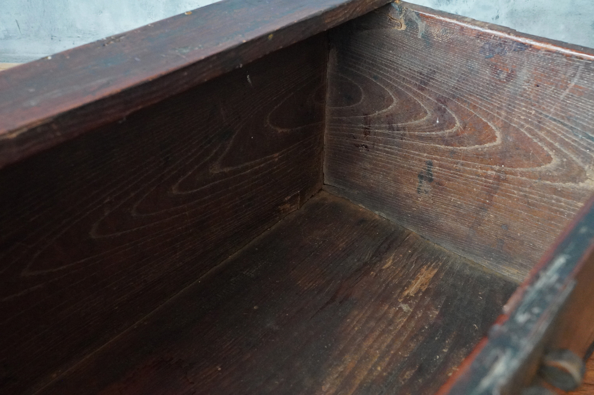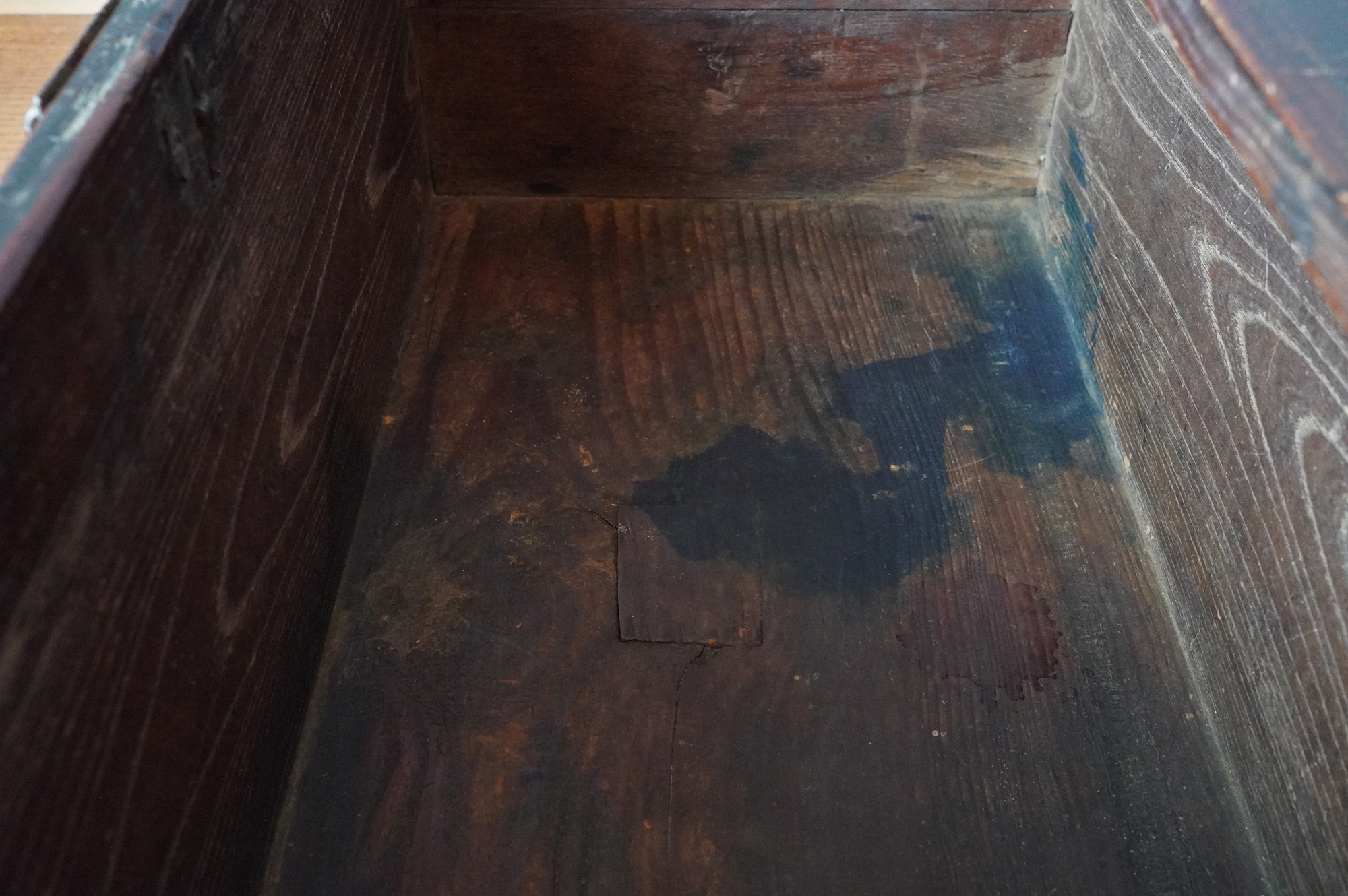 材質は、天板と底板が松材、側面四枚の板が欅材と見られます。李朝時代。
