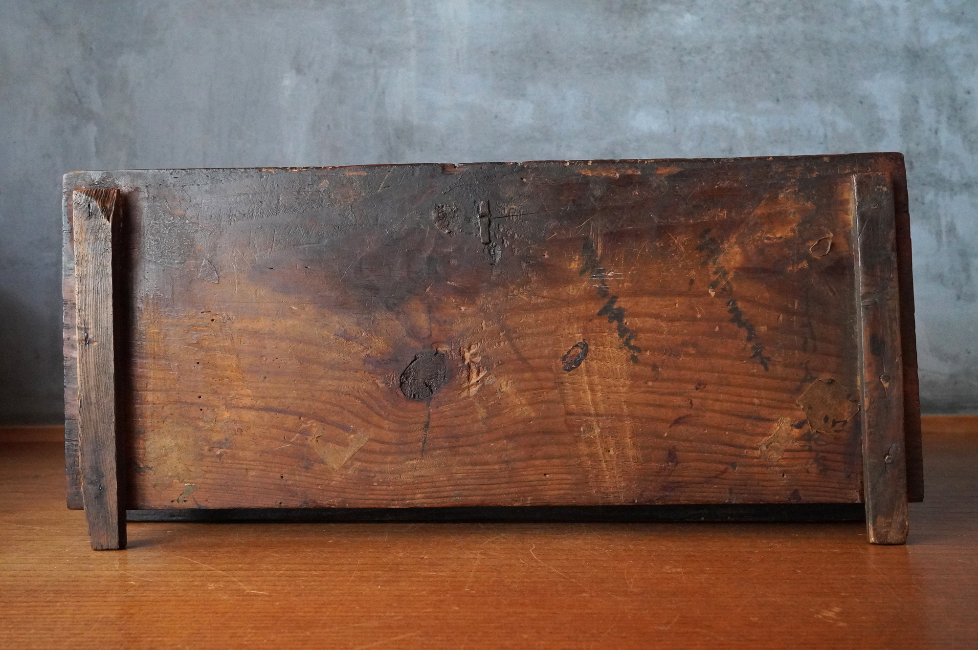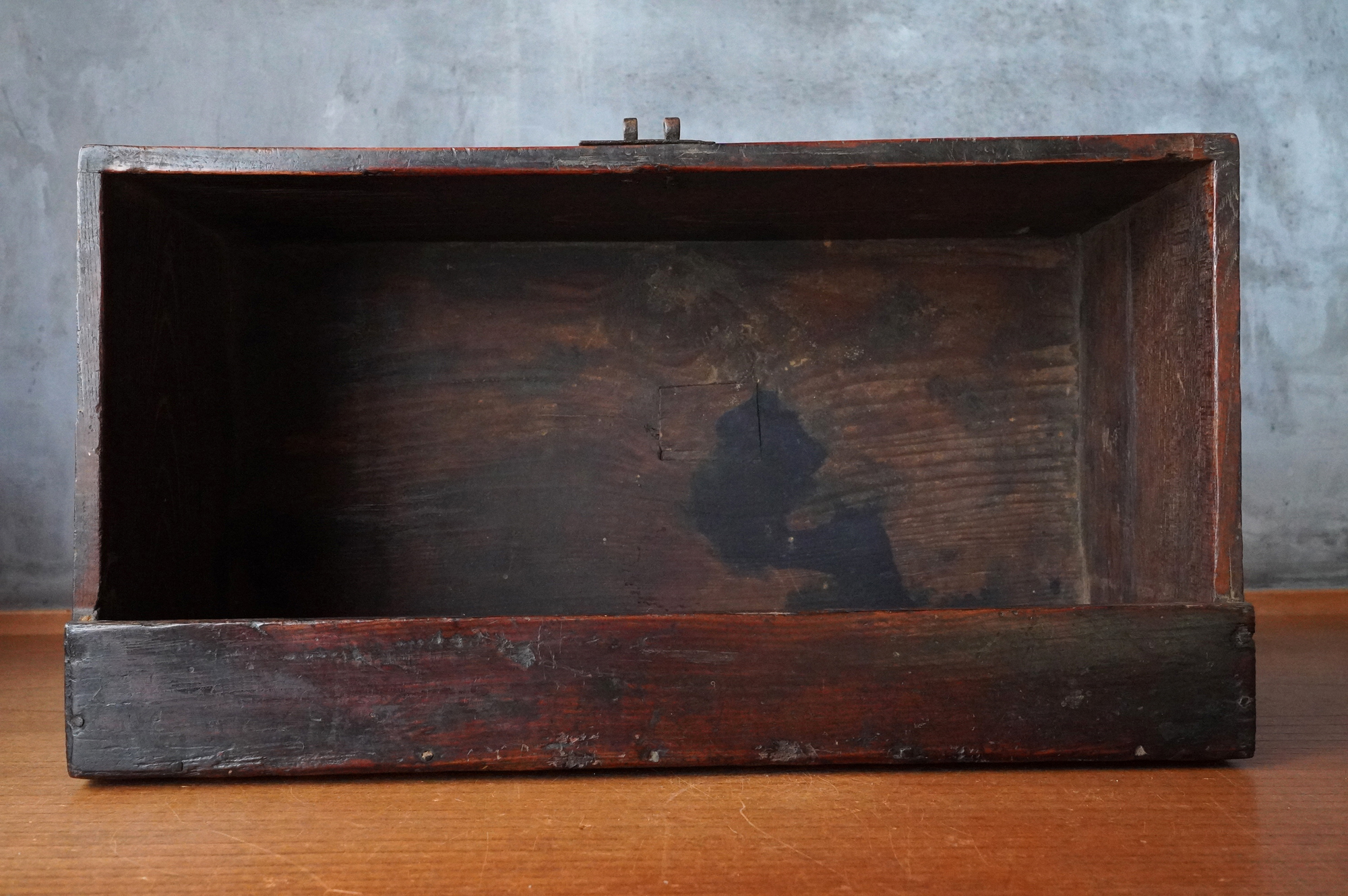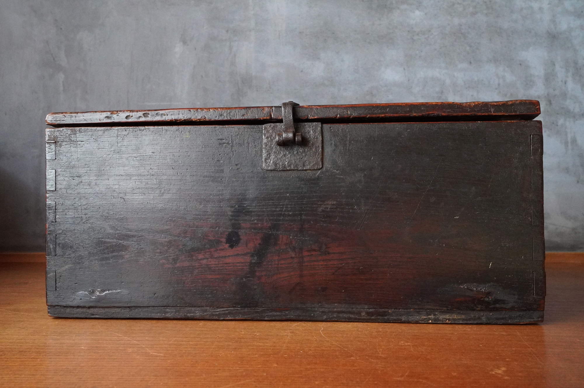 李朝の木箱は「トンケ」と呼ばれ、日本でいう銭箱のようなものです。李朝時代のオリジナルの状態で残るものは希少で、特に装飾を一切施さない素朴な造りは、味わい深く格別の存在感があります。小ぶりなサイズ感で、現代の日本の住空間にもよく調和するでしょう。李朝の箱をお探しの方には、まさに理想的な品ではないでしょうか。