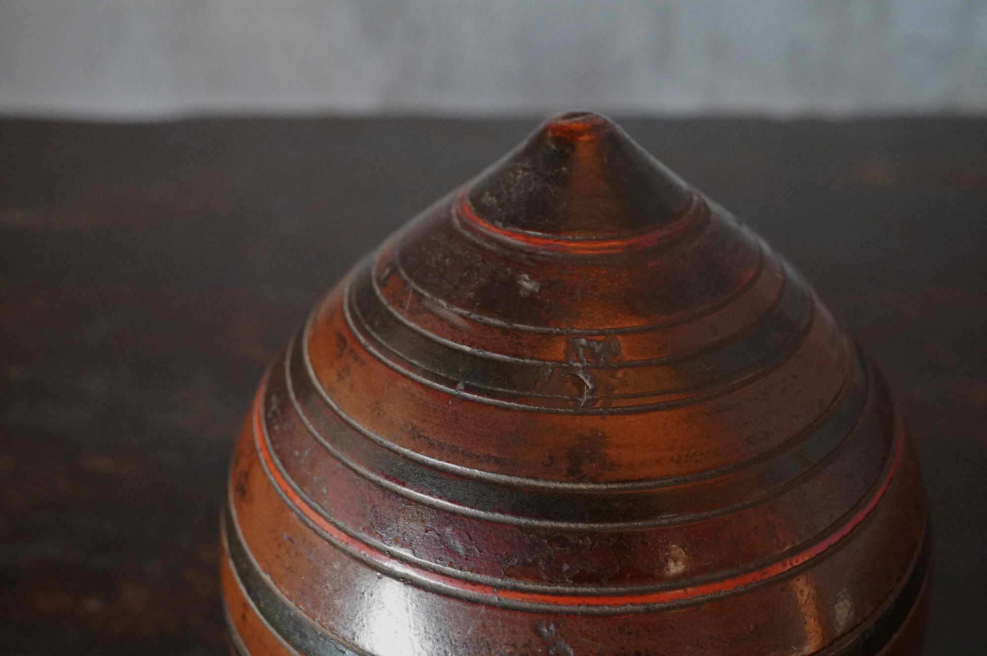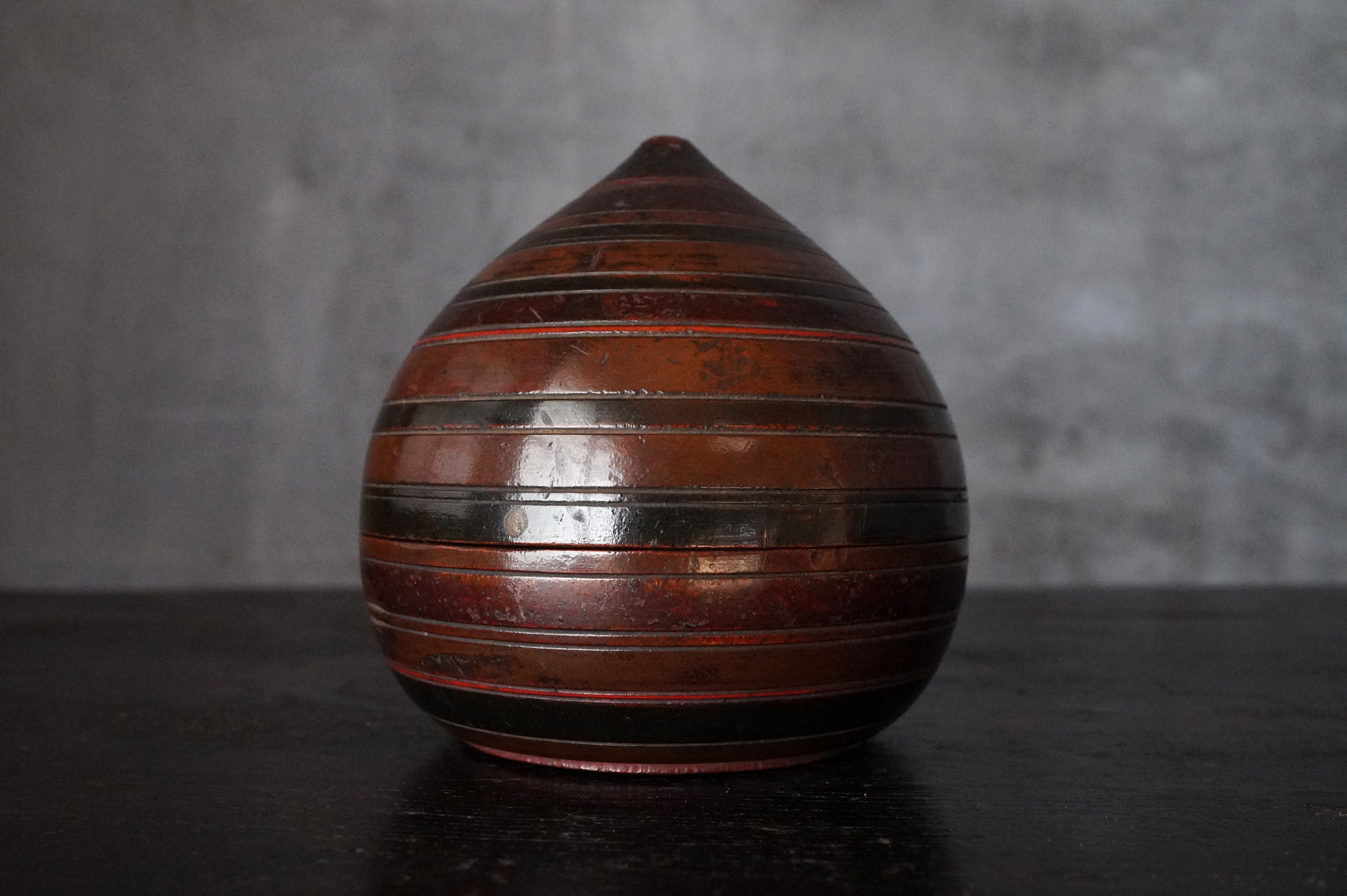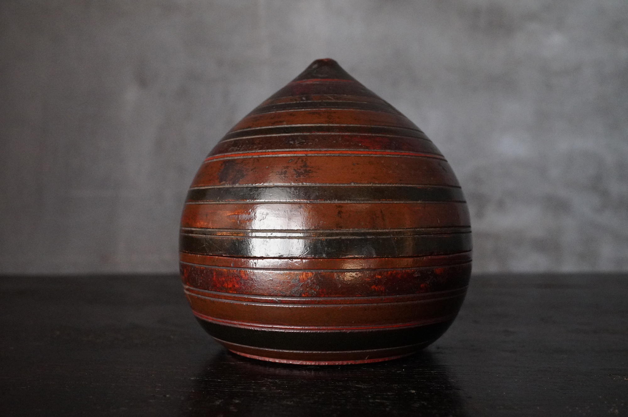 明代に東南アジアおよび中国南部で制作され渡来し、以後、日本でも盛んに写しが作られたと伝わる独楽香合のひとつ。なかでも宝珠形は殊に珍重されてきました。
