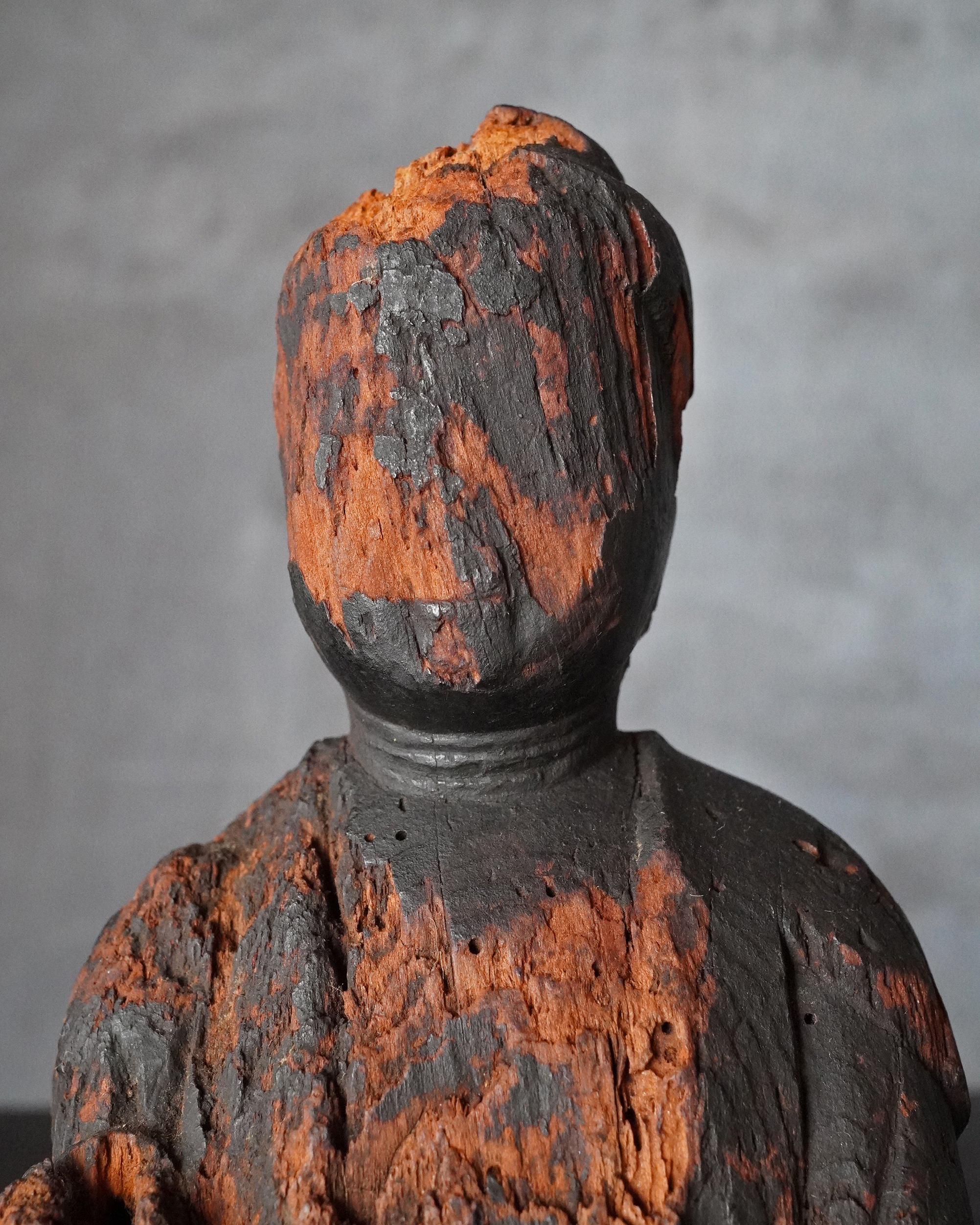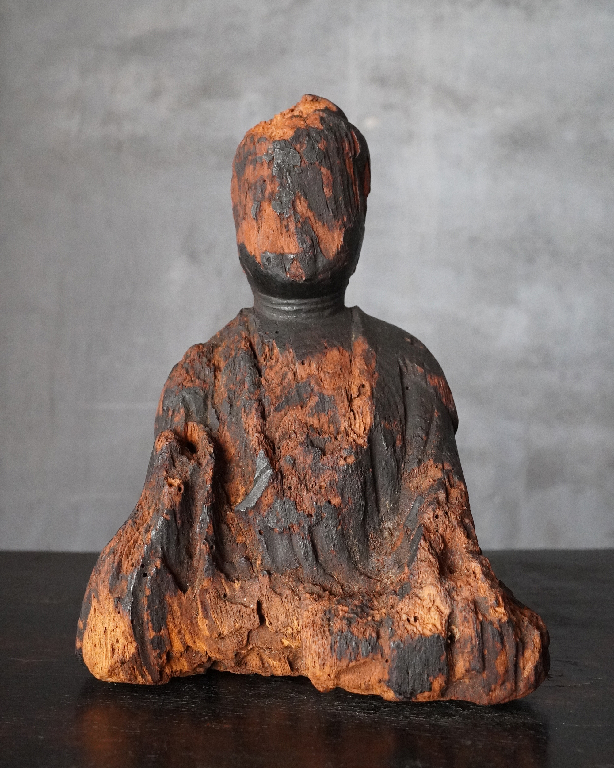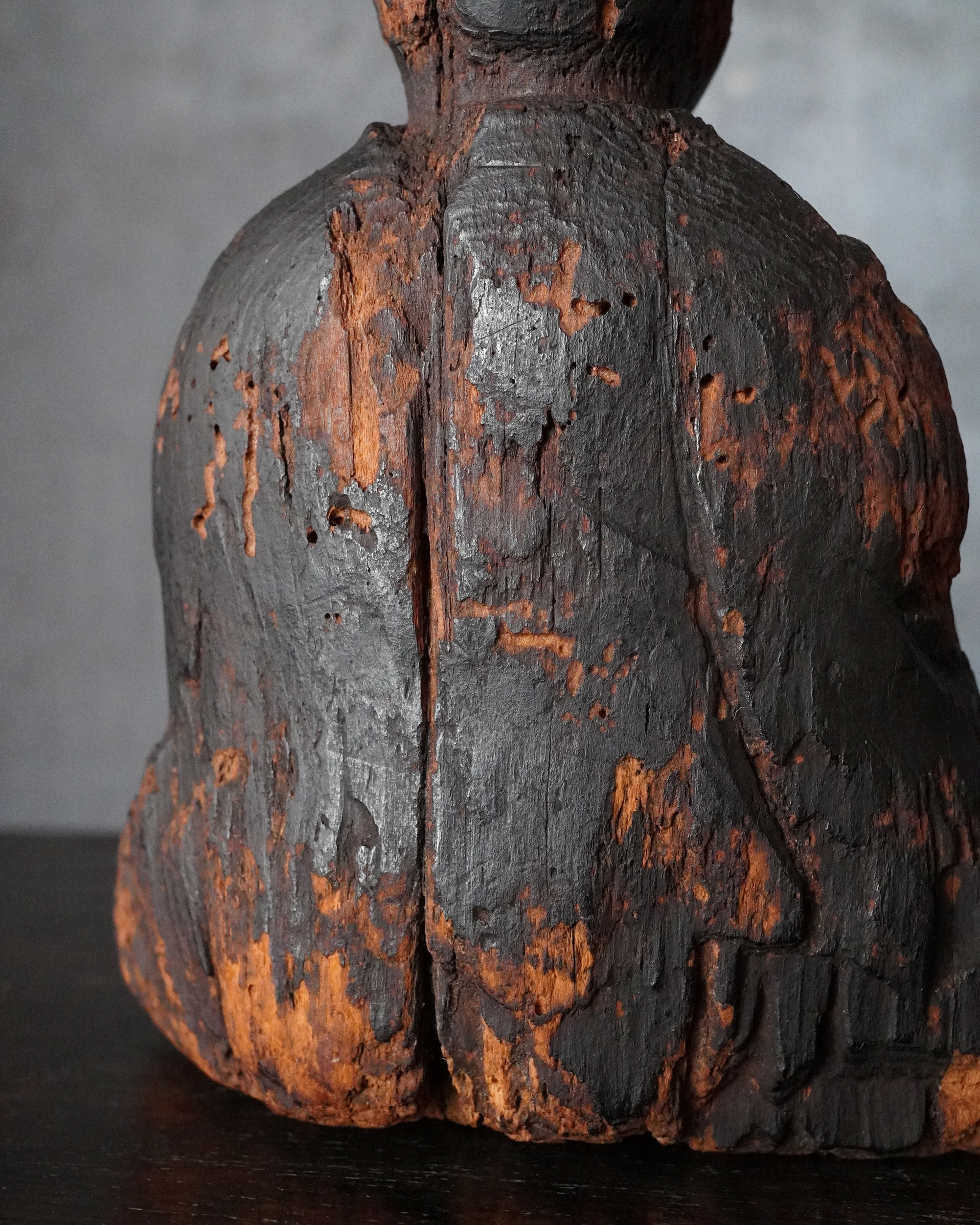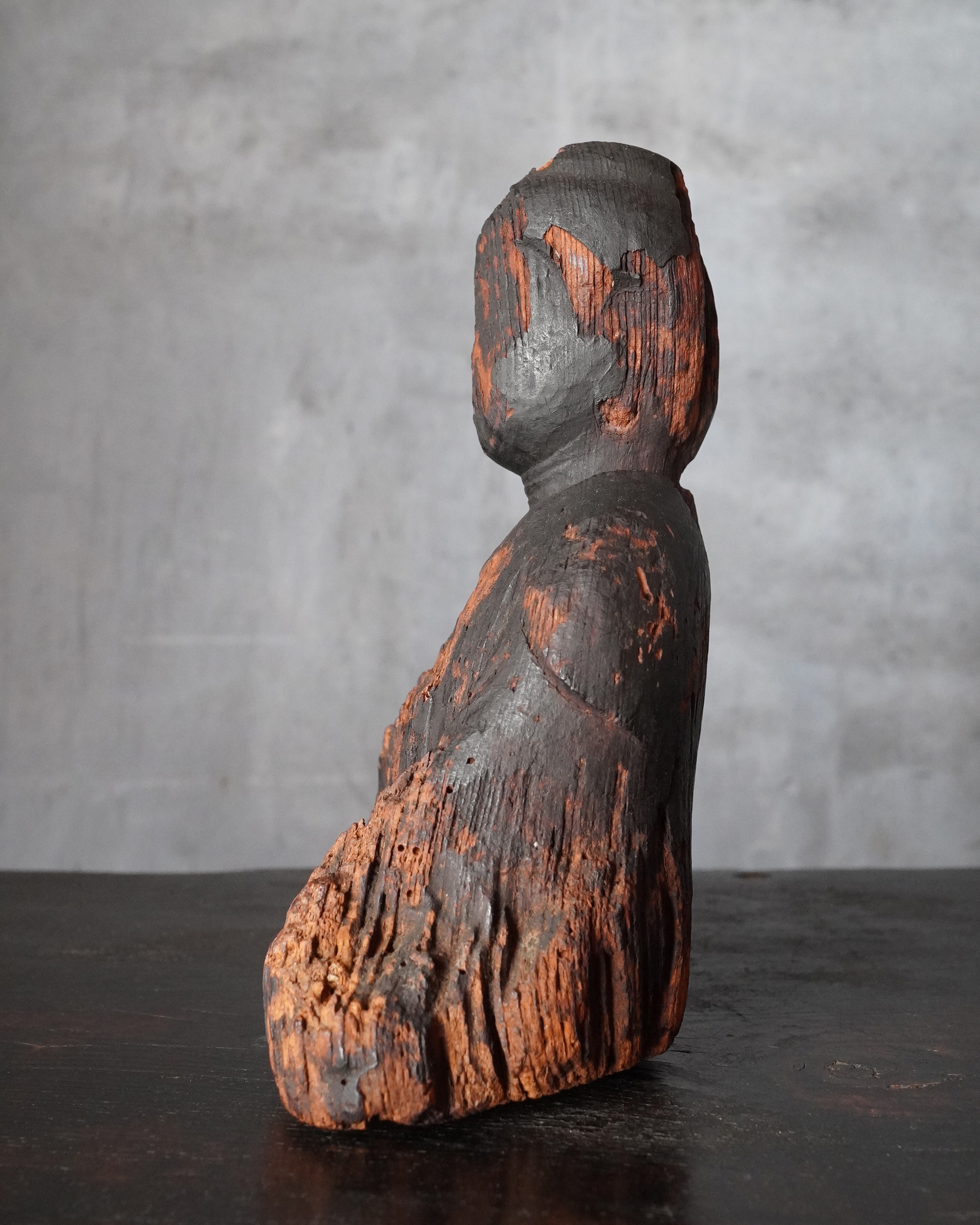 状態は必ずしも良好とは申せませんが、木目が残る彩色が施されていない肌で、痛み免れた部分を拝見する限り、いわゆる民間仏の類ではなく、本地仏として造立されたものではないかと拝察します。