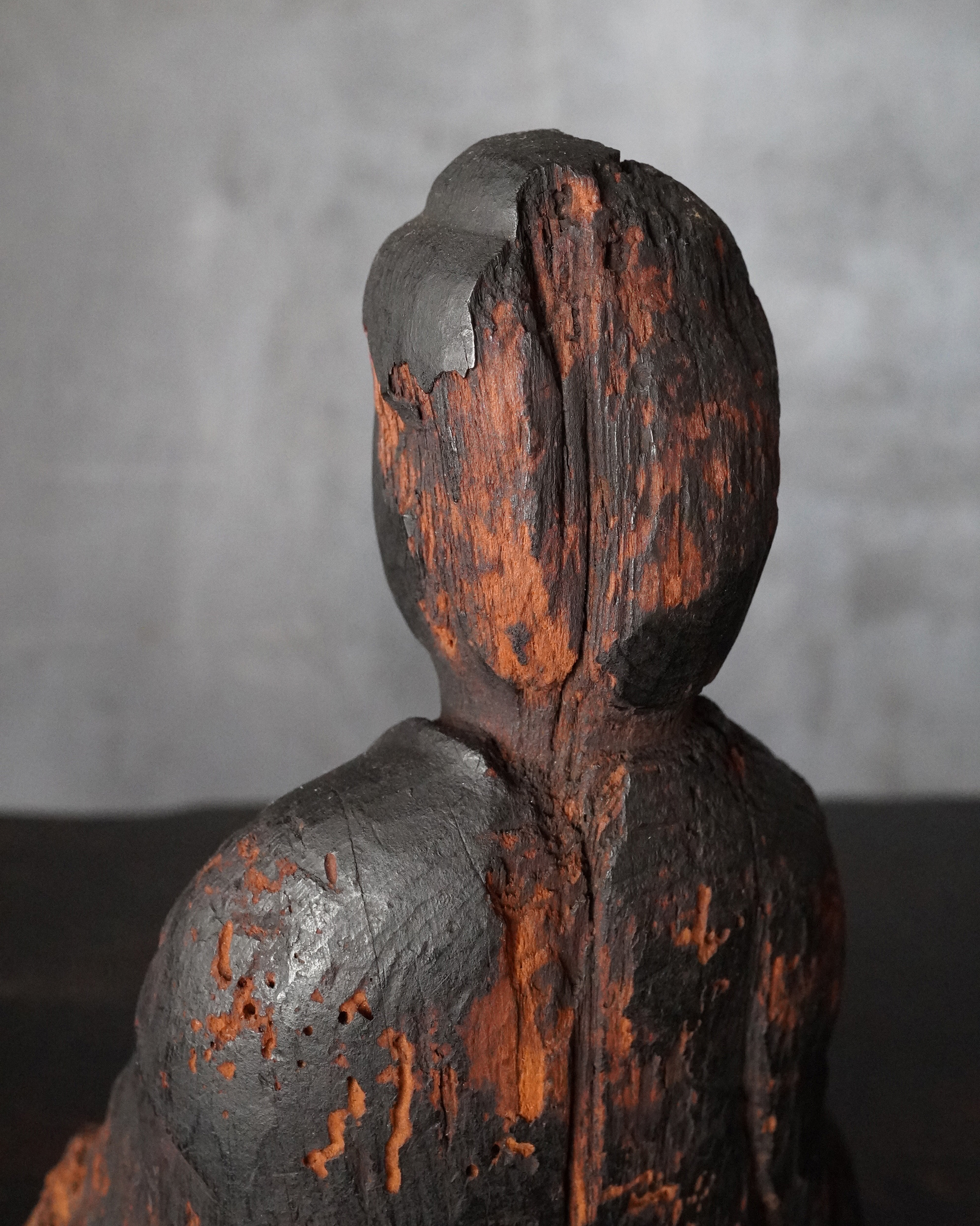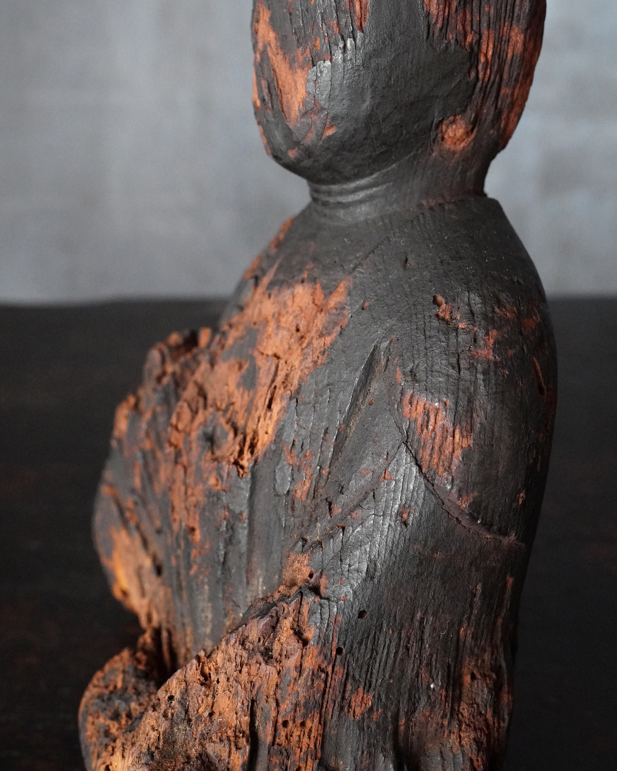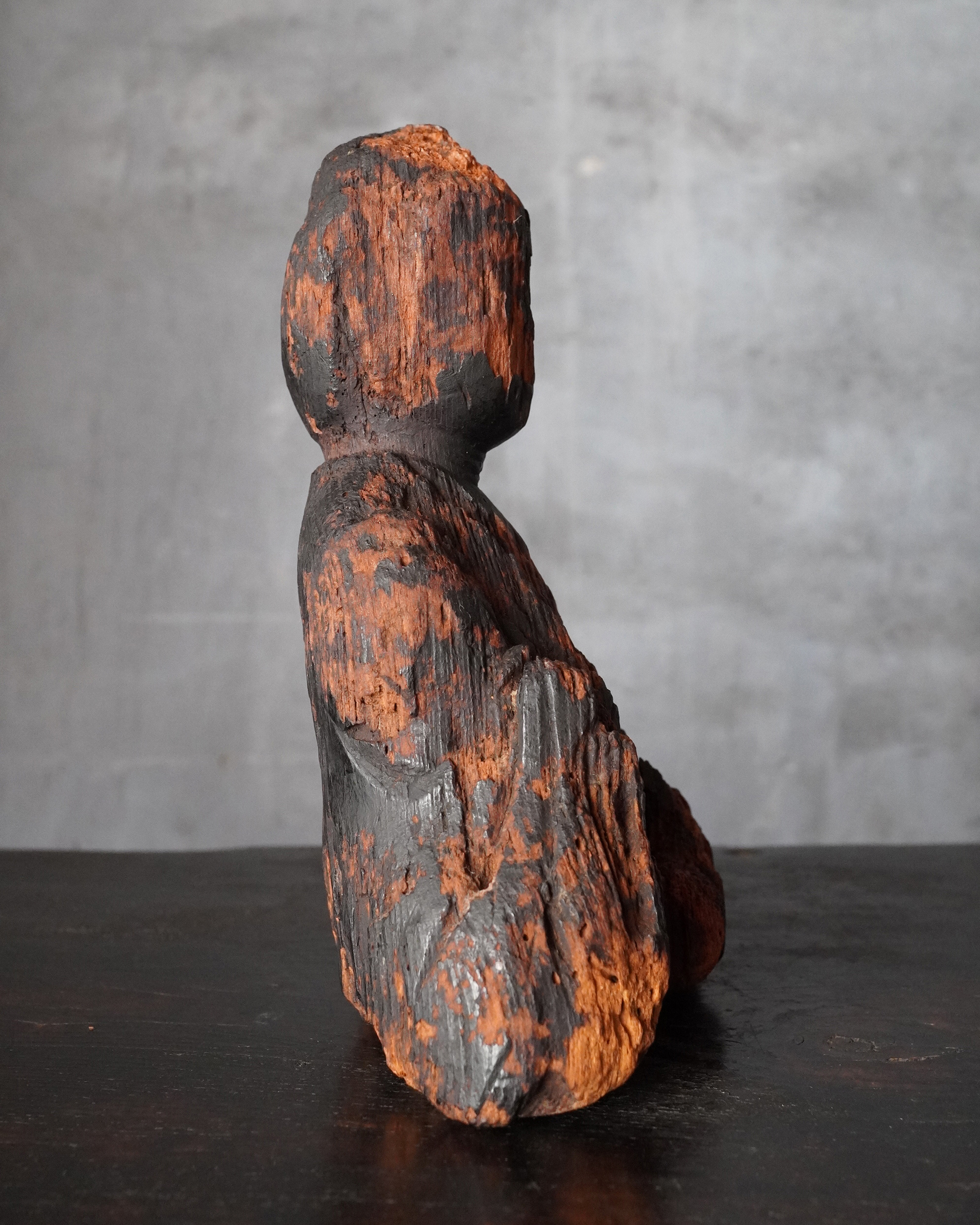 いわゆる「流れ仏」と云われるものですが、小ぶりながらも端正な坐像で、仏でありながらどこか神性を感じさせる気配を湛えております。その素朴にして凛とした佇まいこそ、本像最大の魅力ではないでしょうか。
