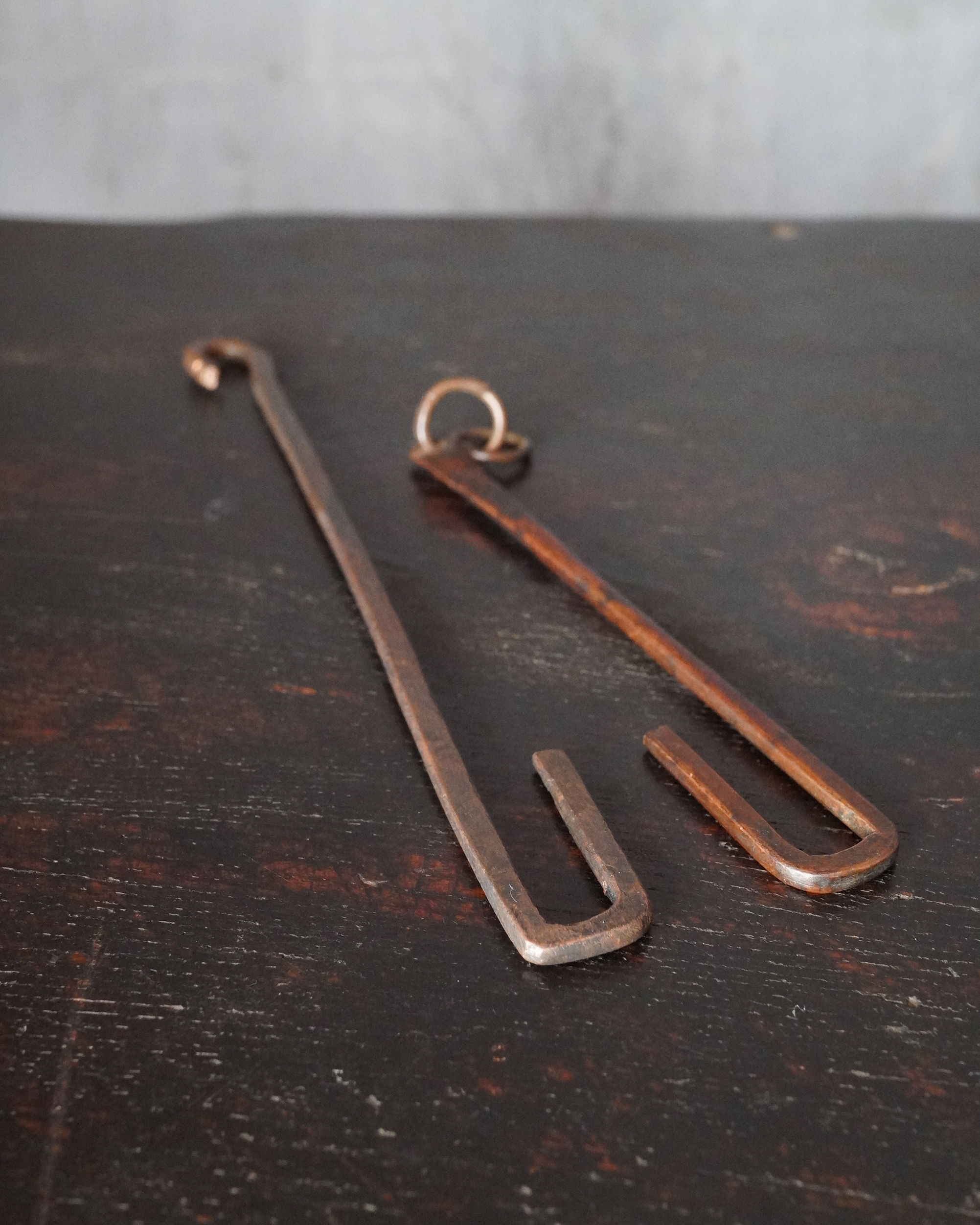 本体 縦 8.5 横 13.5 高さ 10、 釣り金具2本 幅 1.5 長さ 12.5、18.5(cm)