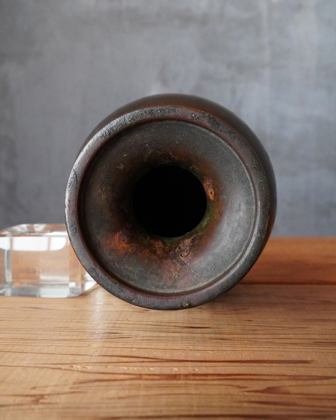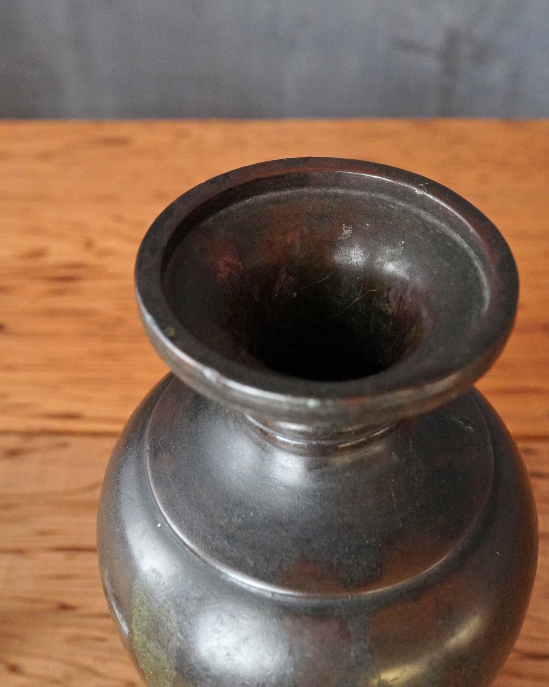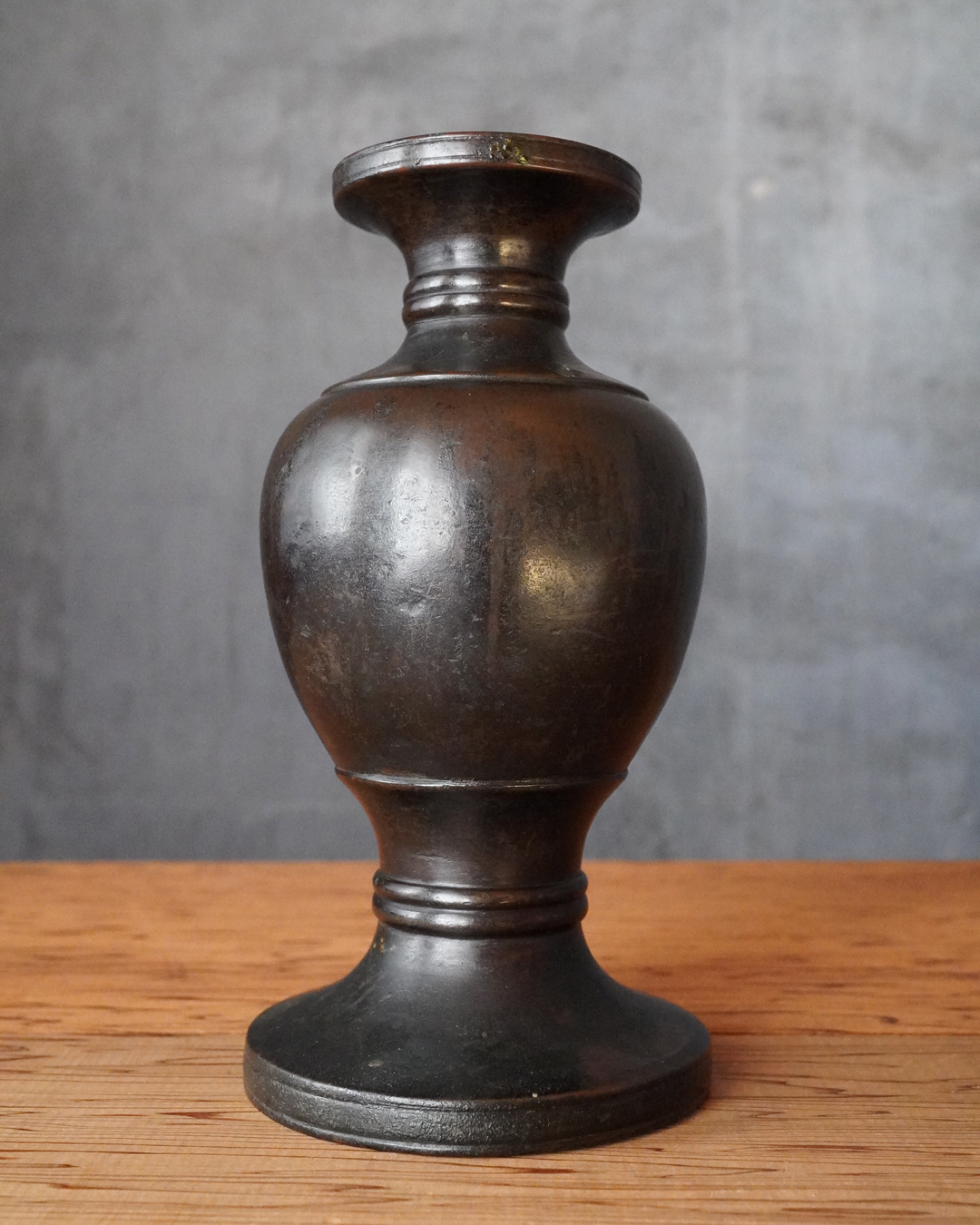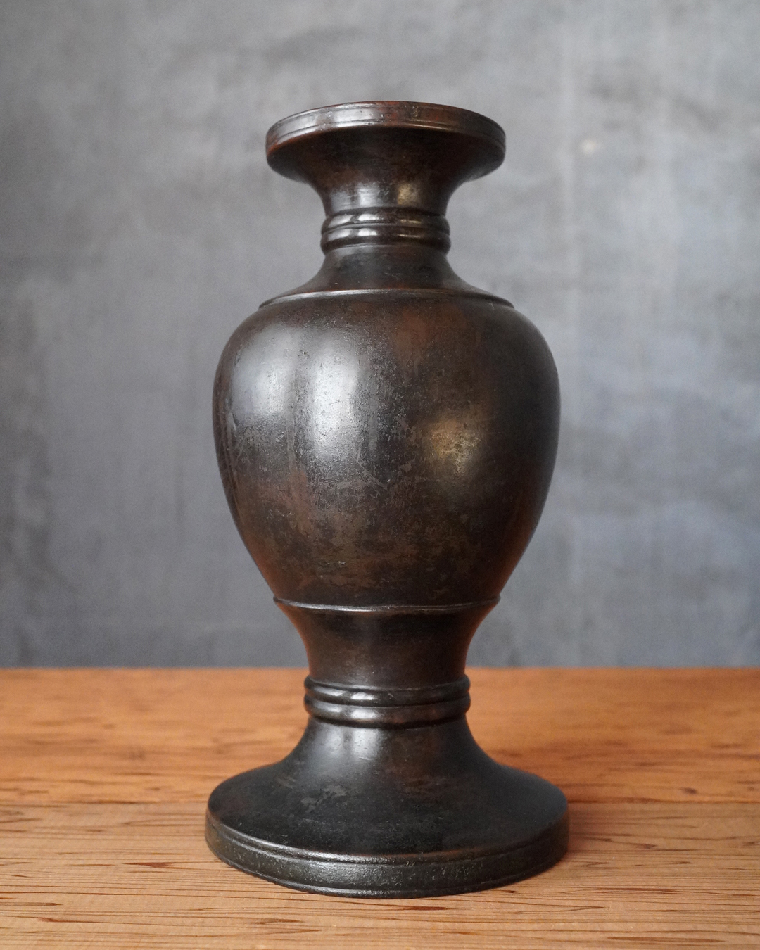 すらりとした姿形は、一般的な作例に比べてすっきりとした印象があり、現代の空間にもよく馴染みます。花を選ばず受け入れる懐の深さも備えています。時代相応の経年変化がございますので充分ご確認の上ご注文下さい。