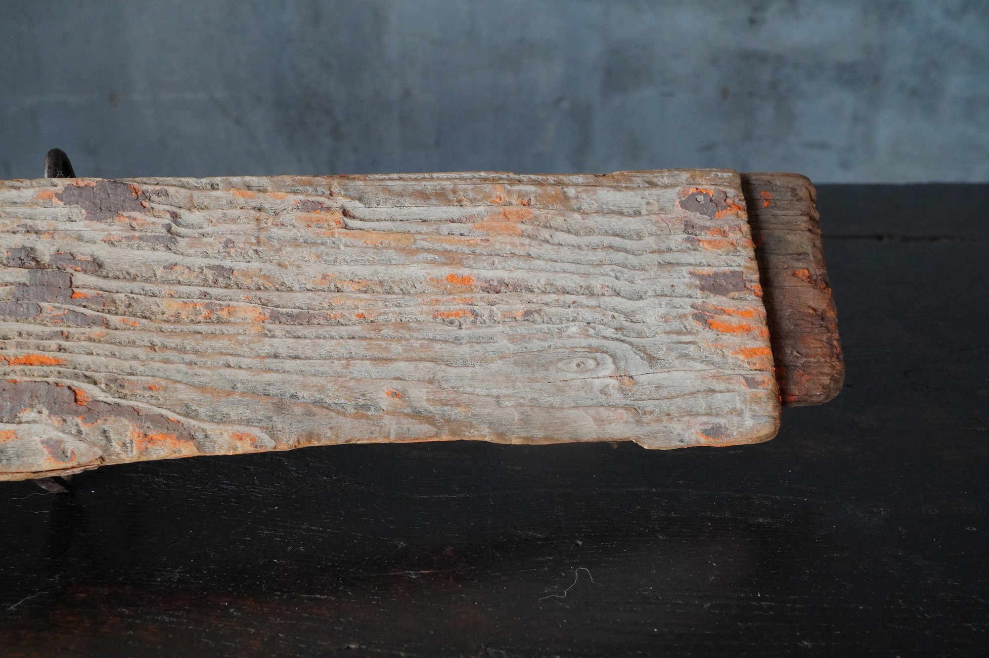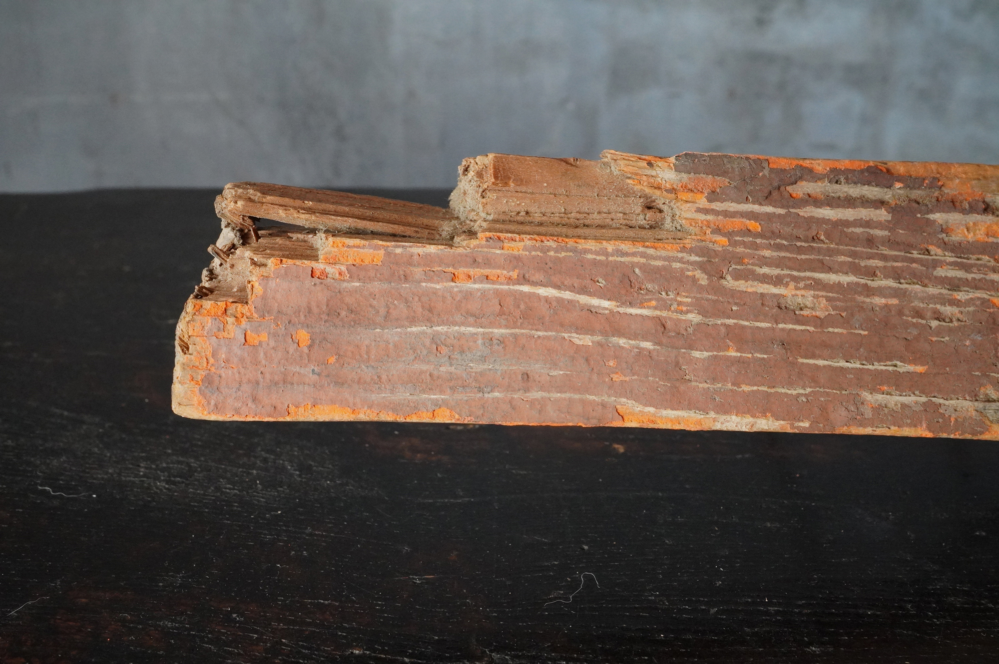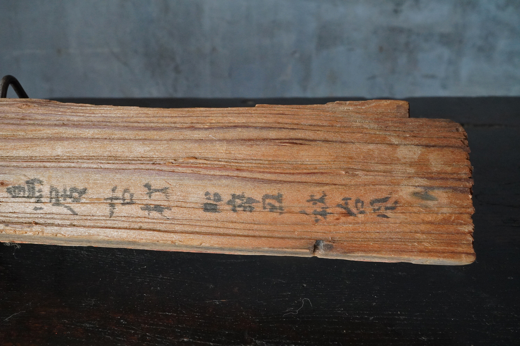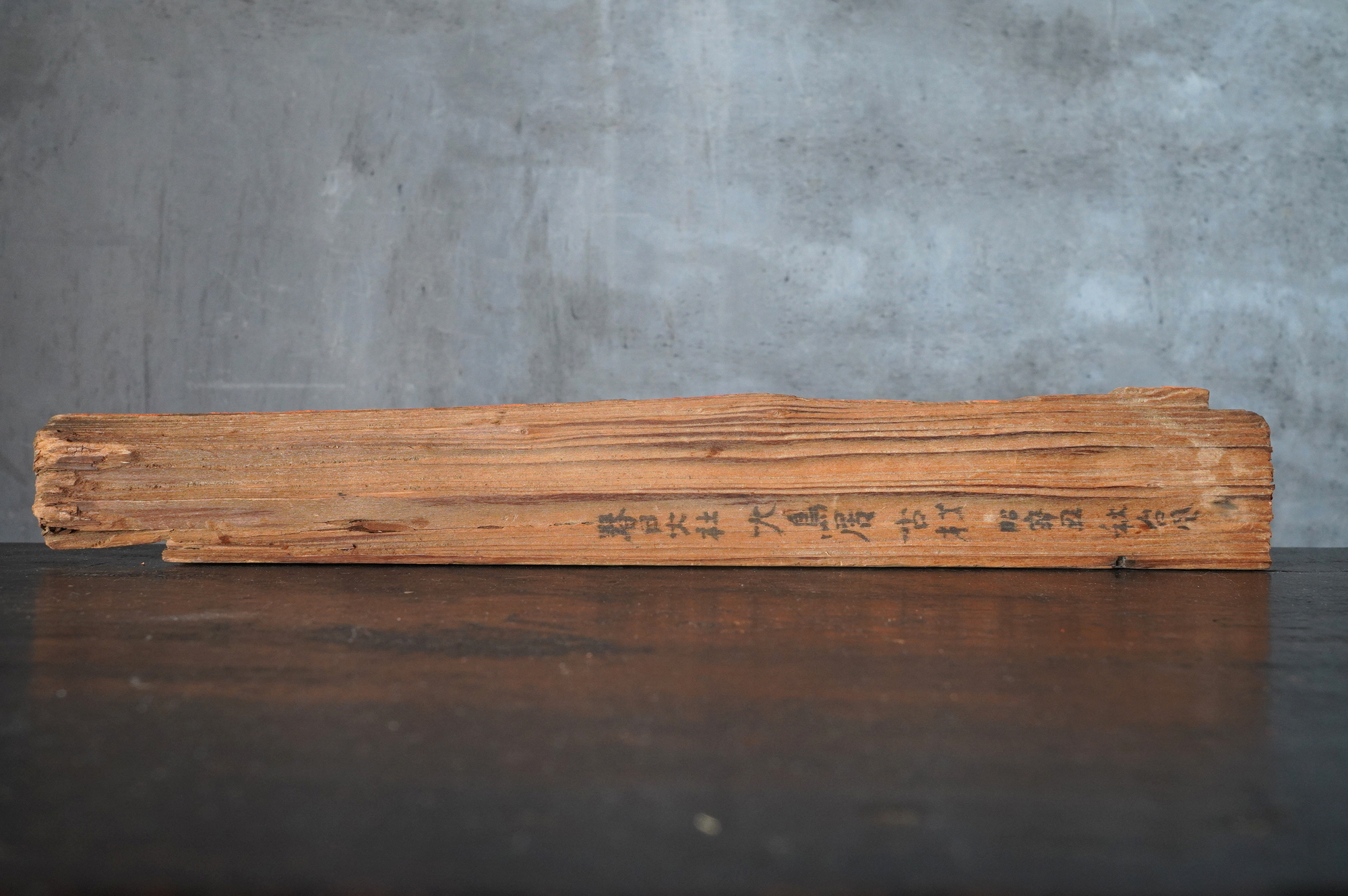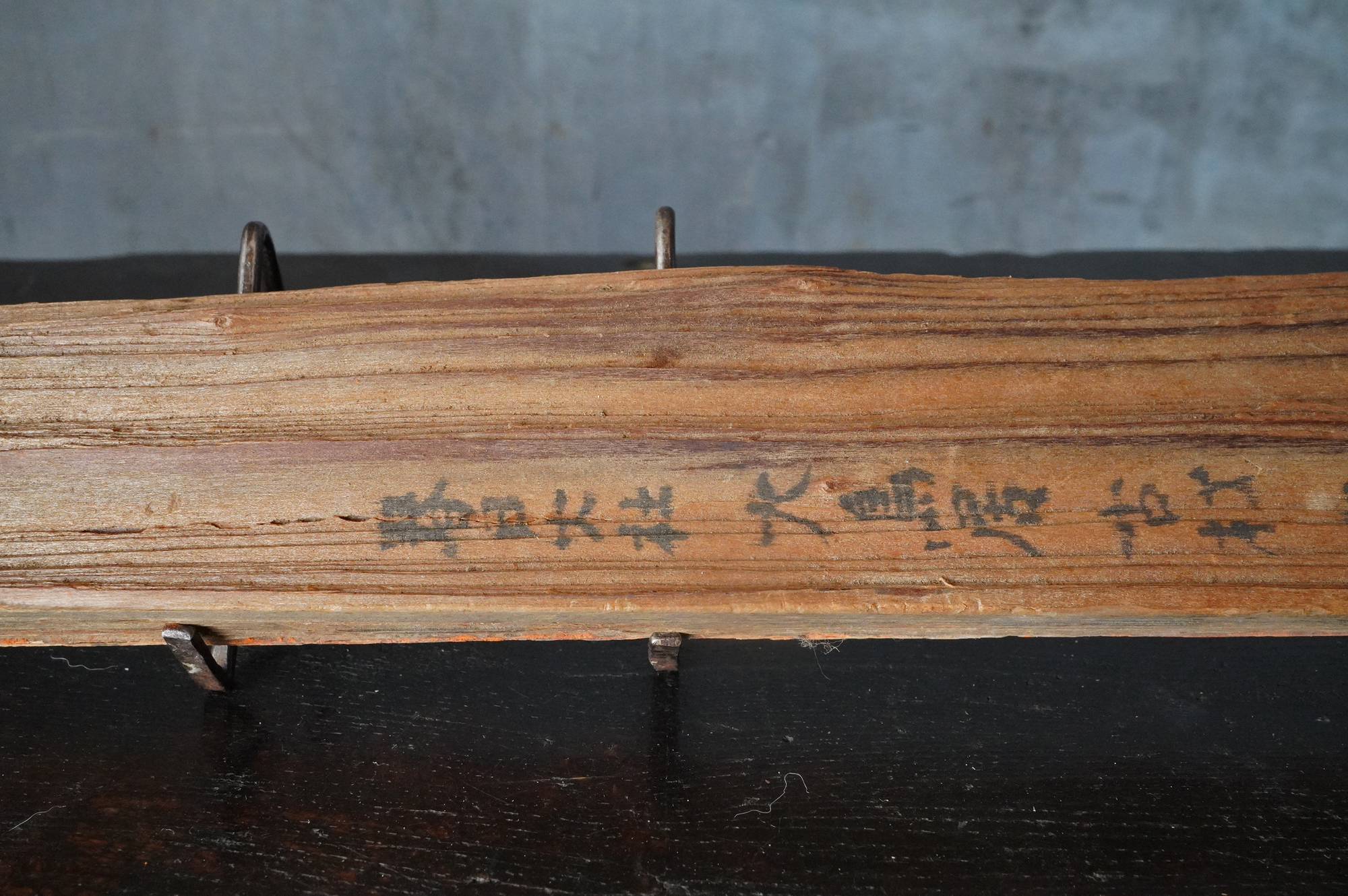 裏面には「春日大社大鳥居古材 昭〇〇 台風秋」との墨書が残されており、昭和三十六年の第二室戸台風による被害修復の折に生じた材と考えて良いでしょう。自然災害を経て残ったものであることも意味がるように感じます。