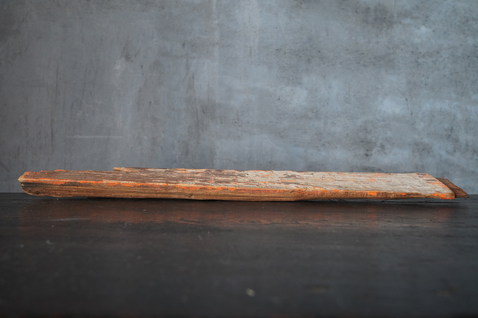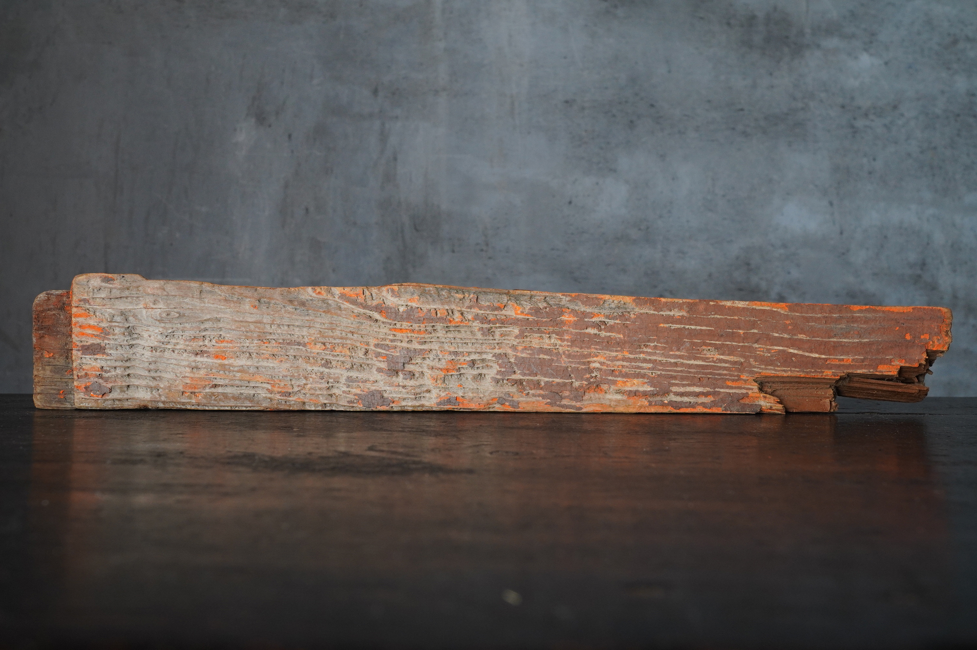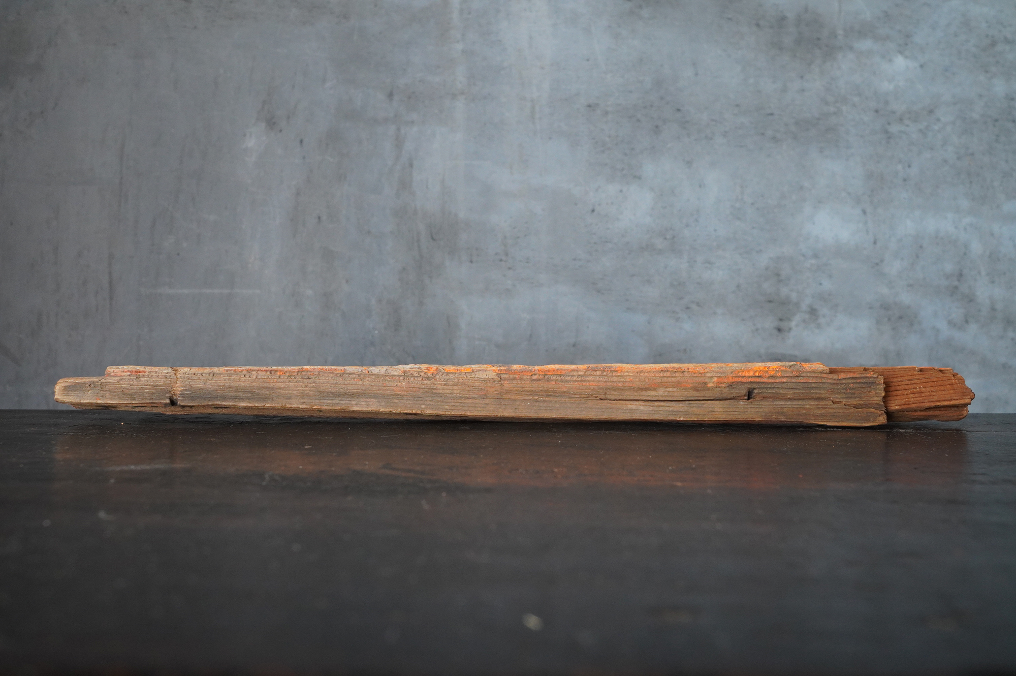 千二百年余の歳月を重ね、日本の歴史・信仰・自然の聖域として鎮まり続ける春日大社。その境内に立つ大鳥居に用いられていた古材。小品ながら、日本人であれば、そこに宿る気配に自ずと心を動かされるのではないでしょうか。小口に新たな加工や補修の痕はなく、自然の力により生じた破損をそのまま留めている点が、かえって神聖さを際立たせており、あるがままを受け入れることの大切さを感じさせてくれるような気がします。