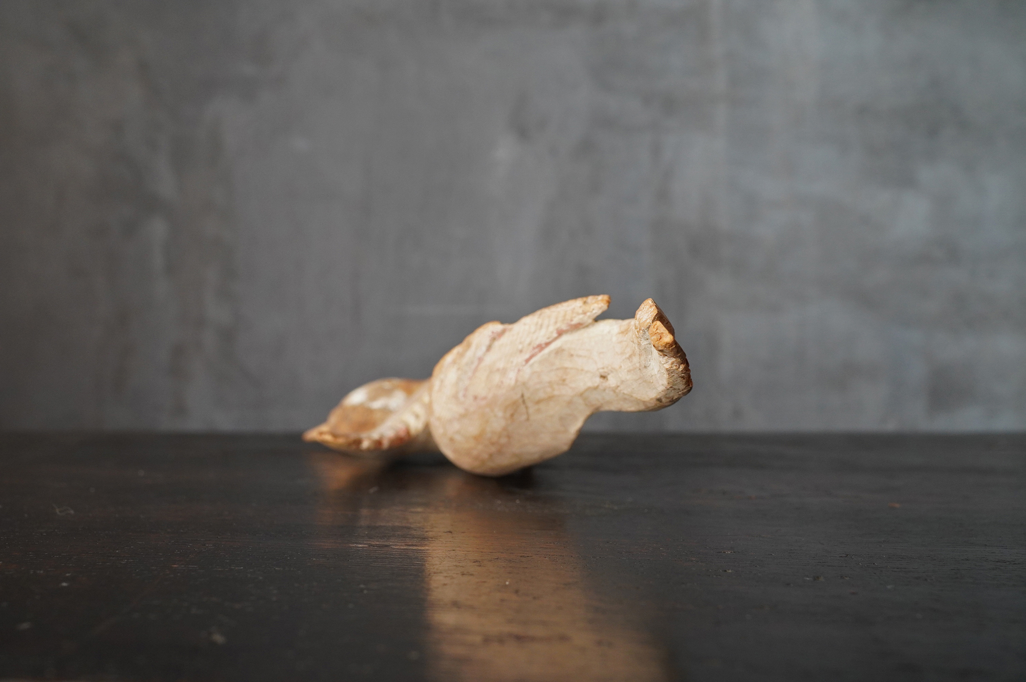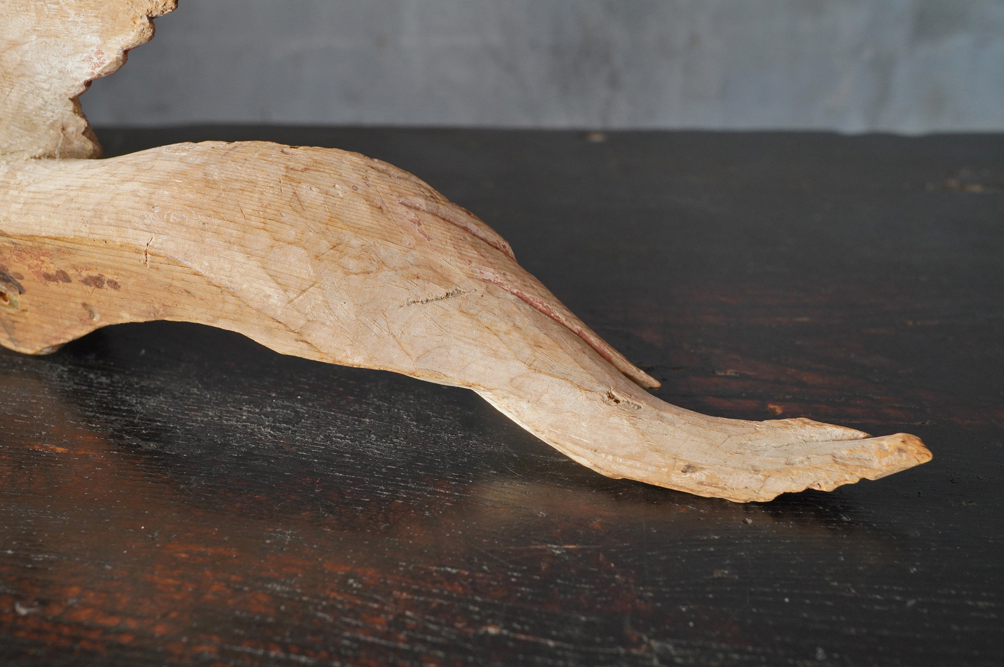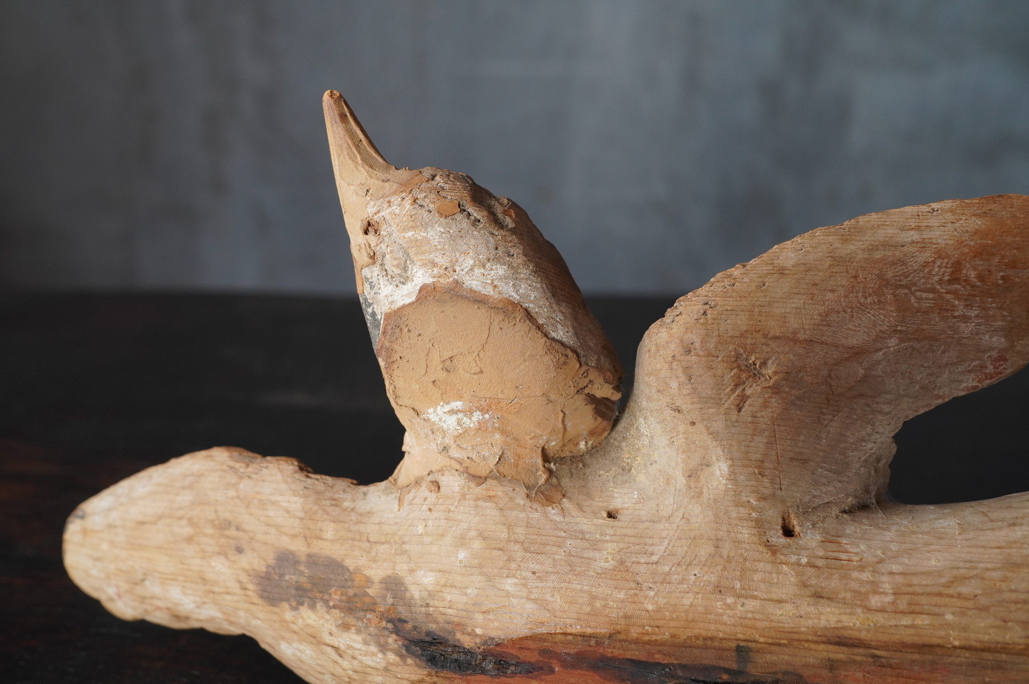 立体的に彫り出された姿には、単なる意匠を超えた強い造形意識が感じられ、用いられた技法や木肌に刻まれた経年の趣からも、その制作年代が相応に遡るものであることは疑いありません。