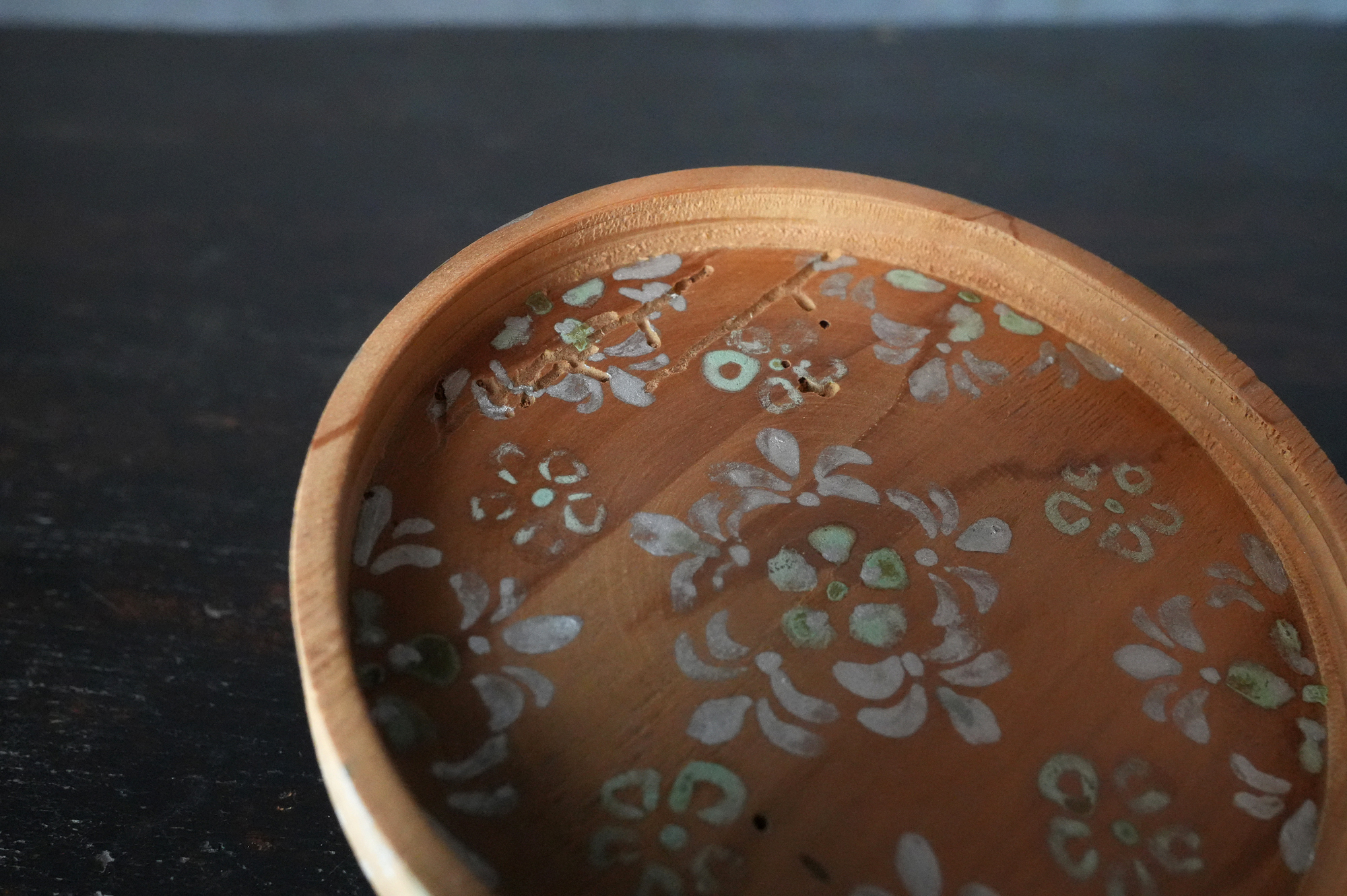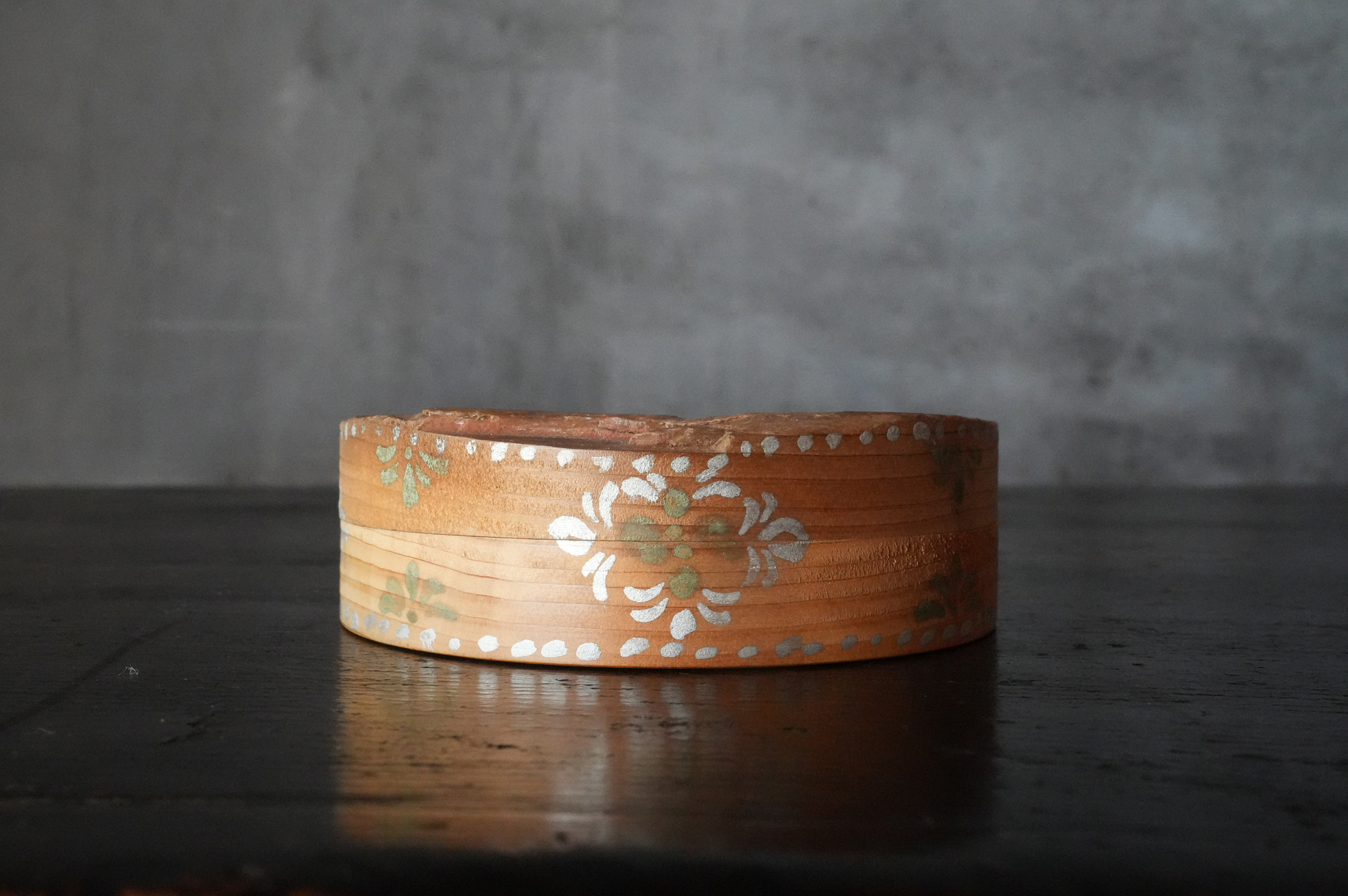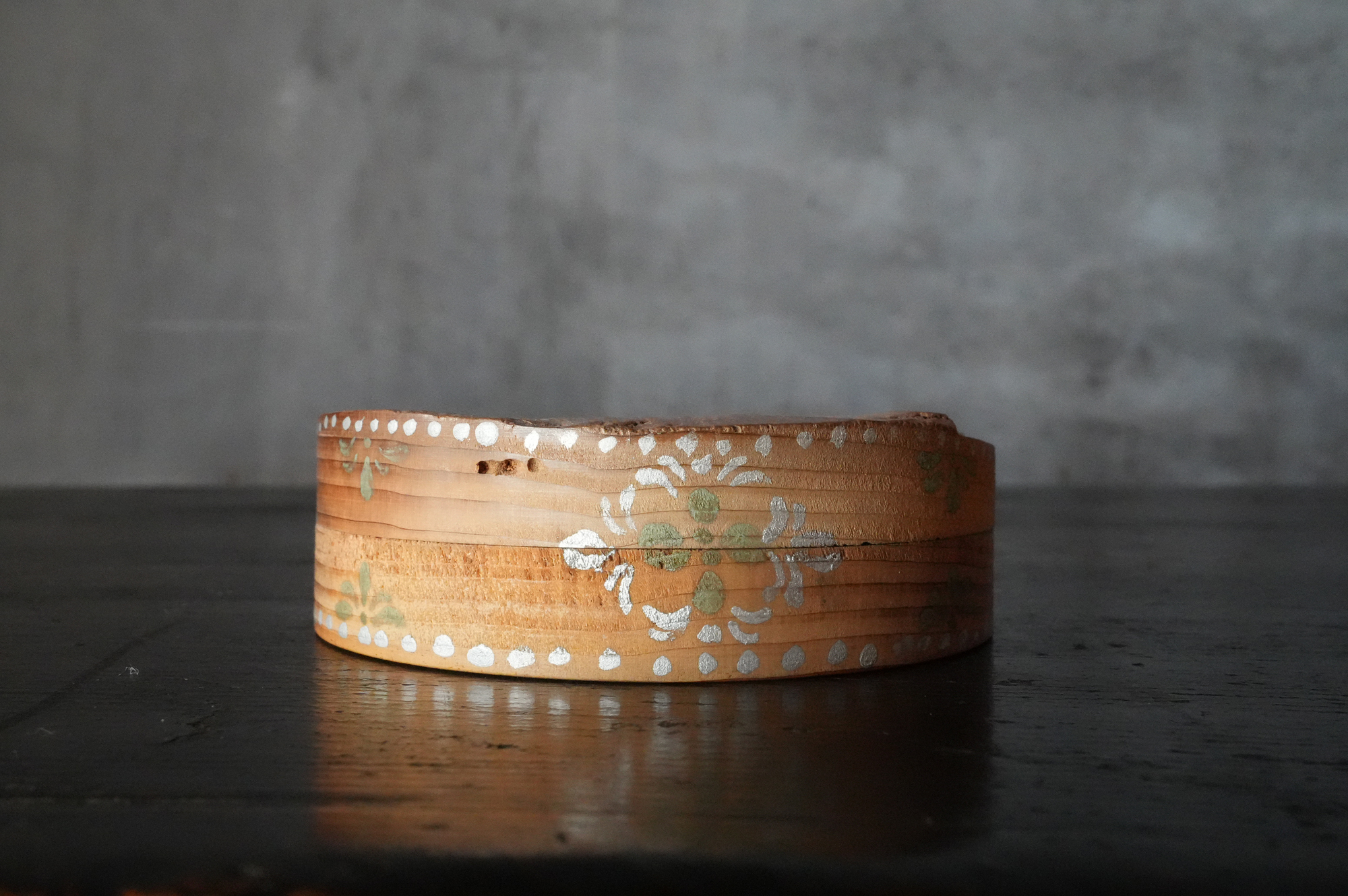 法隆寺古材で造られた香合は明治時代に活躍した奈良の漆芸家 大西勇斎作品法隆寺の古材を用いて作られた香合で、明治期に活躍した奈良の漆芸家・大西勇斎の作。古材製の香合は少なからず見られますが、本品は上面に古材そのものの枯れた風合いを生かしつつ、切断部の小口部分には天平時代を思わせる端正な文様を施しており、いかにも奈良物らしい気品と趣を備えています。香合としての使用はもちろん、小振りな金工品や金銅仏を据える台としても映え、取り合わせの楽しみを広げてくれるでしょう。状態は概ね良好で、明治工芸ならではの確かな仕事が感じられます。明治時代。供箱。