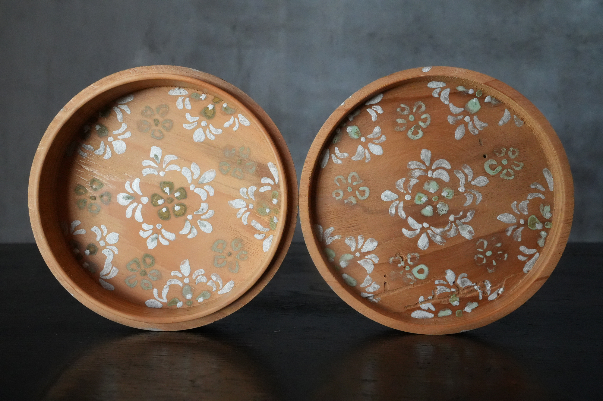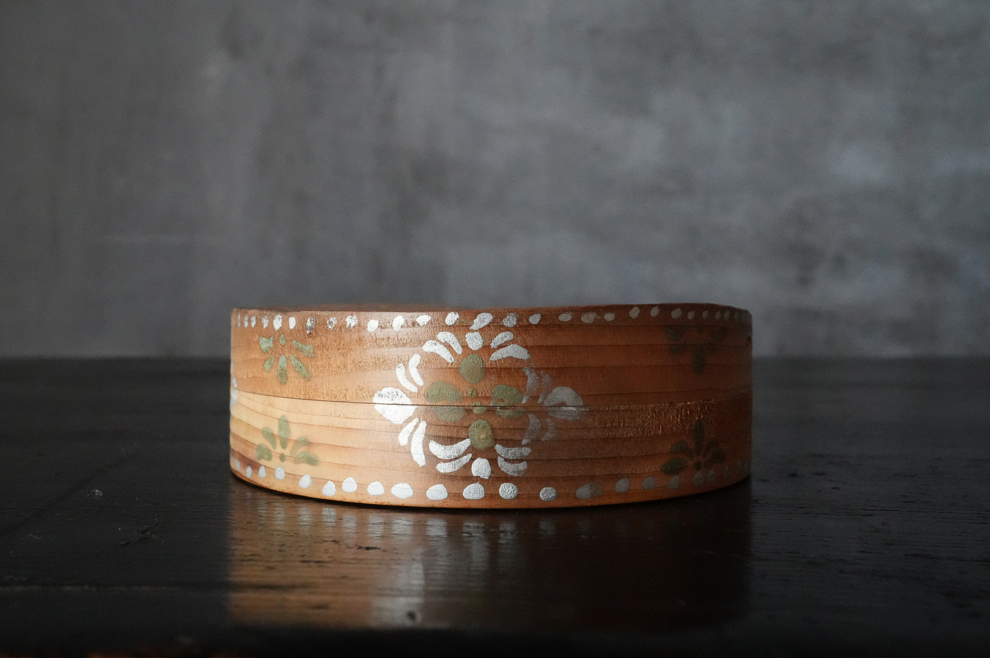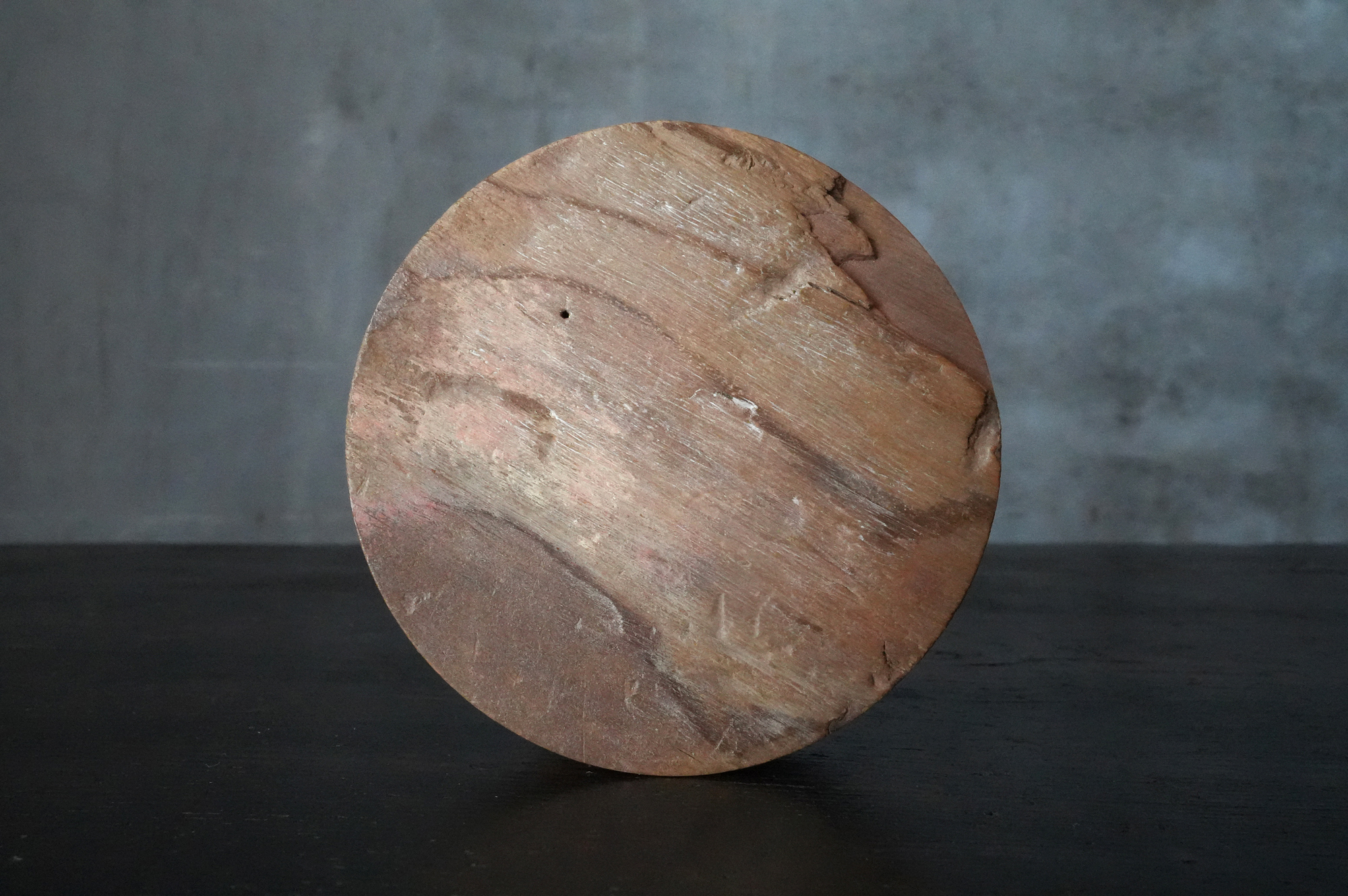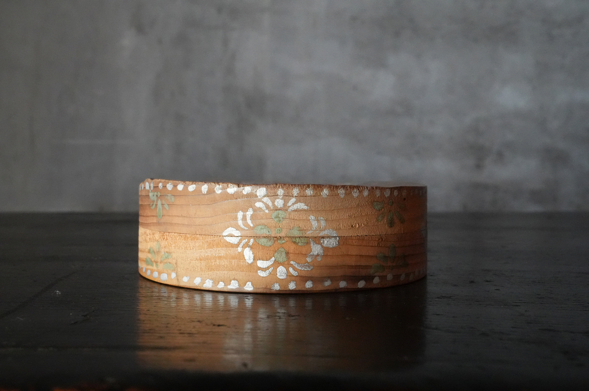 法隆寺古材で造られた香合は明治時代に活躍した奈良の漆芸家 大西勇斎作品法隆寺の古材を用いて作られた香合で、明治期に活躍した奈良の漆芸家・大西勇斎の作。古材製の香合は少なからず見られますが、本品は上面に古材そのものの枯れた風合いを生かしつつ、切断部の小口部分には天平時代を思わせる端正な文様を施しており、いかにも奈良物らしい気品と趣を備えています。香合としての使用はもちろん、小振りな金工品や金銅仏を据える台としても映え、取り合わせの楽しみを広げてくれるでしょう。状態は概ね良好で、明治工芸ならではの確かな仕事が感じられます。明治時代。供箱。