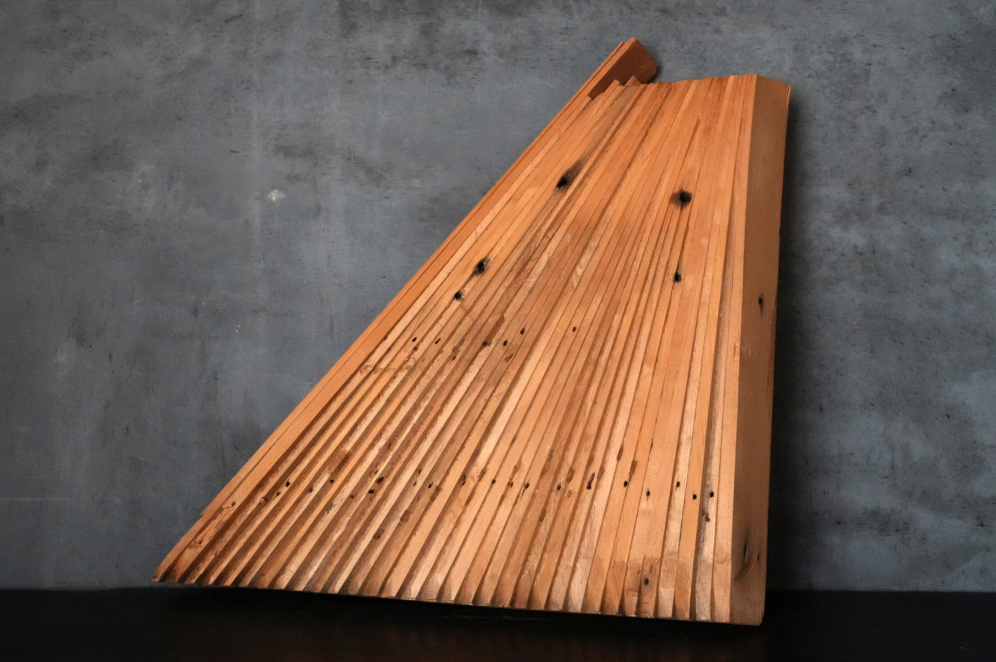 おそらくは改修などの折に、縁のある方々へ頒たれたものではないかと推察されます。なかなかの存在感がある古材です。