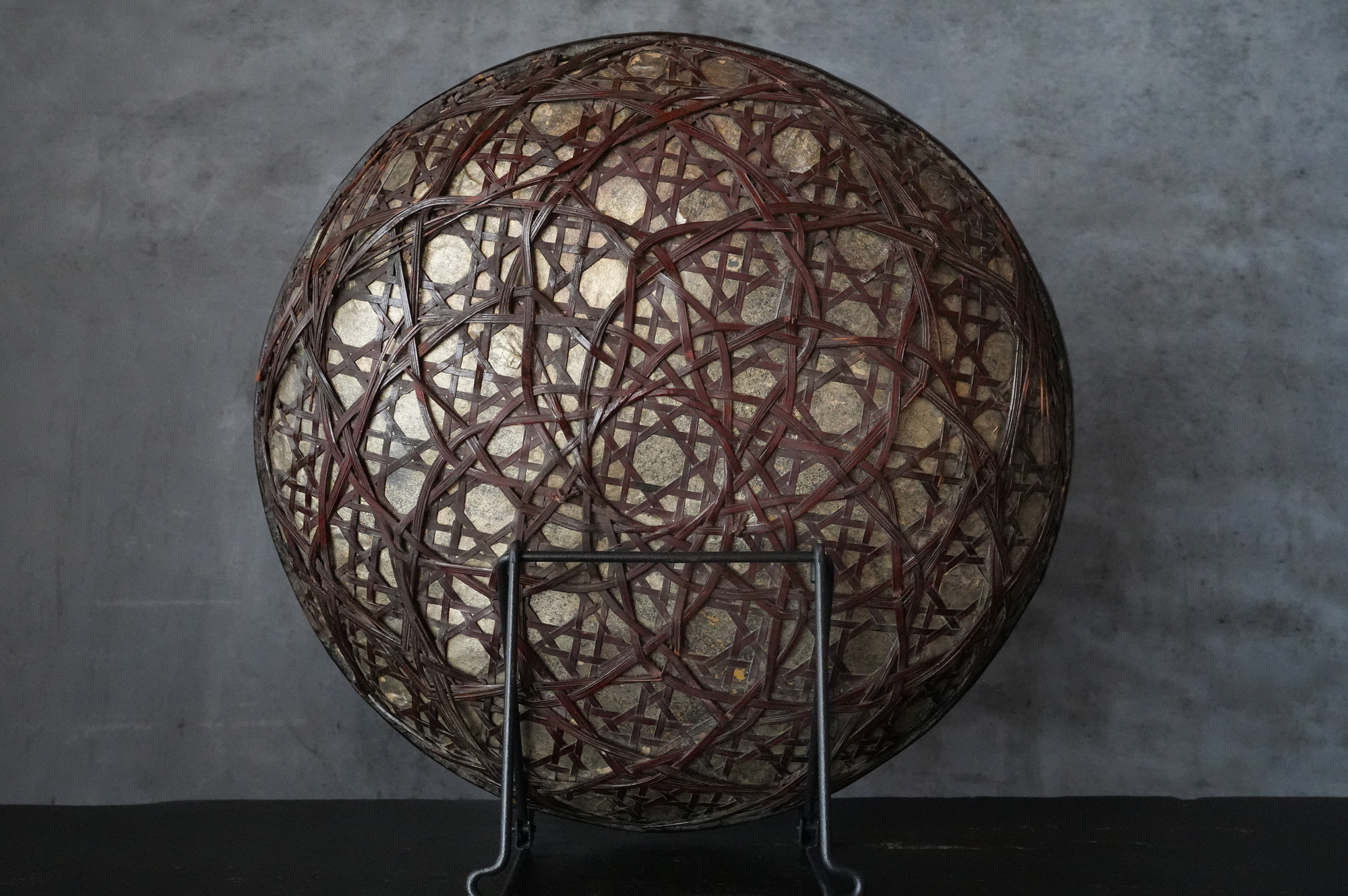 法会の折、僧侶が花びらを蒔く際に用いられる華籠の一品です。素材には竹と金属の二種が見られますが、本作のような竹製のものに古いものが多いです。
