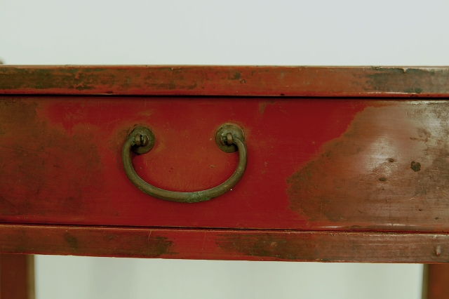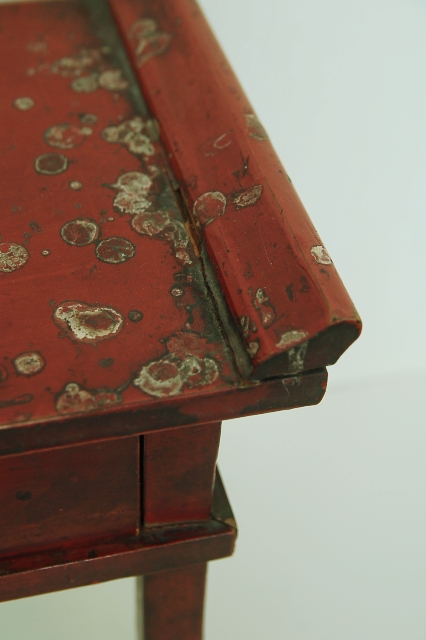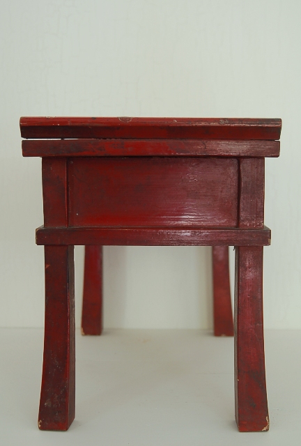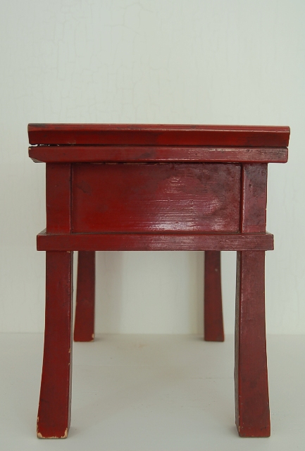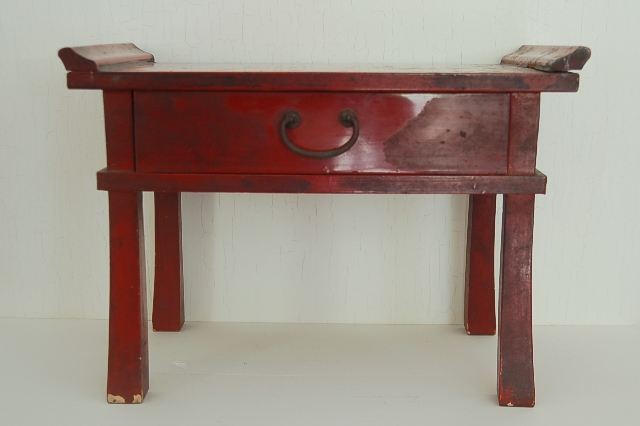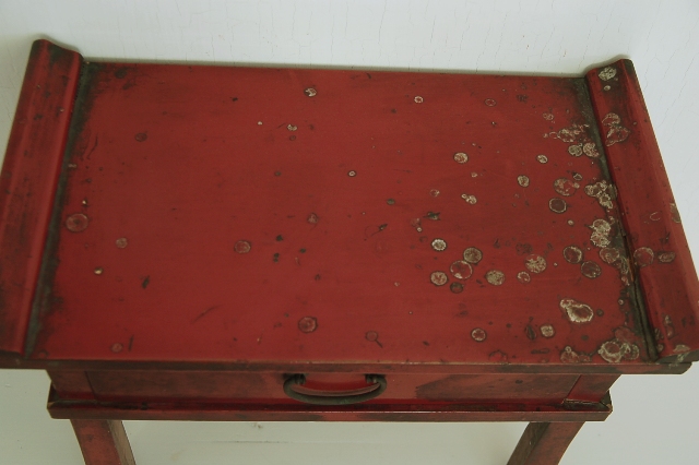 落ち着いたウブな味わいの朱塗りの経机。小ぶりなサイズで物を飾るのに最適。