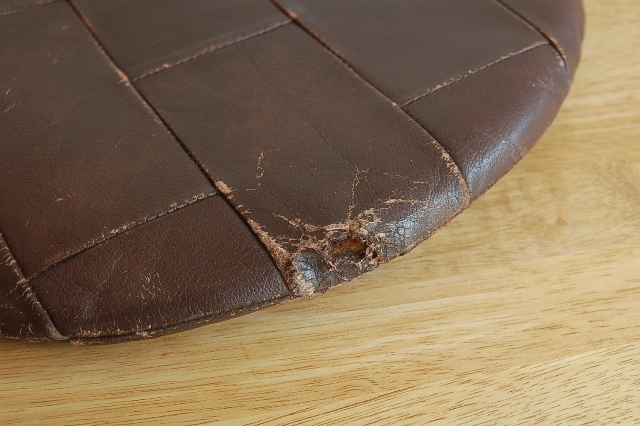古手のものではないですが、使い込まれた風合いで布製のカバーにはない独特の存在感はいまのモダンな和室にもしっくりきますし、フローリングにも違和感はないでしょう。中身は綿ではなくクッション材でまだ使える状態です。画像でもご確認できますように、各々状態が異なります。擦れ、破れ、穴、革のしわなどございます。また掃除はある程度しておりますが、中身の部分は充分には行っておりませんのでご理解下さい。新品のような状態の良いものではございませんので、この革の使い込まれた風合いにご理解できる方のご注文お願い致します。