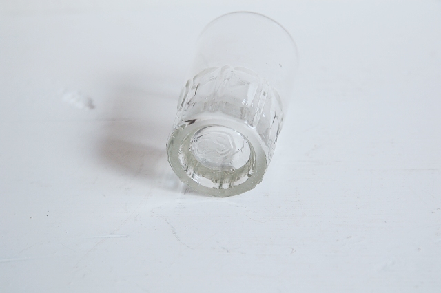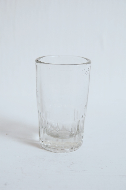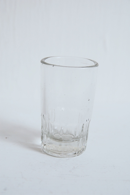 歪んだ表情で味のある小さなグラス。上部に「5cl」と刻印があるので計量用のカップのようです。刻印の文字の感じからすると日本製ではなく、cl(センチリットル)表記なのでヨーロッパのもので間違いないと思います。 小さな気泡、歪みもよく、サイズも酒器好きにはベストです。時代的には1940〜50年台、昭和の初めの頃のものではないでしょうか。