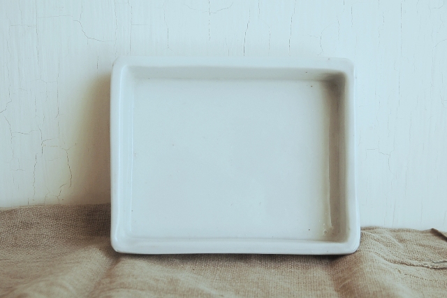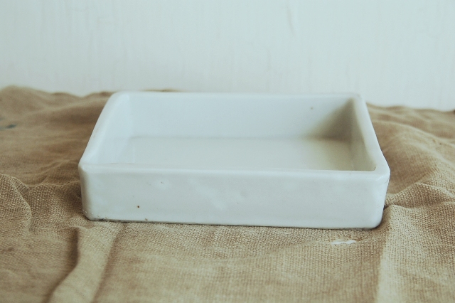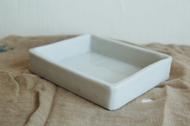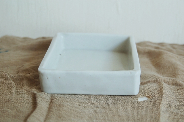 写真の現像液を入れて使用したパット(瀬戸白磁)。 僕がこの商売を始めた頃からの人気商品。しかも小ぶりの使い易いサイズ。大正から昭和初期にかけてのものです。モダンでシンプルでありながらも表情が柔らかく食器としてはもちろん、鍵などちょっとしたものを置くのも良いです。水を張って本来の水盤として花を生けても良いでしょう。ここ最近めっきり見かけなくなりましたが、大きな欠点の無い美品。