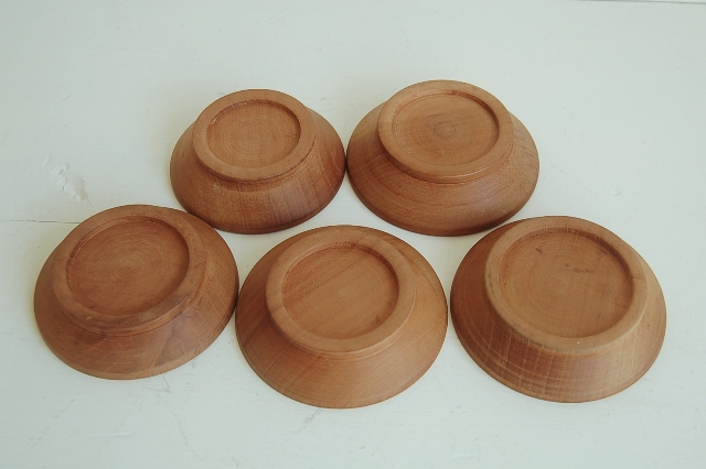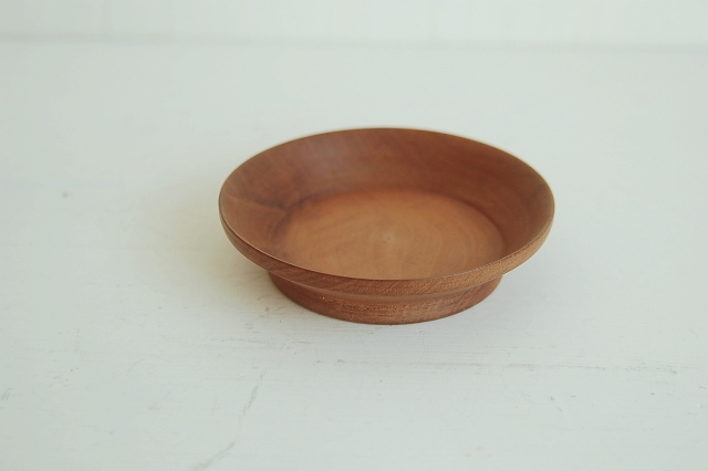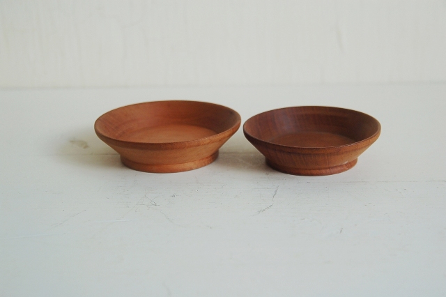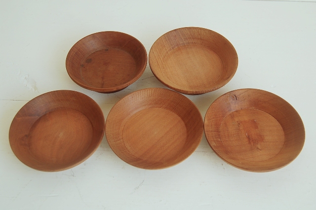 素朴な茶托5枚組。本来はサイズから考えるとお煎茶用のもの。組のものですが、一枚一枚大きさが異なります。表面の仕上げも素地を生かしたもので、漆ではなく、植物性の油(胡桃など)で仕上げたものです。木目もうるさくなく、余計な装飾の無いデザインが一緒に使うものを選びません。茶托としてもいいですし、乾き物などを盛る小皿としても良いでしょう。こういった雰囲気のも、ありそうでなかなか見つかりません。長くご使用いただける品です。