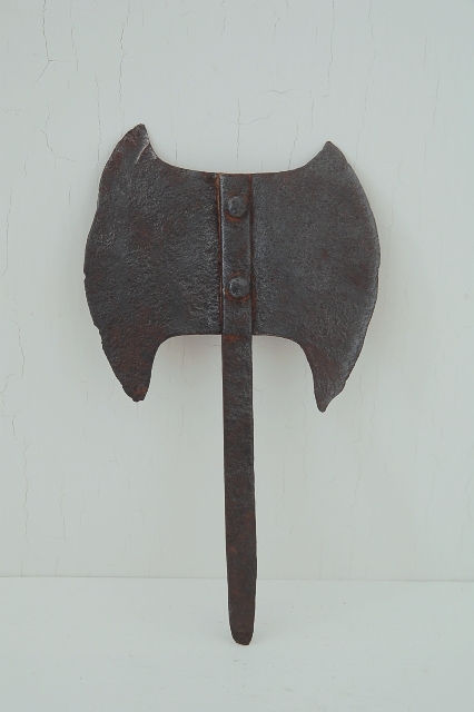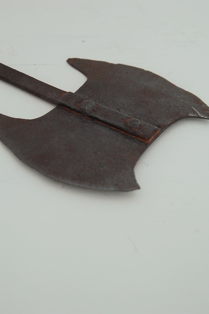 鉄味の良い小さな斧。薪を更に小さくするためのものです。本来は柄が付いておりますが、無い方がオブジェのようなおもしろい雰囲気。まるで海外のもののような印象です。立てて飾ると古いアフリカの貨幣のような違った雰囲気になります。