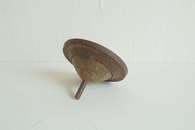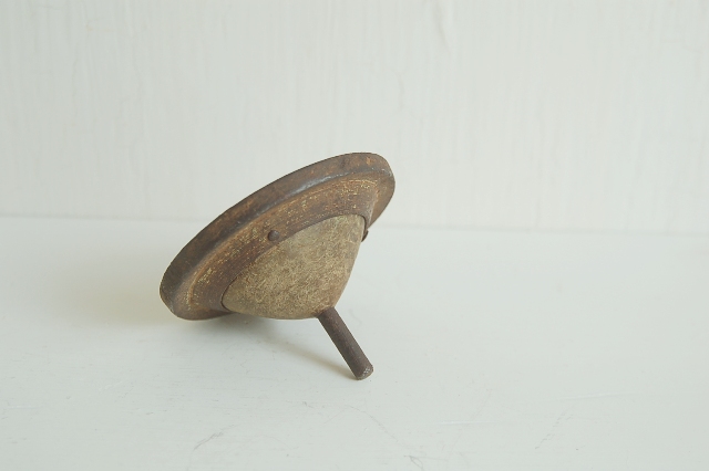 懐かしさを感じる独楽。鉄と木の素朴なつくりは今の玩具にはない雰囲気を感じます。独楽をお互いにぶつけ合い戦わせて遊んだもの。今、この手のものを作ったら危ないと批判されそうなものです・・・。遊びもちょっと危険をかんじるからこそ面白いのではと思います。