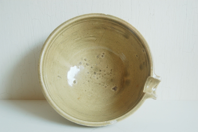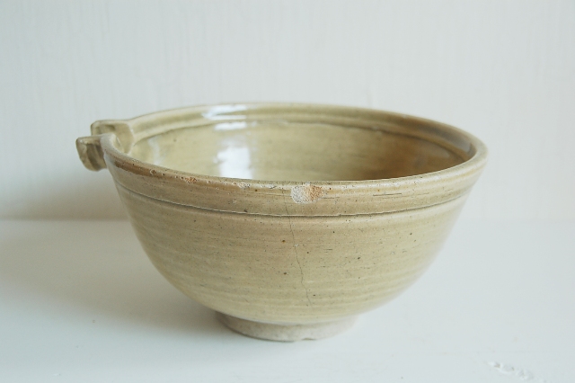 定番な形で日々の食卓で活躍する瀬戸の方口。シンプルで素朴な表情が魅力です。普段の生活で使われてきたものですので、縁周りに若干のソゲ、カケ、ニュウなどございますが、それも古いものの持つ表情。気にせずガンガン使っていただける品。釉薬も和洋問わずどんなお料理、食器とも相性が良いです。