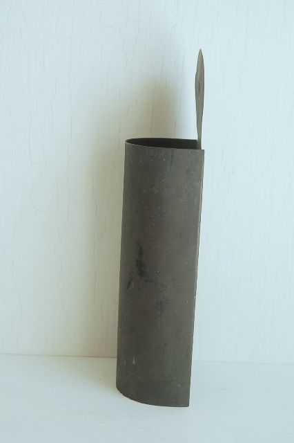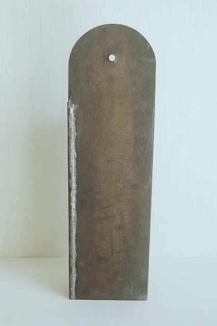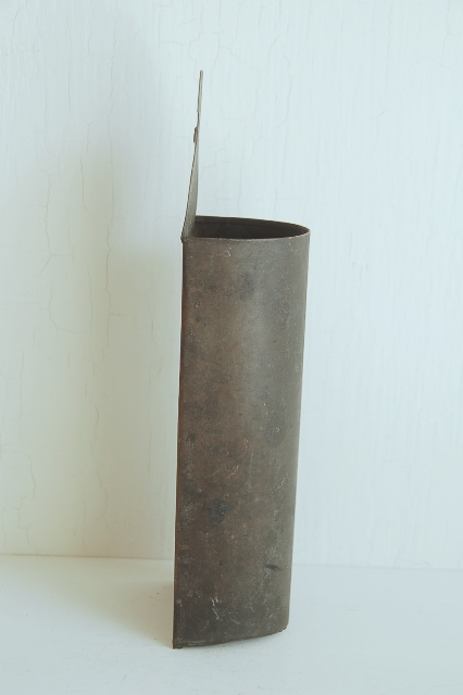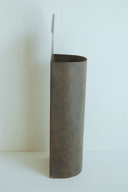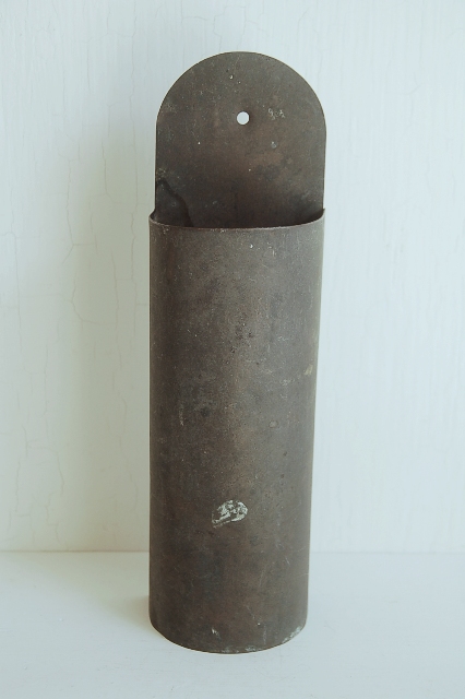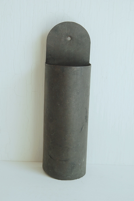 真鍮の薄い板で作られた壁掛け用の容器。時代を経た、真鍮独特の味わいがあります。洗浄した際、水漏れはなかったですが短い時間だったので花器として御使用の際はオトシをお使い下さい。ロウツケですので長時間でお使いの際は漏れる可能性が高いです。花器としてお使いであれば、茶花などの山野草から華やかなフラワーアレンジメントまで幅広くお使いいただける懐の深い品ではないでしょうか。銅器などとは違って鋳造したものではないので、薄めの板は軽やかな印象でかしこまった感じではありません。作りもラフな感じです。社寺などで使われていたもののようですが、何の道具かはわかりません。