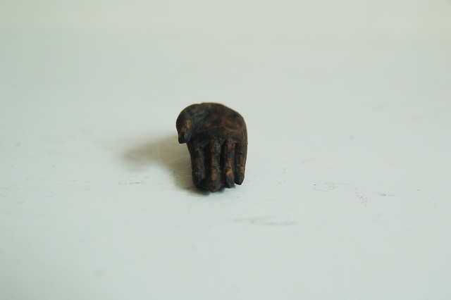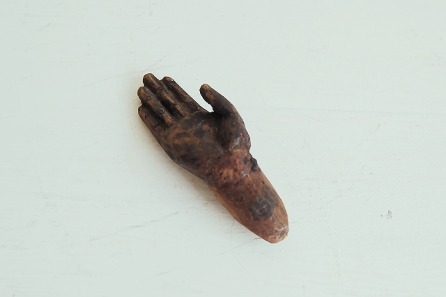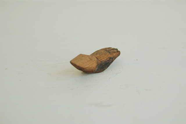 小さな右手です。それなりには彫られていますが、民衆仏の残欠でしょう。材は檜、手のサイズからすると仏像の大きさは一尺程度のものだったとおもいます。小さいながらも、一気に彫り上げたようなスピード感が存在感をより一層高めているようです。