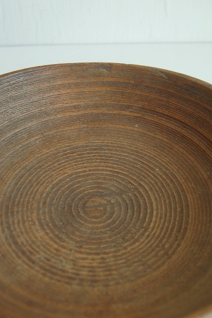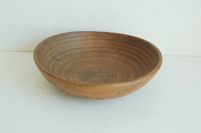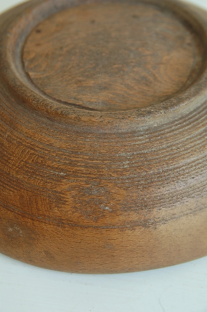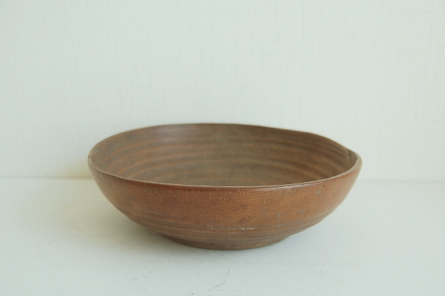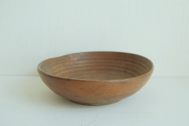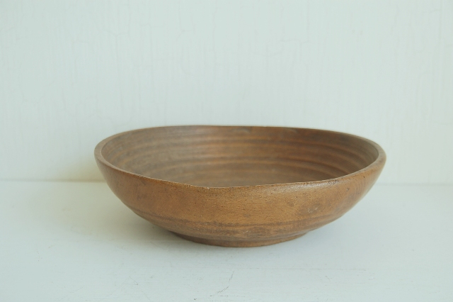 轆轤で形成された素朴な鉢。地から強い印象ですが、細かな独楽目もあり雑な印象はありません。手早く削ったことは伺えますがなかなかの出来栄え。楕円形になっていますが、この形を轆轤で作るのはそれなりの技術が必要だと思います。材は堅木おそらく楢ではないかと思います。程好い艶もあり、軽やかな印象。日本のものですが李朝の木工品を思い出すような雰囲気が感じられます。そのまま飾るも良し、果物を飾るも良し、玄関先において小物入れなど用途は色々。和洋を問わずどんなインテリアにもあうお奨めの品。