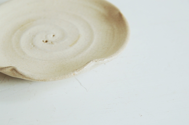 地元奈良の赤膚焼の小皿。茶席などで使われた銘々皿の一枚だと思われます。轆轤のあとが素朴な印象ながらも上品で作行の良さを感じます。さすが遠州七窯のひとつです。銘はなし。程好く使い込まれた風合いも良く、晩酌の肴を盛ったら格別です。食卓にも重宝することでしょう。