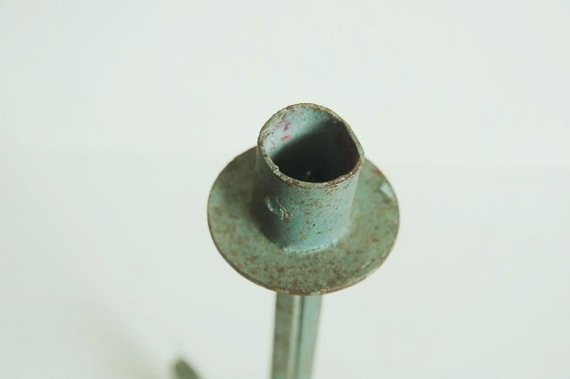 画像でもご判断できますように表面の塗料の剥がれ、さび、細かな傷などの使用感がございます、また製作過程で既にあったものですが蝋燭を立てる部分と受ける皿の接合部に少し隙間(穴)がりますが御使用には問題ないと判断しております。しっかりとはしており安心してお使いいただけますが、おおらかな作りであること、使い込まれたオリジナルの味わいであることを充分ご理解のうえ御注文下さい。