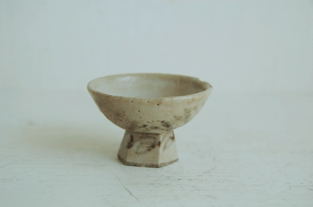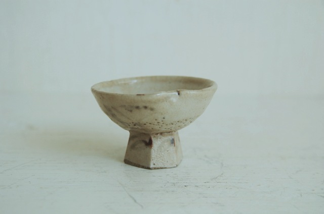 晩酌に最適な絵志野の盃。六角形の高台が個性的。小さいながらもたっぷりとした釉薬の絵志野らしさを感じることができます。図柄も目立過ぎず(何の絵かは不明)無地派でも気にならない程度です。高台に極小さなカケがありますが、それ以外に大きな欠点もなく良い状態です。古い陶磁器ですので時代相応の経年による変化がございます。充分画像でご確認の上古陶磁器とご理解のうえご注文下さい。