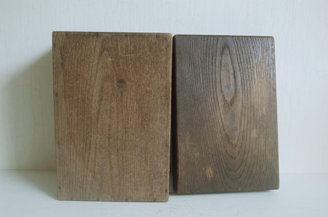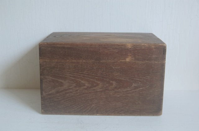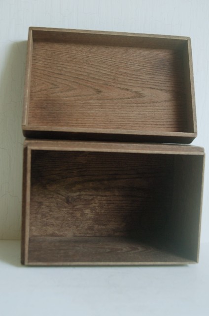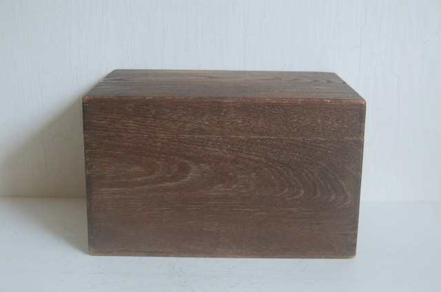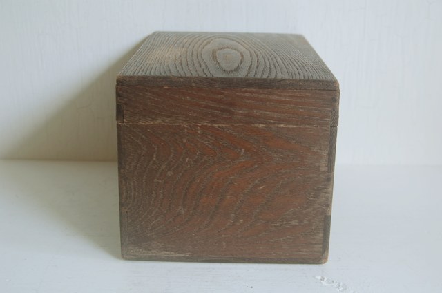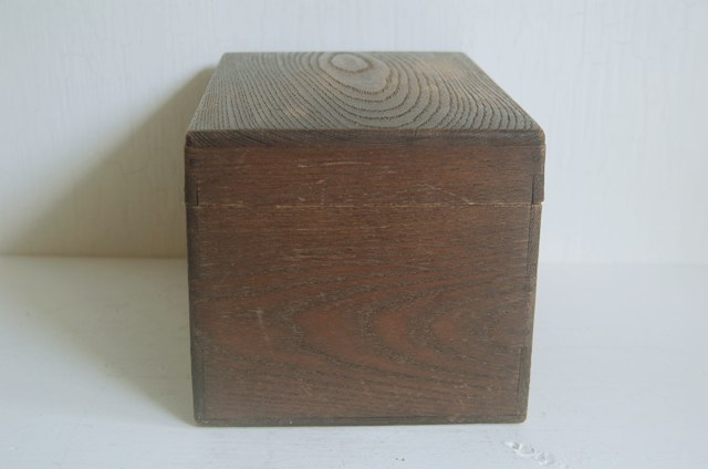 使い込まれた茶箱。茶碗や茶筅、茶筒、茶巾筒などを入れ持ち運びする為の箱。一見すると桑のような木質ですが栗か欅だと思います。経年の為、接合部に隙間は多少ございますが大きな欠点はございません。蓋の上部は微妙にRになっており仕事ぶりから、茶道具ですので指物職人がつくったもの。自分の好きなものをひとつずつ選んで入れてもよし、好きなものを入れても、養生箱としても良いでしょう。箱そのもの自体ちゃんと作られているものですから、へんな甘さがなく非常に好感が持てます。古いもので実際に使用されてきたものです。磨きなどの艶出しなどはしていないそのままの状態ですので充分ご理解のうえ御注文下さい。