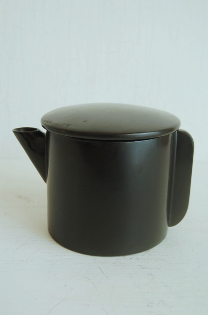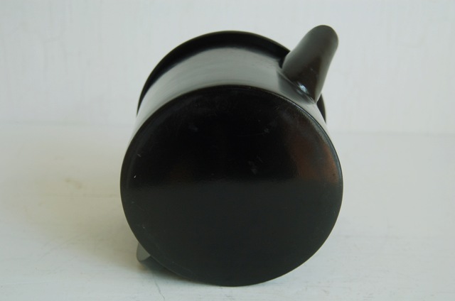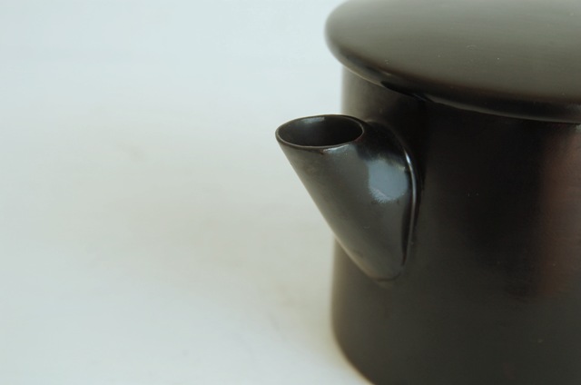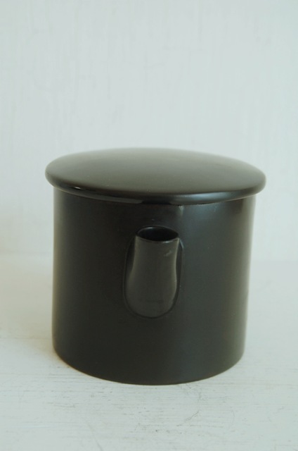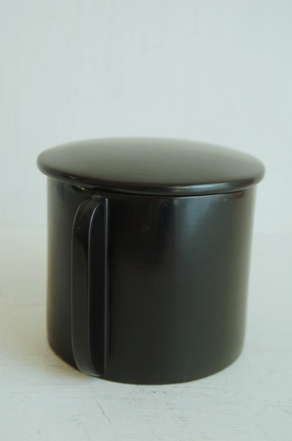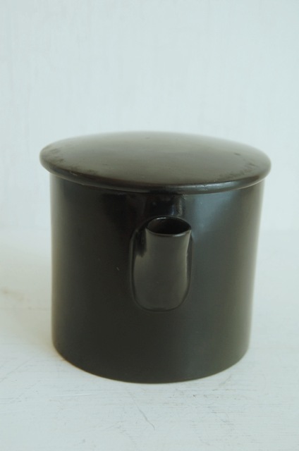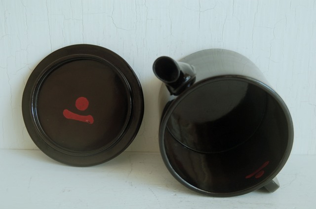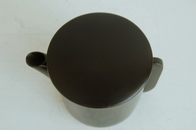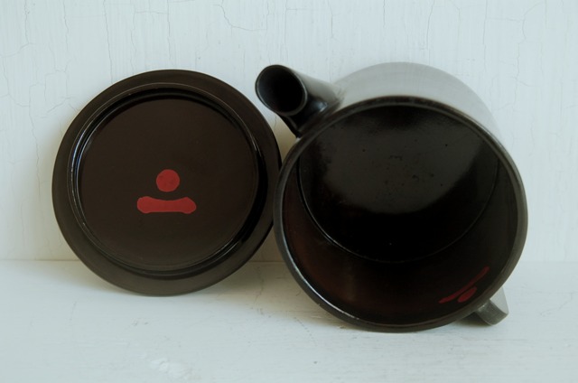 漆黒の湯桶。持ち手の部分が古いものとは感じさせずモダンすぎます。サイズも一般的なものに比べて小さめで今の生活、食卓にも違和感なくお使いいただけます。湯桶といえば蕎麦湯を思い出しますが、出し汁を入れたり、お酒や飲み物を入れても良いでしょう。使い方は工夫次第で広がります。使用感はございますが、塗りは丁寧で縁廻りと底には布が巻かれており産地は輪島辺りではないかと思います。内側、蓋の裏に朱で屋号が記されています。また内部は熱いお湯で焼け、蓋に若干の歪みはあるものの気にはならない程度で、剥がれや破損はなく御使用には問題ございません。