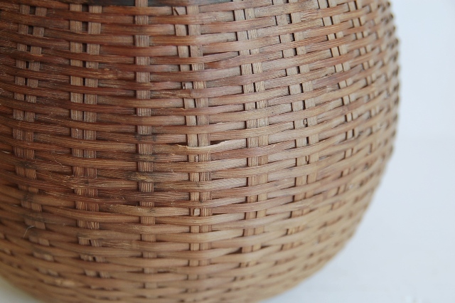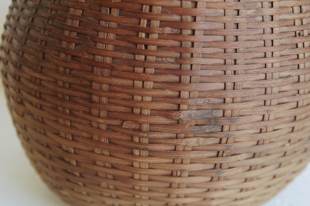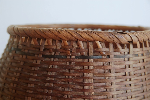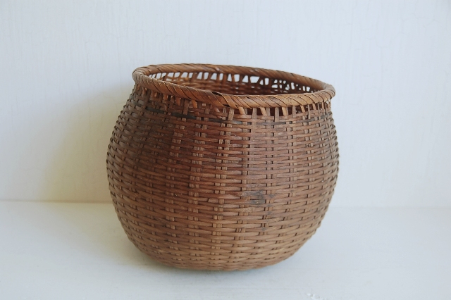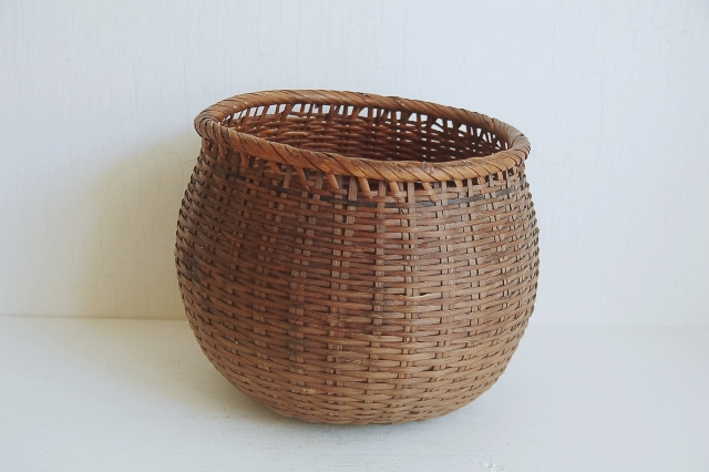 丸みのある形が心地よい竹製の篭。日常で何気なく使われていたものですが、飴色に変化した色が新しいものにはない心落ち着く表情です。細めで軽ろやかな感じですので空間にすんなり取り入れられます。無理のない自然な形って感じで好印象。どんなインテリアにも合いそうです。キッチンでじゃがいもや玉ねぎなどを入れても良さそうですね。