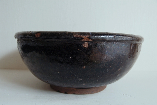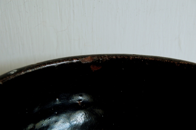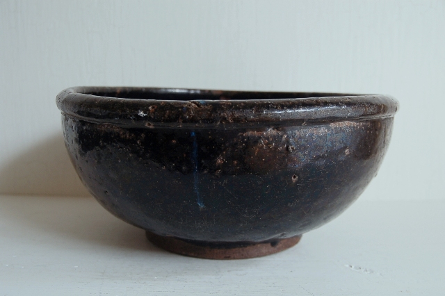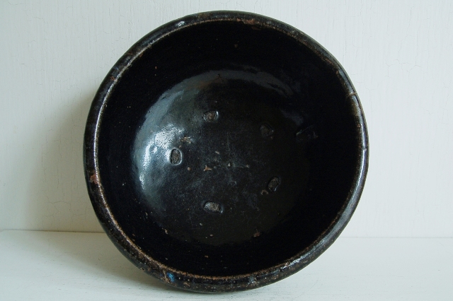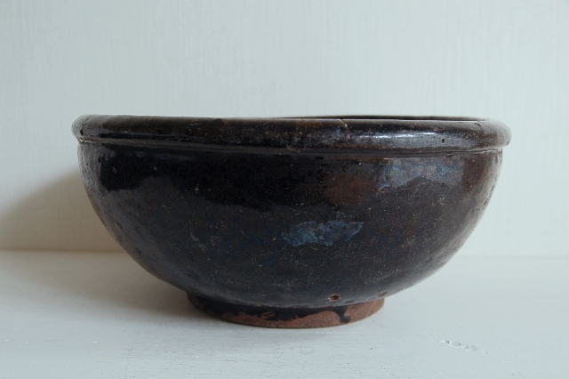 大ぶりの堤焼のこね鉢。艶やかな釉薬に肉厚でどっしりとした安定感。いわゆる堤特有の海鼠釉のたれは見られませんが垂れのない表情の方が現代の空間には良いと思います。これぞ東北の民藝と思わせる野趣溢れる力強い風格が魅力。画像よりも実物は迫力も大きさもあるかと思います。釉ハゲ、窯傷やヒッツキ使用による細かな傷、小さなソゲなどございますが大きなダメージはございません。この手のものとしては状態は良好です。