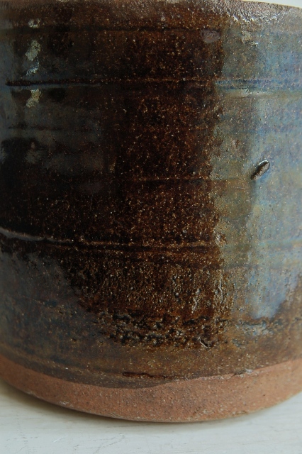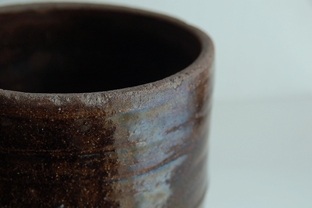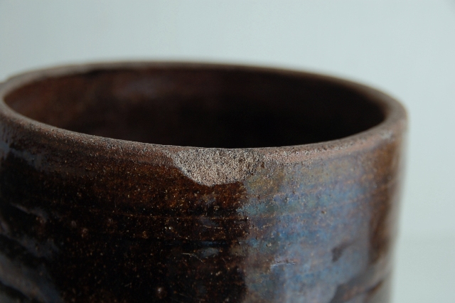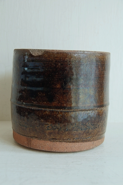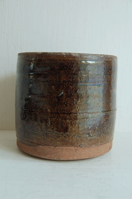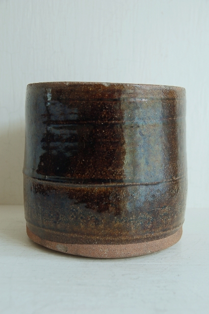 本郷焼の筒型のシンプルな鉢。鰊の山椒漬けをはじめ色々使われ方をしていたもの。無駄の一切ないシンプルな道具。肉厚で堅牢なつくりは日々の生活で耐えうるように作られていたのでしょう。余計な事がされていない潔さが好感が持てます。