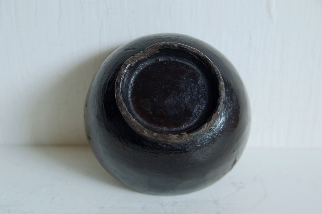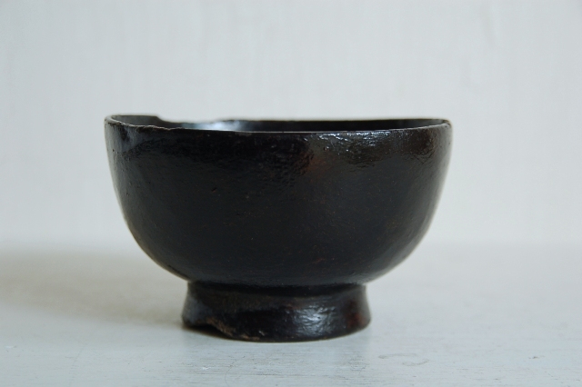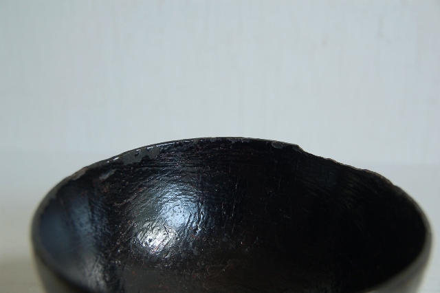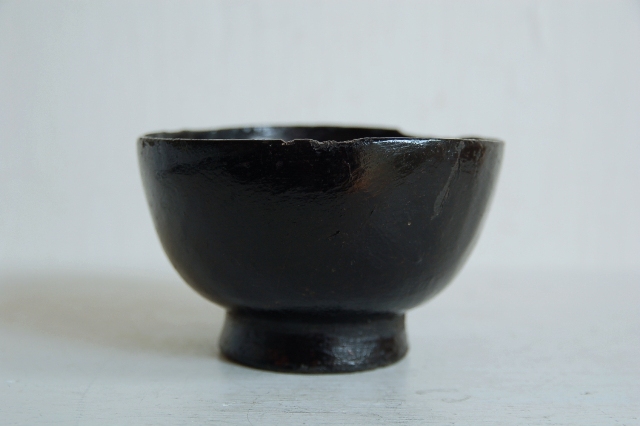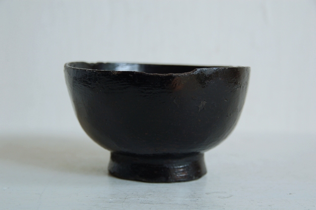 一見「合漉碗?」と思ってしまいますが能登系の塗物ではありません。塗りは堅牢とは言い難いですし、布も被せていません。塗り放しの東北の椀。大きさ、使い込まれた表情で味のある造形は黒漆の素朴な碗でありながら独特の魅力を放っております。庶民派ですがここまでシンプル且つ魅力的なものってそう出会えるものではありません。