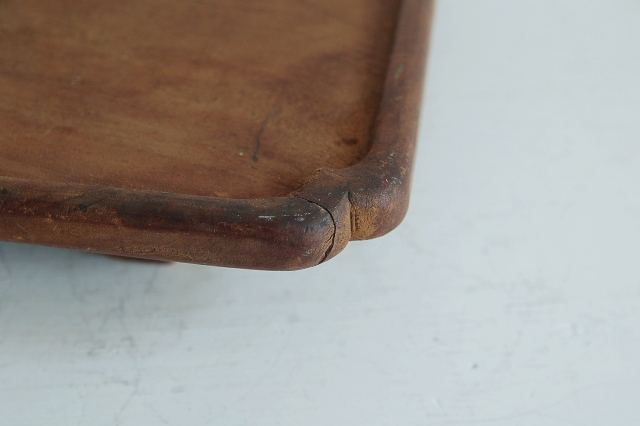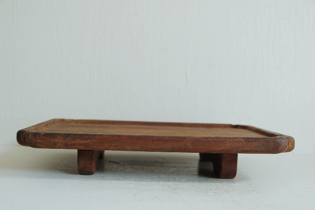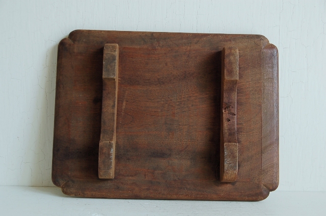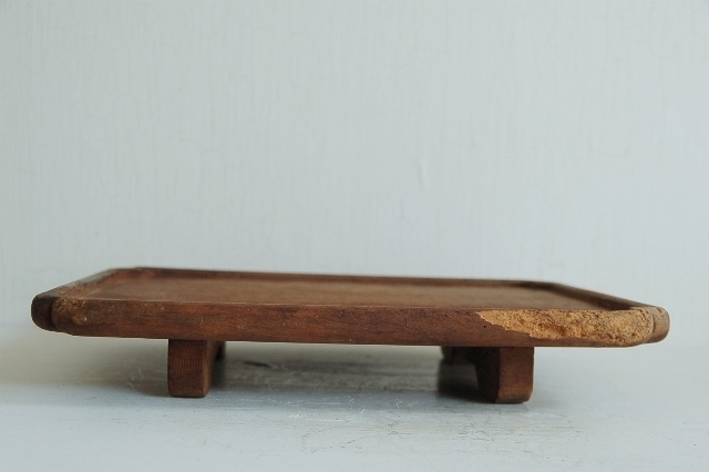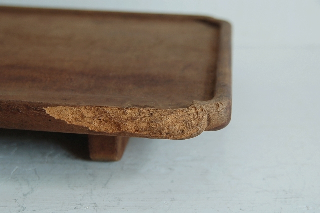 欅製の手力盆。地元、奈良らしい一品。この大きさならば盆としても使えるサイズ。晩酌用としても良いでしょうし、飾り台としても最適です。縁に虫食いの跡、一箇所ひび割れもございますが実用で使える範囲ないと判断しております。表面に塗りの施されていない木地仕上げですのでそういったコンディションも味わいのひとつかと感じます。
